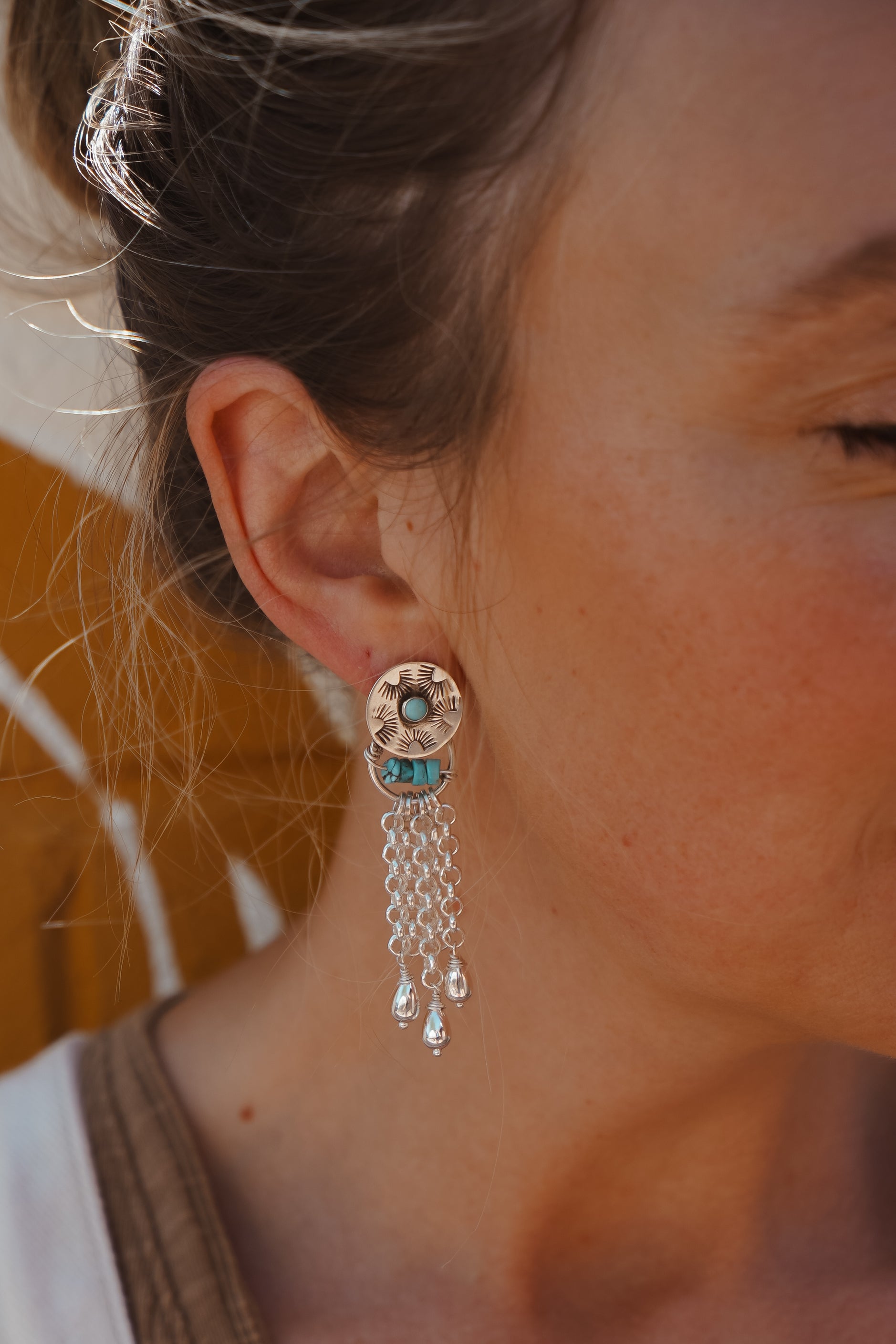 Need a new favorite pair of summer earrings?! We got you covered! We're loving these sterling silver chain tassels, the beads, the hand-stamped discs, and lovely Turquoise stones. Can't wait to see who ends up with these one-of-a-kind beauties!