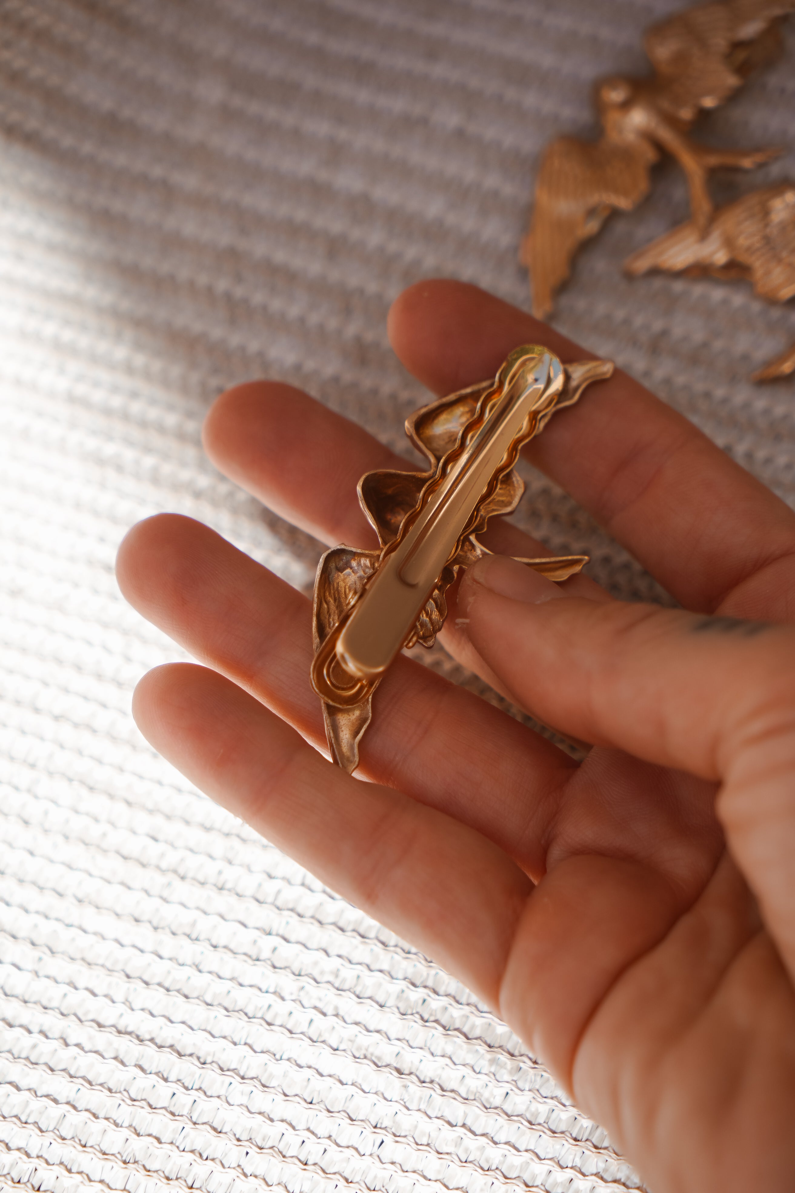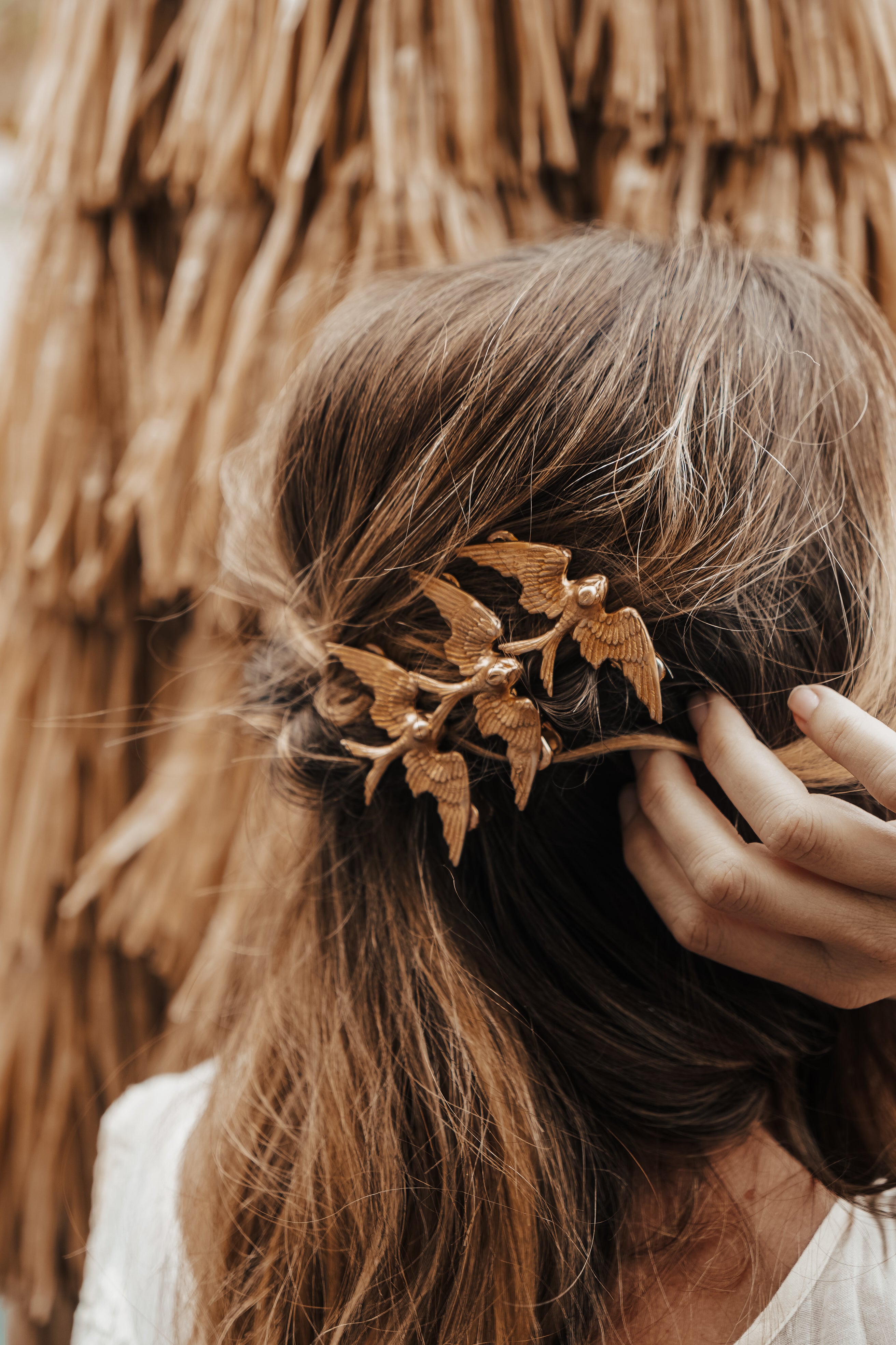 Vintage-inspired bronze bird clips that feal like treasures unearthed from a desert thrift market. Perfect for pinning back wind-blown waves or stacking multiples for a dramatic, free-spirited look.