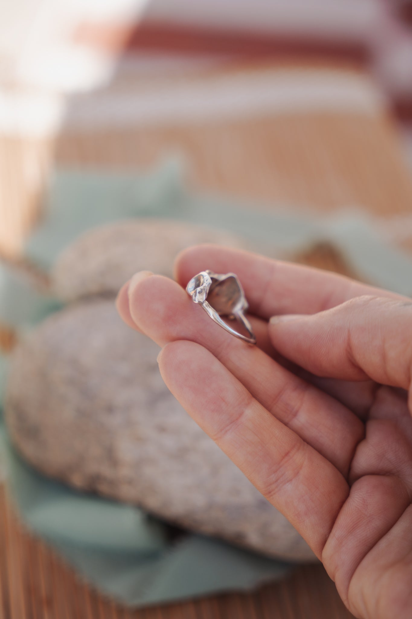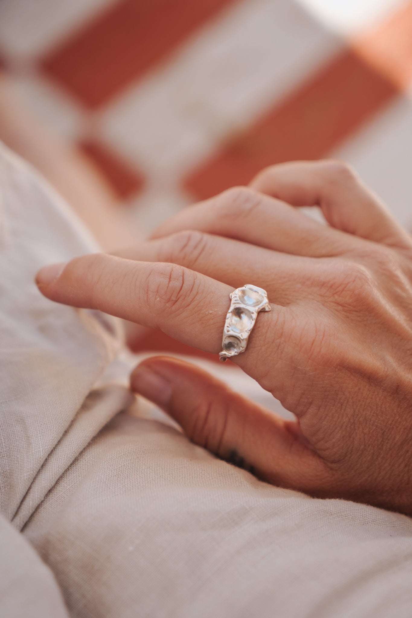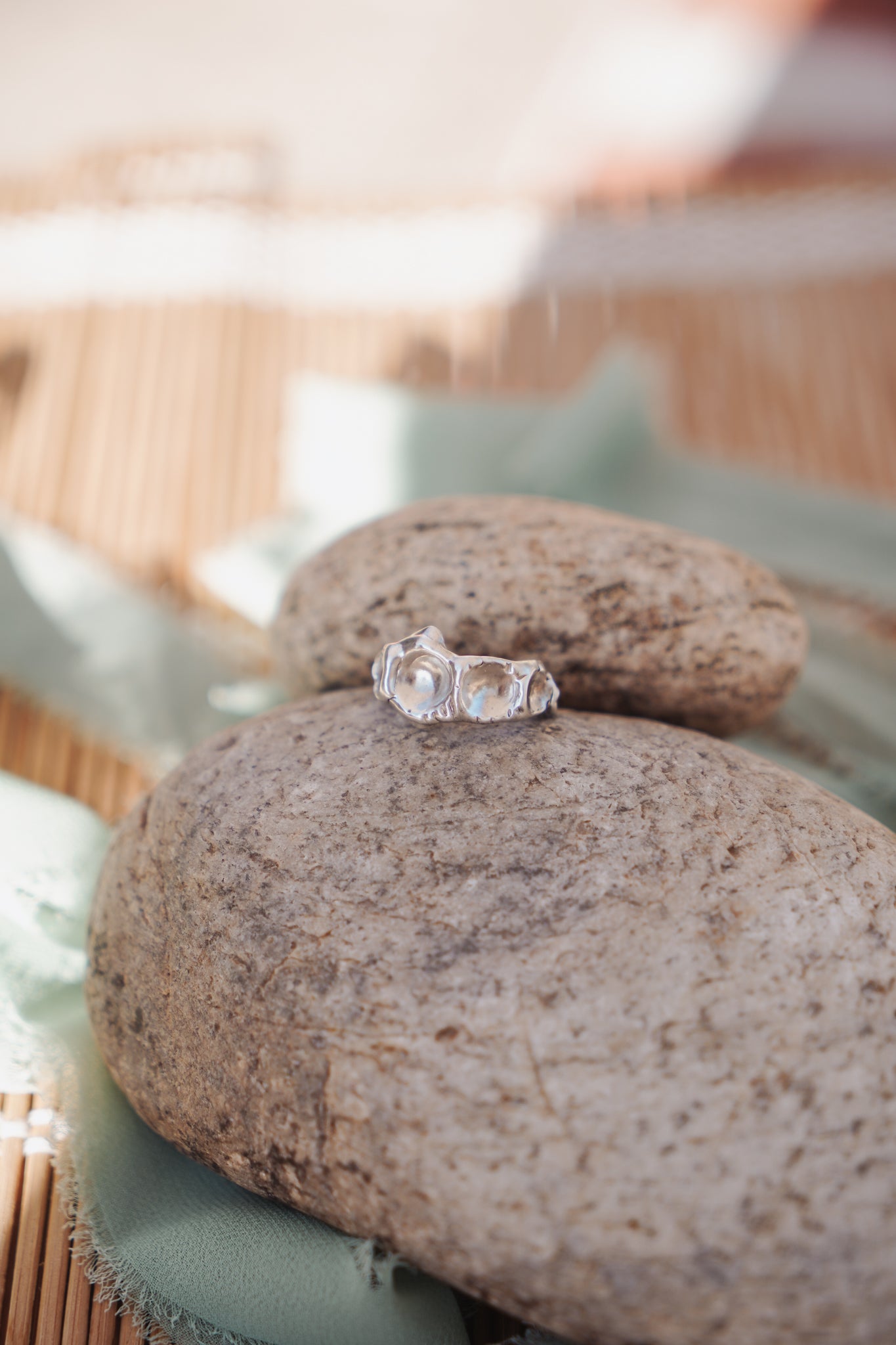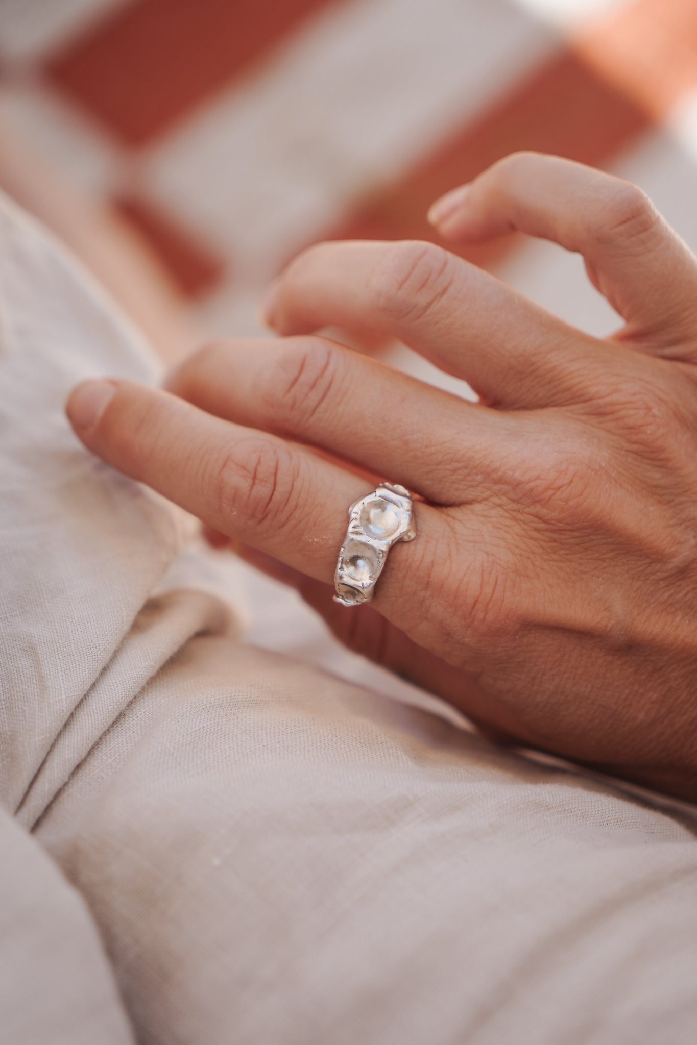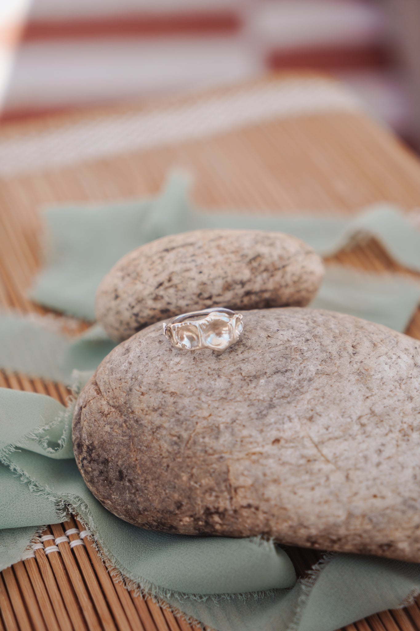 These rings came from a sense of play, which is our favorite way to make anything. We were experimenting with ways of melting wax and hand-carving to create texture. Once I cast these into silver, I realized how much they looked like lichen growing on a log or rock. Nature has always been one of our biggest inspirations and we're loving this new ring style.