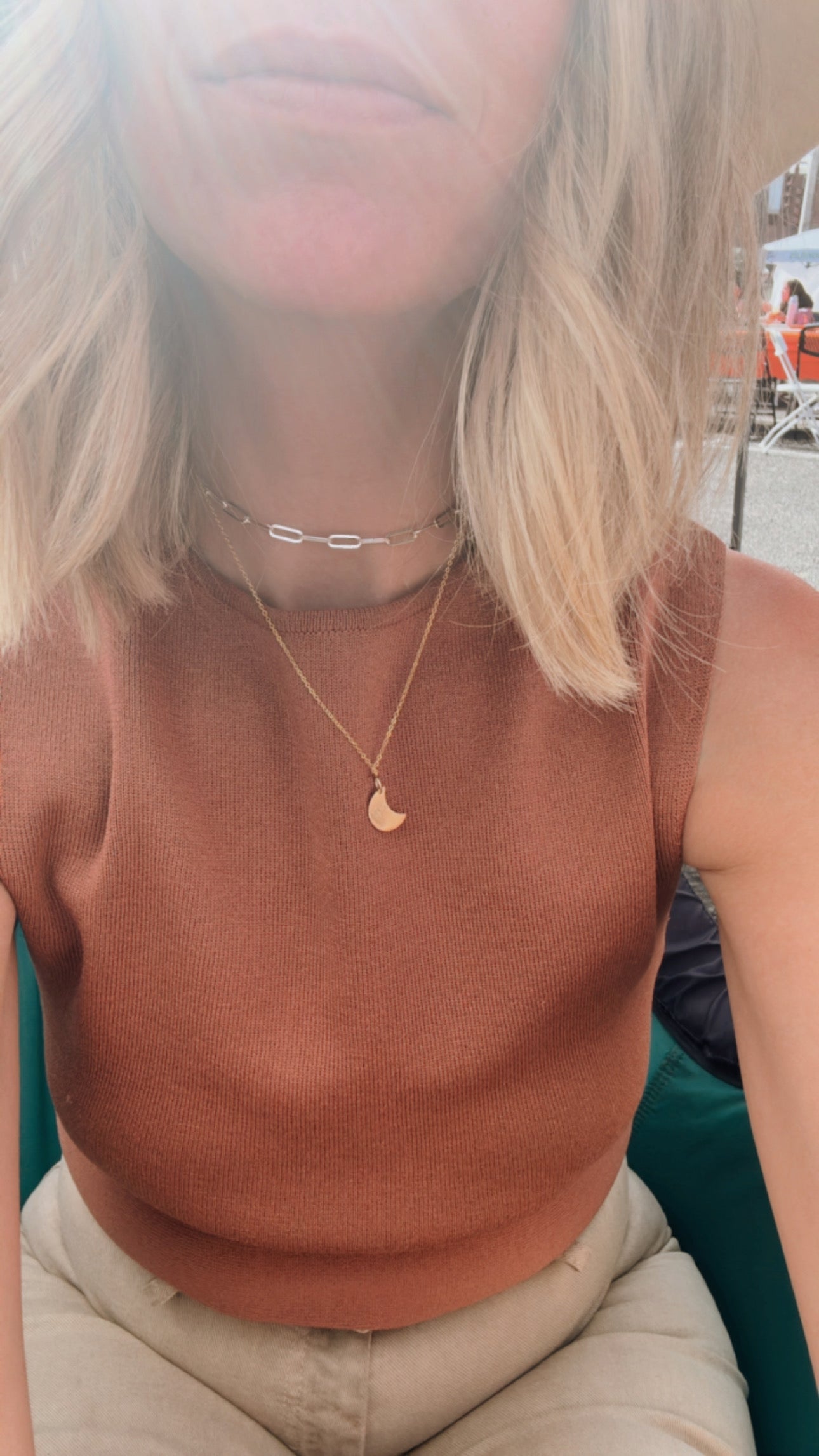 Handcrafted 14k gold fill crescent moon on an 18” 14k gold filled chain