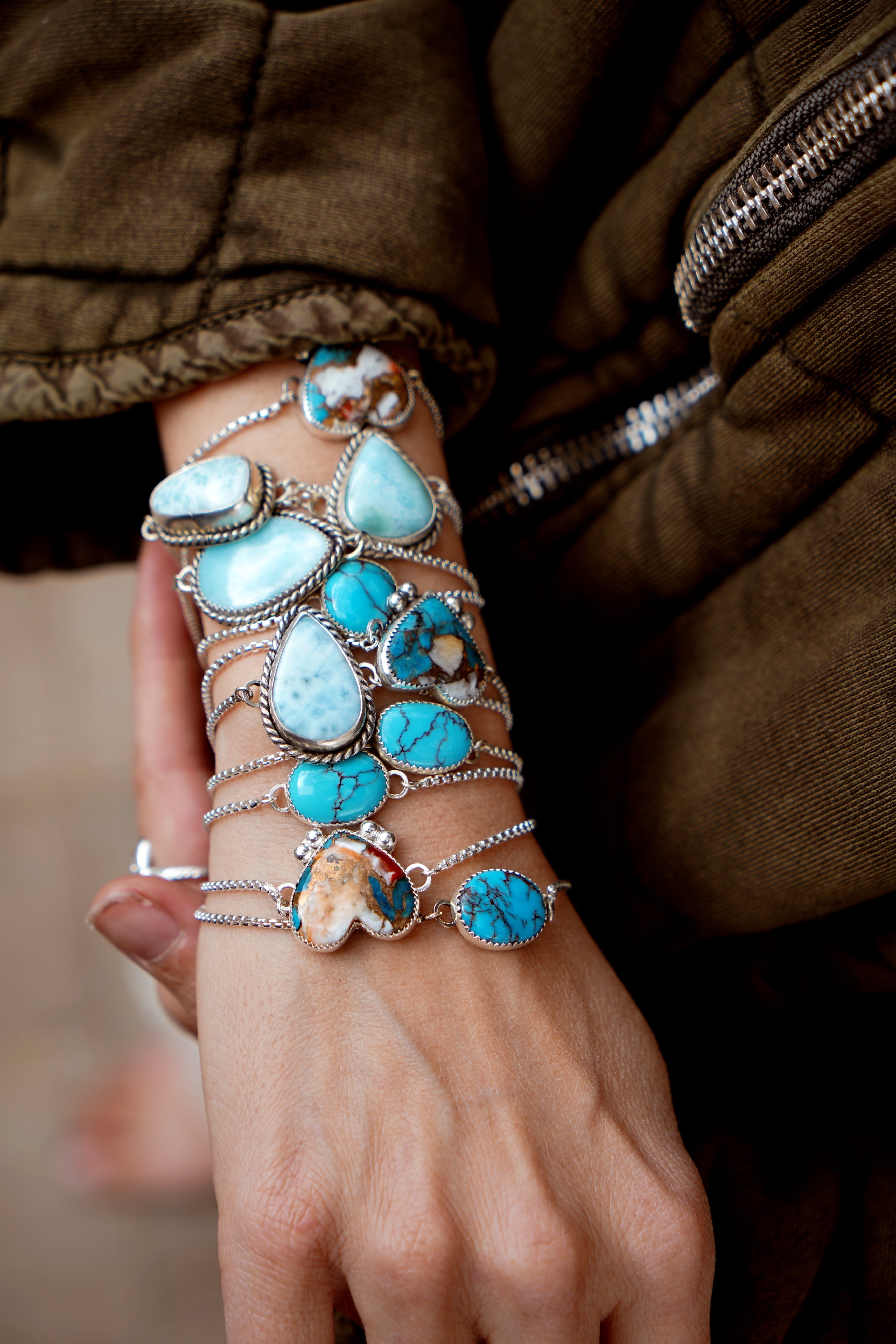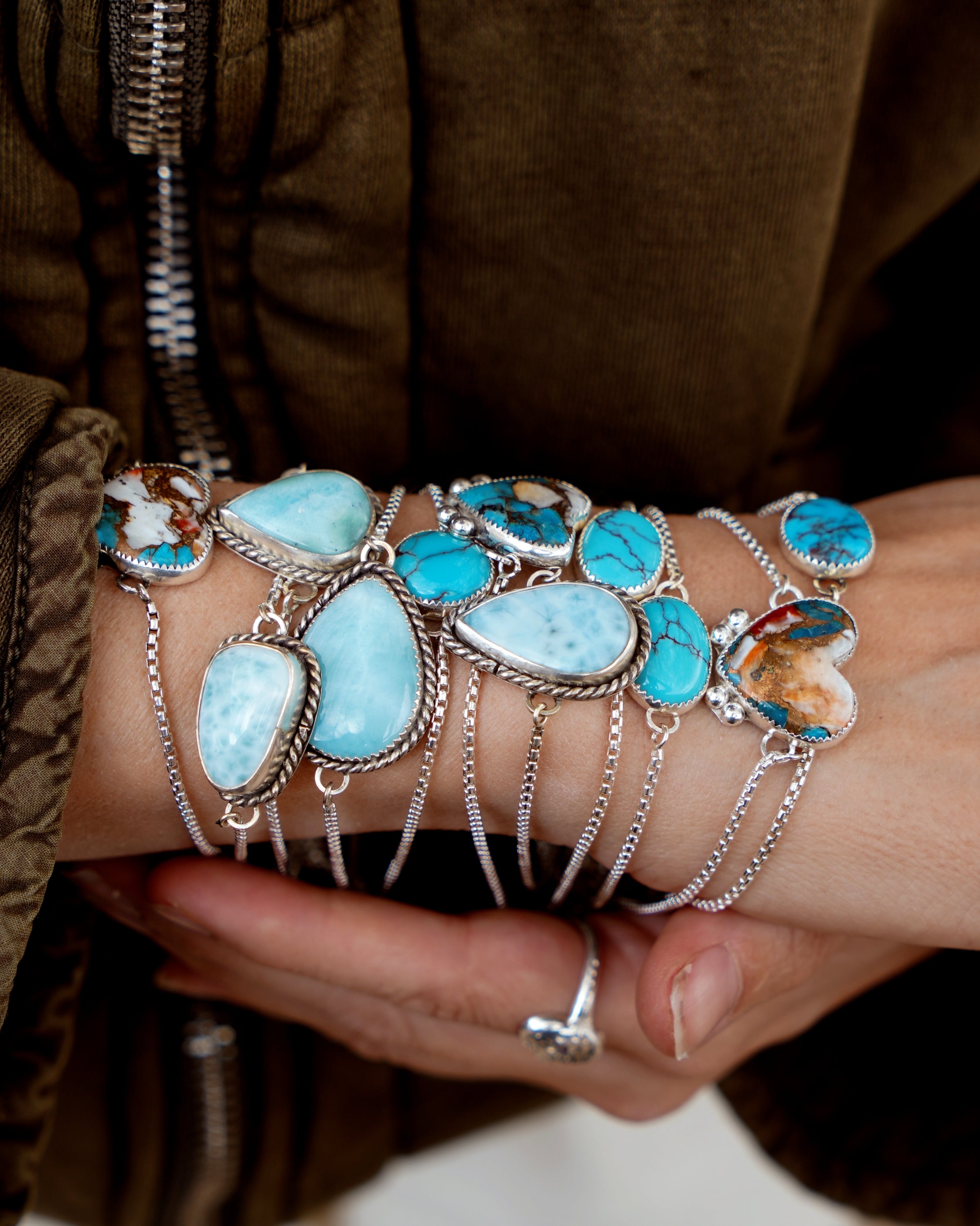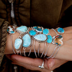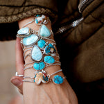 The Out West bracelets are back and we're drooling over this stone! These babes are super lightweight, easy to adjust, and made with high-quality turquoise.