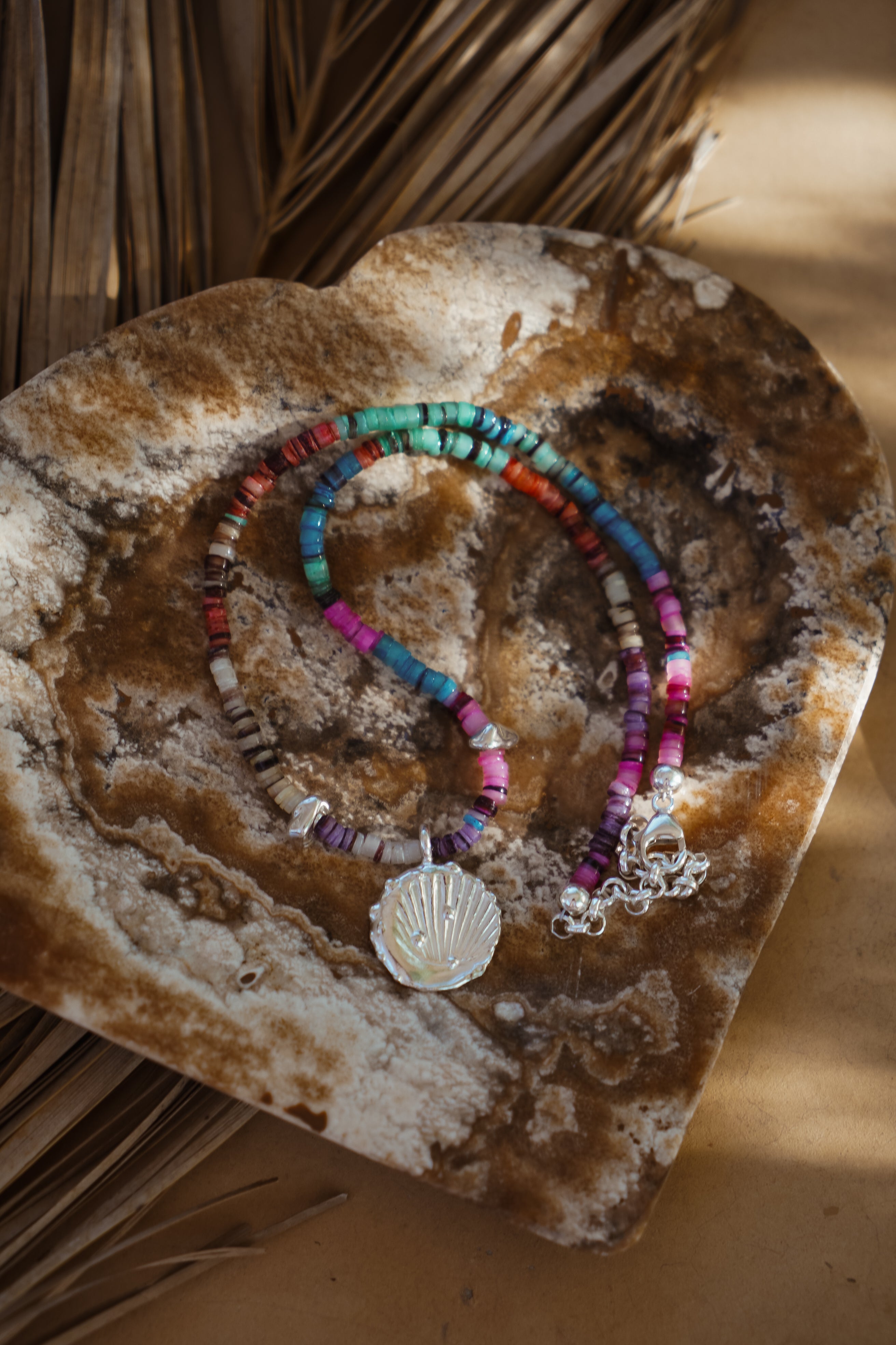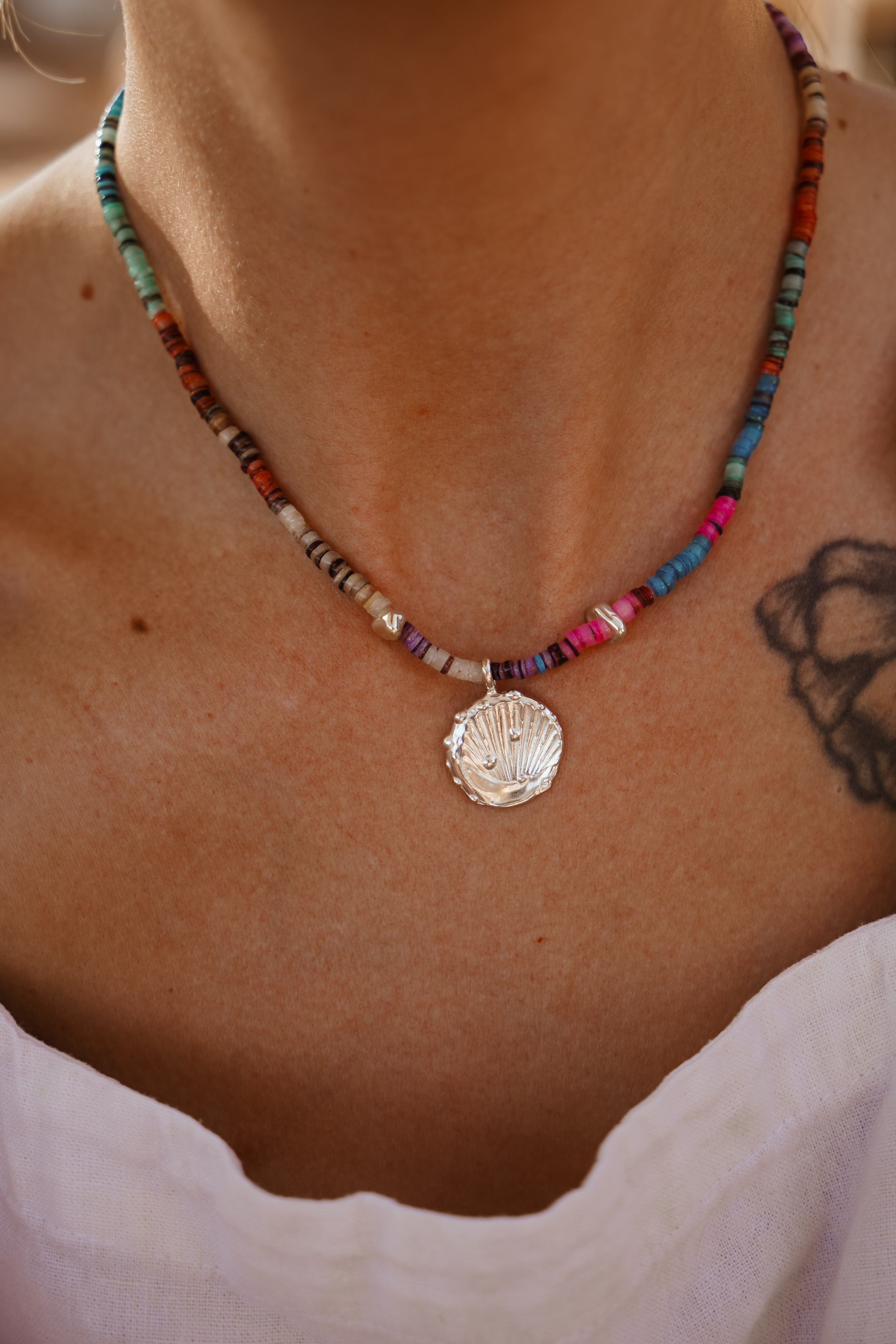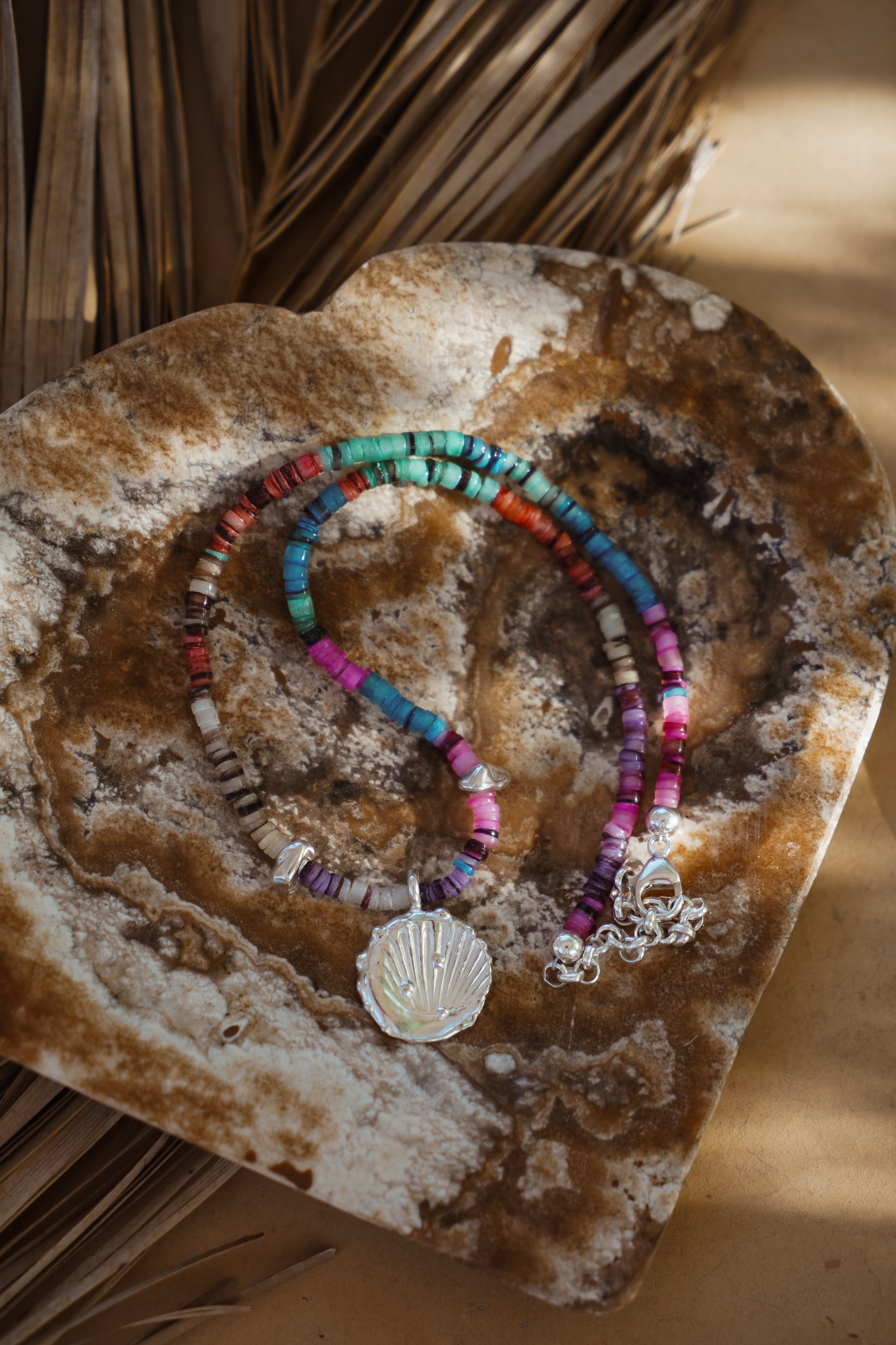 Rainbow Shell Beads with Sterling Silver Shell Charm