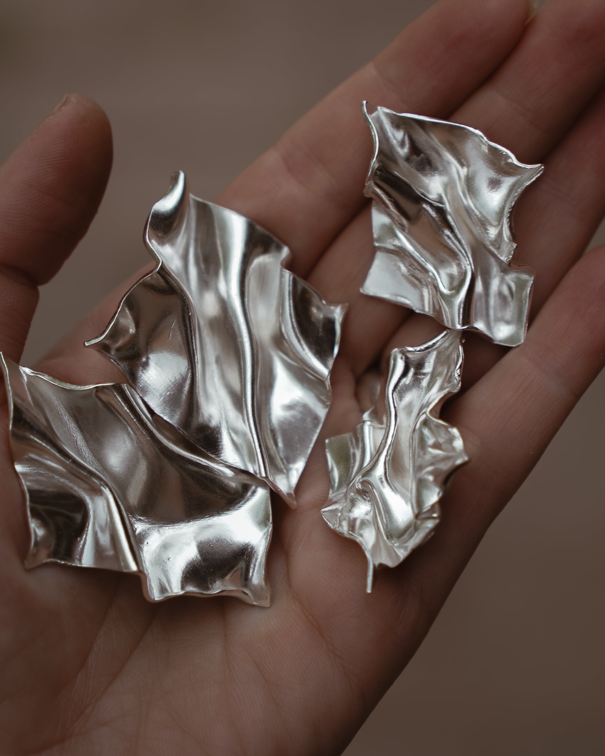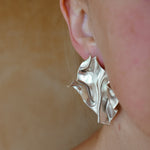 I sat down on the couch with no plan, some wax materials, and a quiet house. After some time of pure creative PLAY, these lovelies came out. Then they were cast in sterling silver and polished to a lovely shine and it's so fun that now they'll go bring joy and beauty to one of you. We love the shape, texture, and light/shadow created by these. Can't wait to see who gets the first pair.
