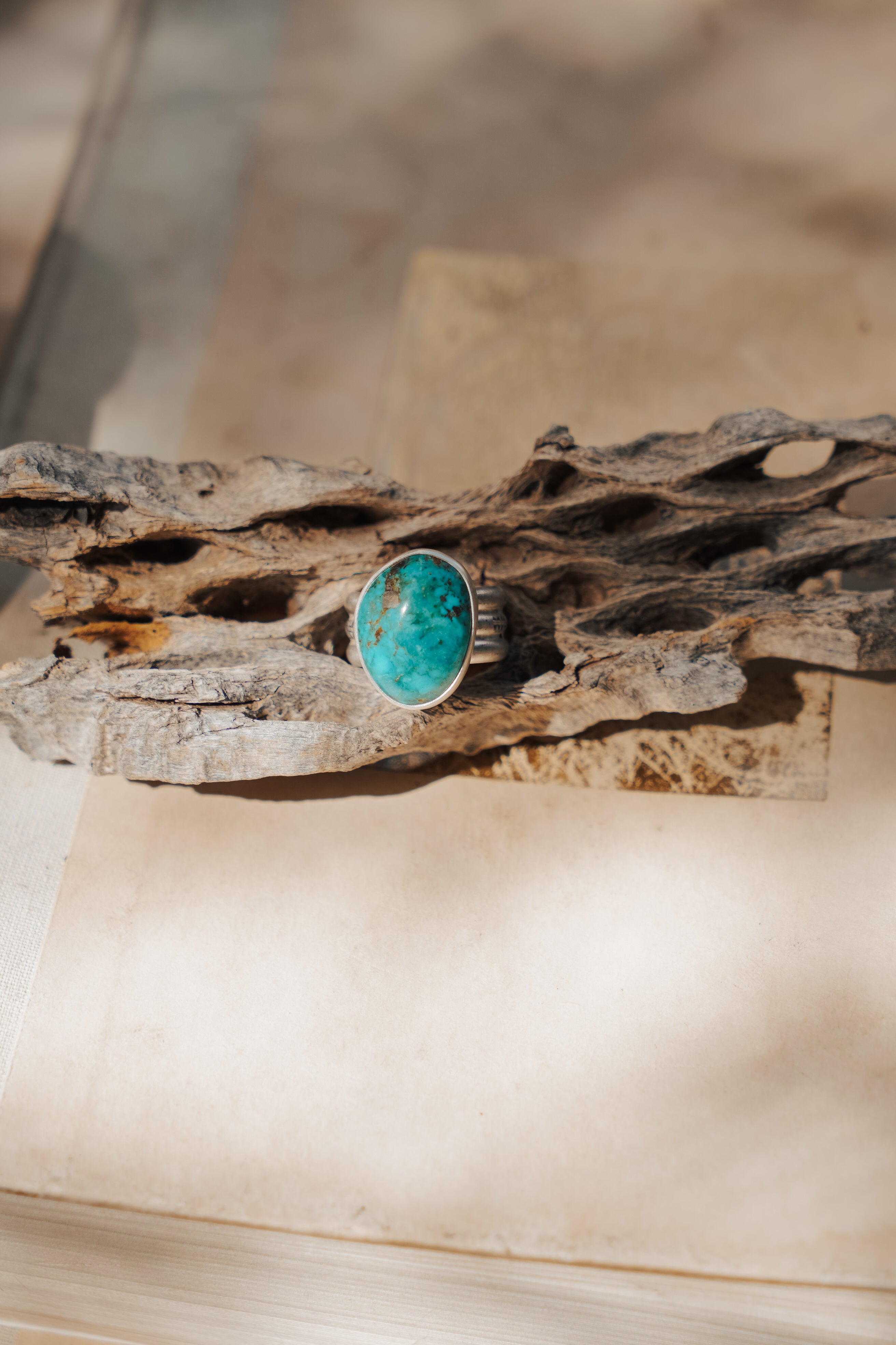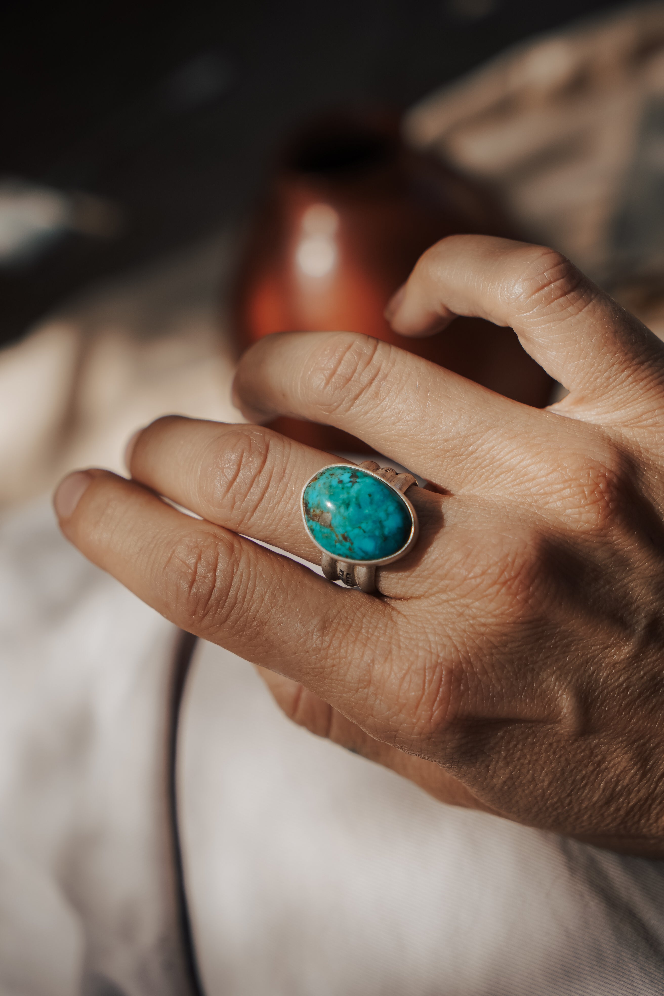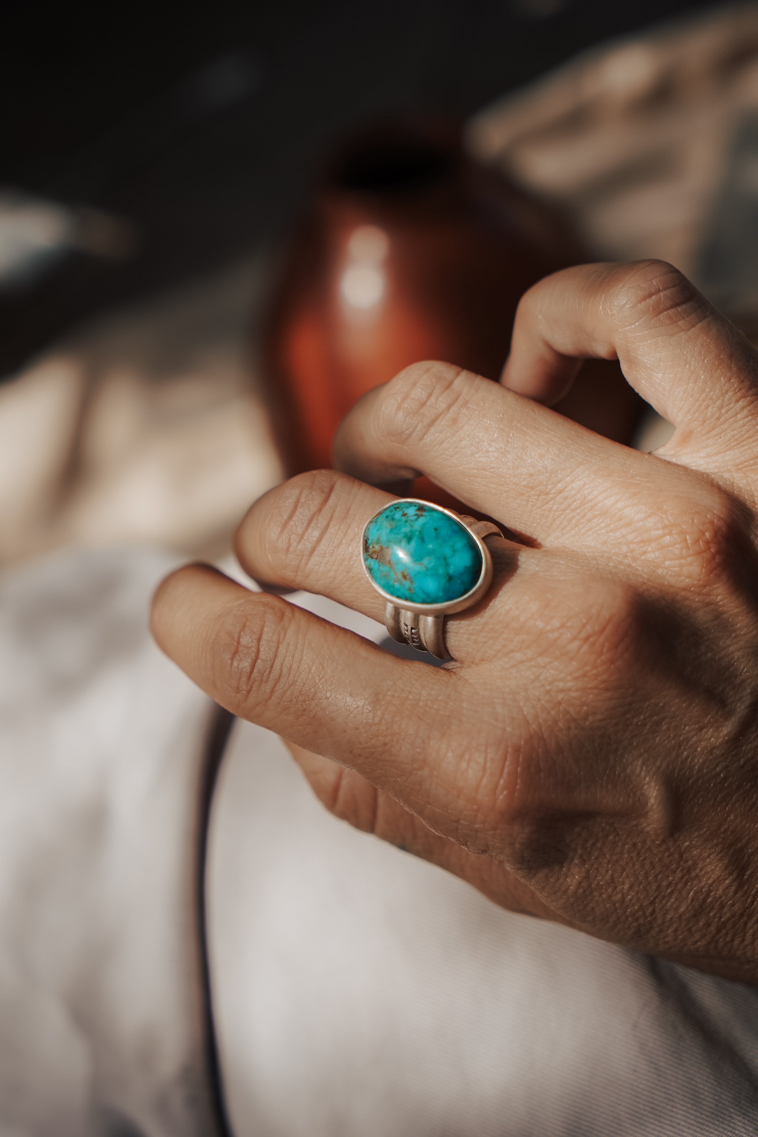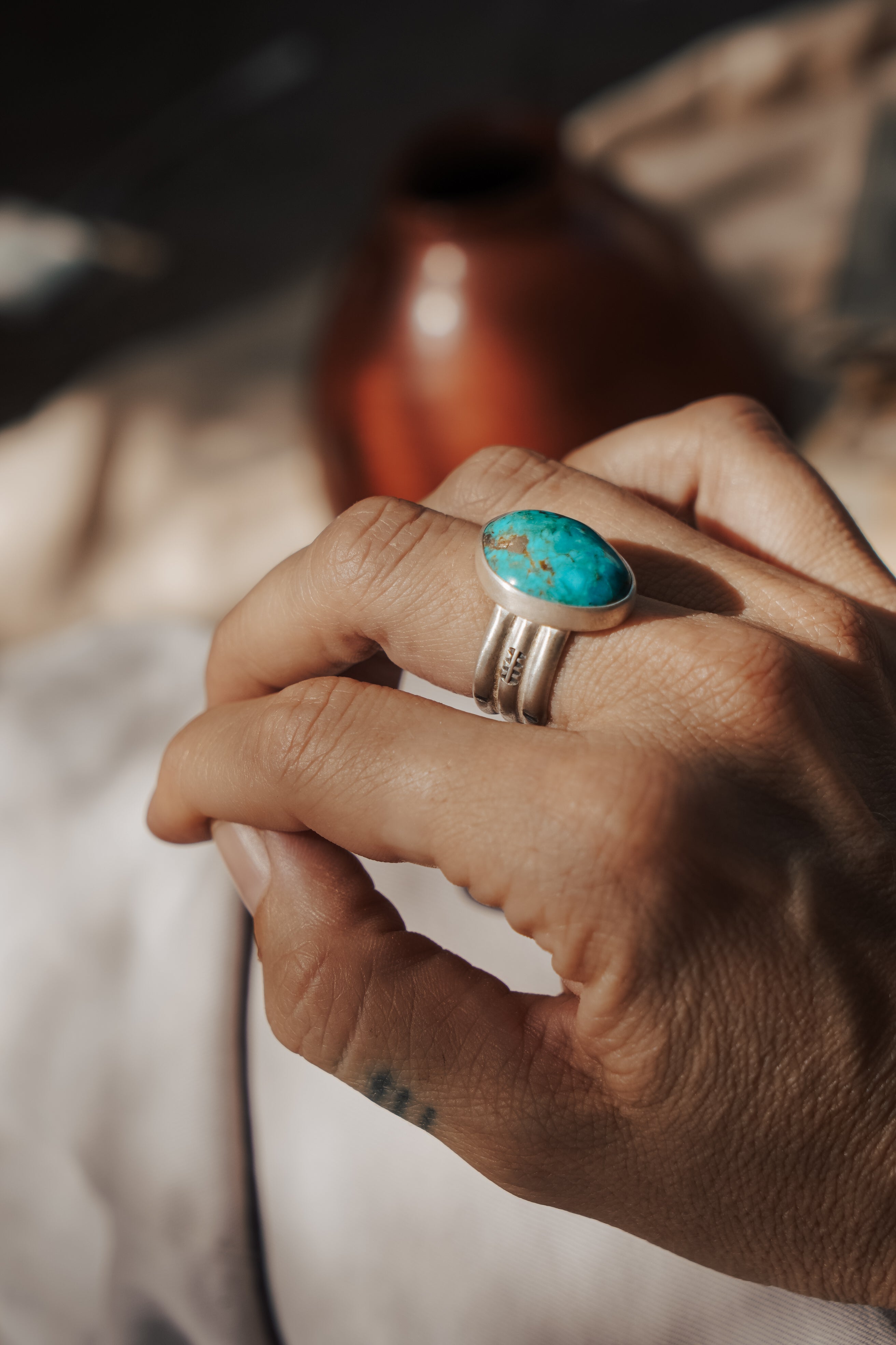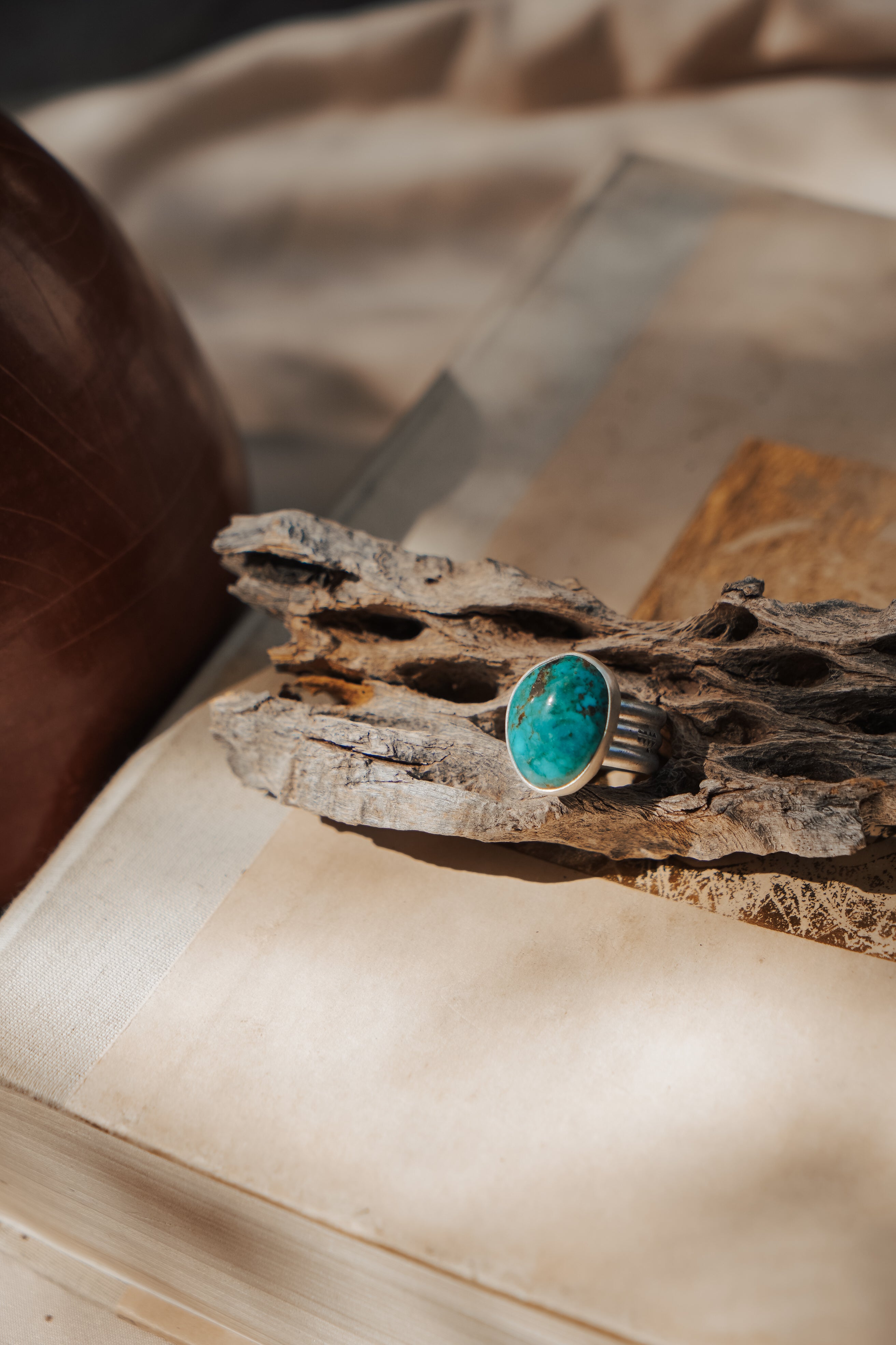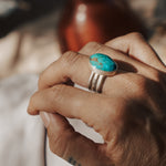This stone is unbelievably gorgeous and pairs so well with this wide hand-stamped, triple-band ring. It's perfect with the matte finish. Can't wait to see who ends up with this one!