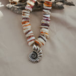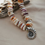 These large, vintage puka shells are AMAZING- we were so excited when we found them in one of our favorite bead stores recently. They're the perfect pair with this beautiful sterling silver spiral shell centerpiece. Such a fun, one-of-a-kind vibe. Can't wait to see who gets it!