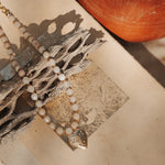 14k gold-fill pendant and peach aquamarine + 14k gold-fill beads. 17.5" chain.