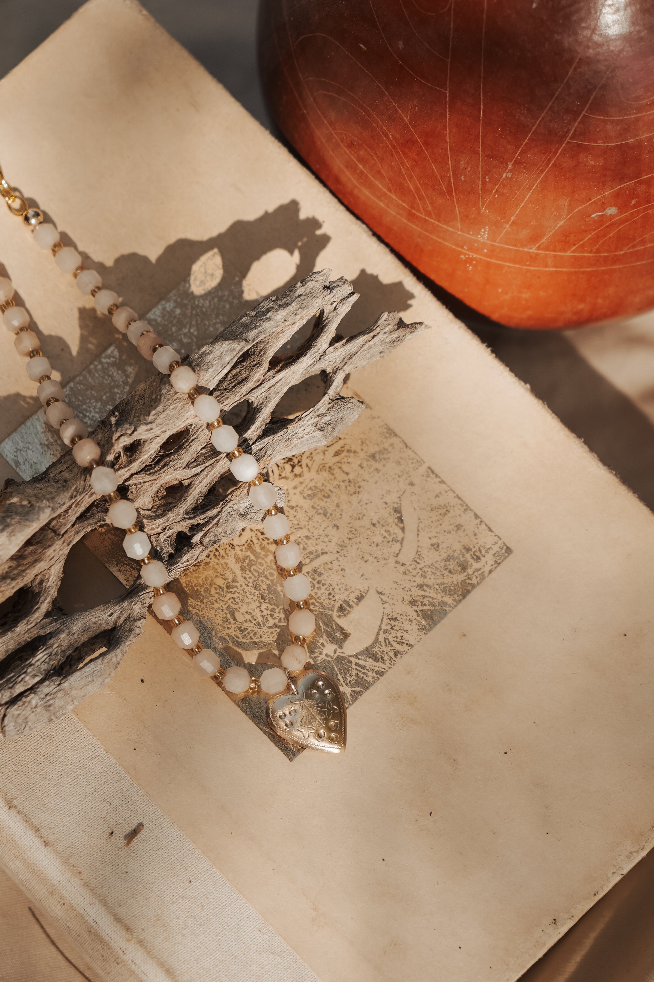 The Fancy Heart Necklace in 14k Gold-Fill w/ Peach Aquamarine Beads