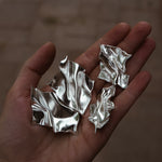 I sat down on the couch with no plan, some wax materials, and a quiet house. After some time of pure creative PLAY, these lovelies came out. Then they were cast in sterling silver and polished to a lovely shine and it's so fun that now they'll go bring joy and beauty to you guys. We love the shape, texture, and light/shadow created by these.