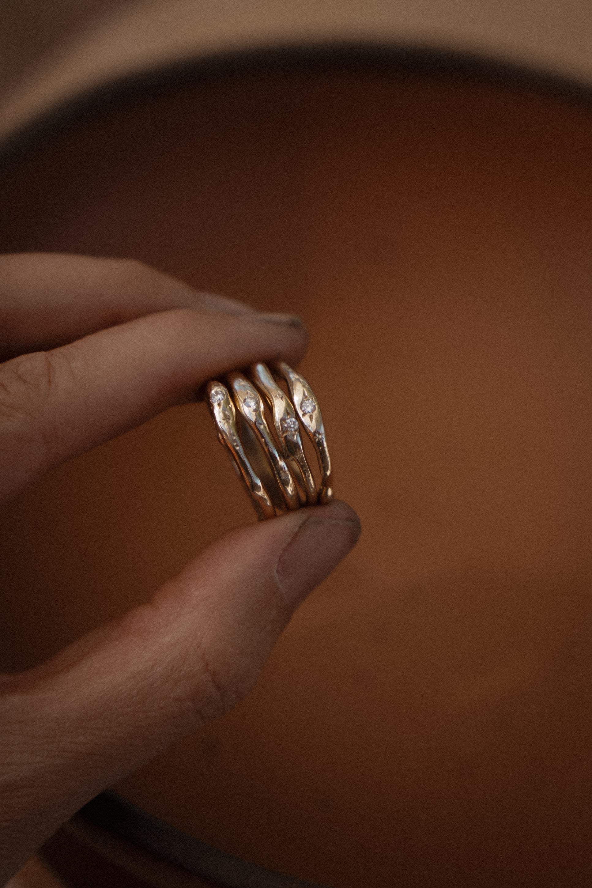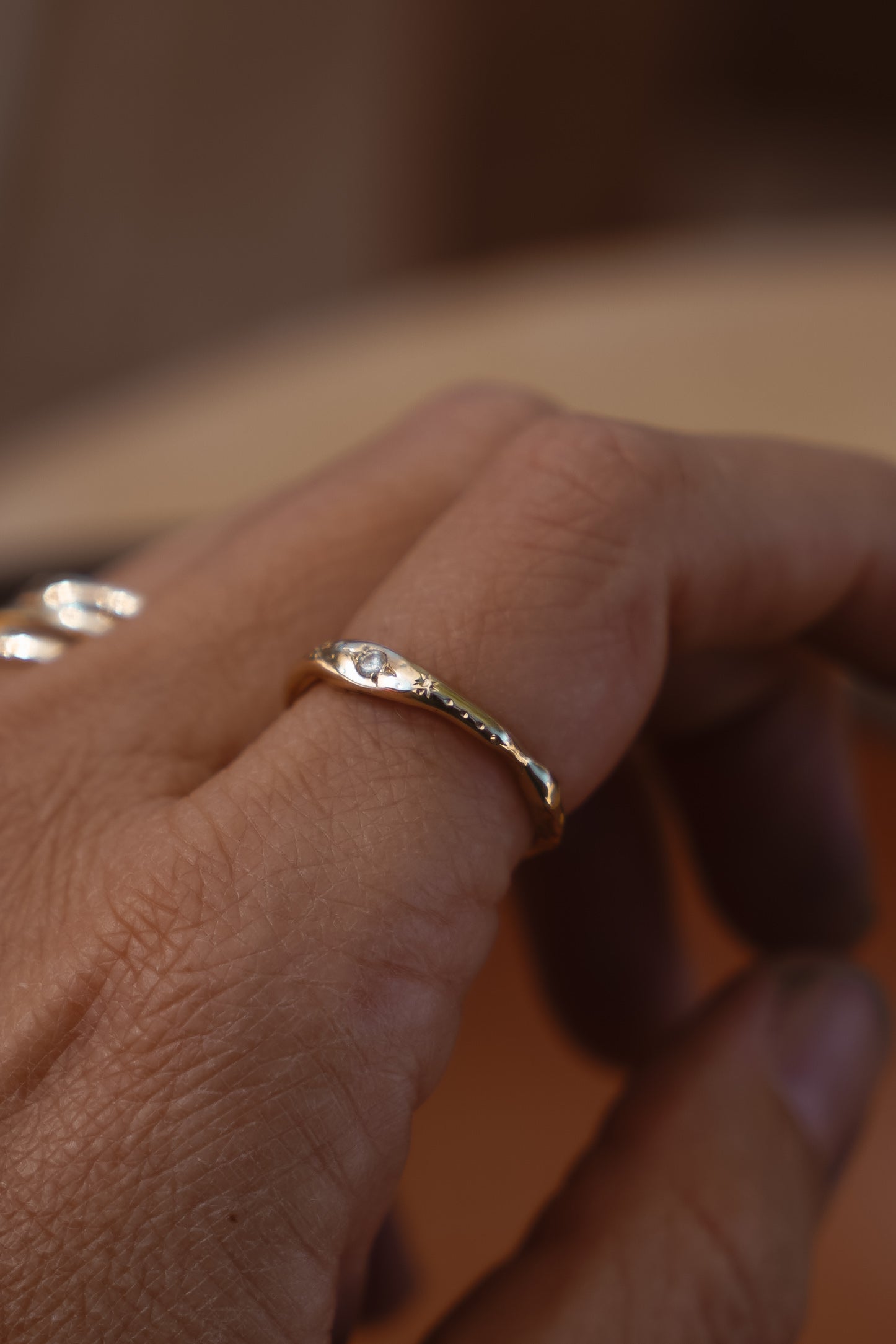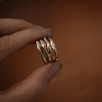 The 10K Gold Stardust Stacker brings out all the romantic charm with hand-engraved details and star-set natural diamonds. These beautiful diamonds offer a gentle sparkle that reflects timeless elegance. Perfect for layering or wearing alone, it brings a subtle yet meaningful touch to any look.