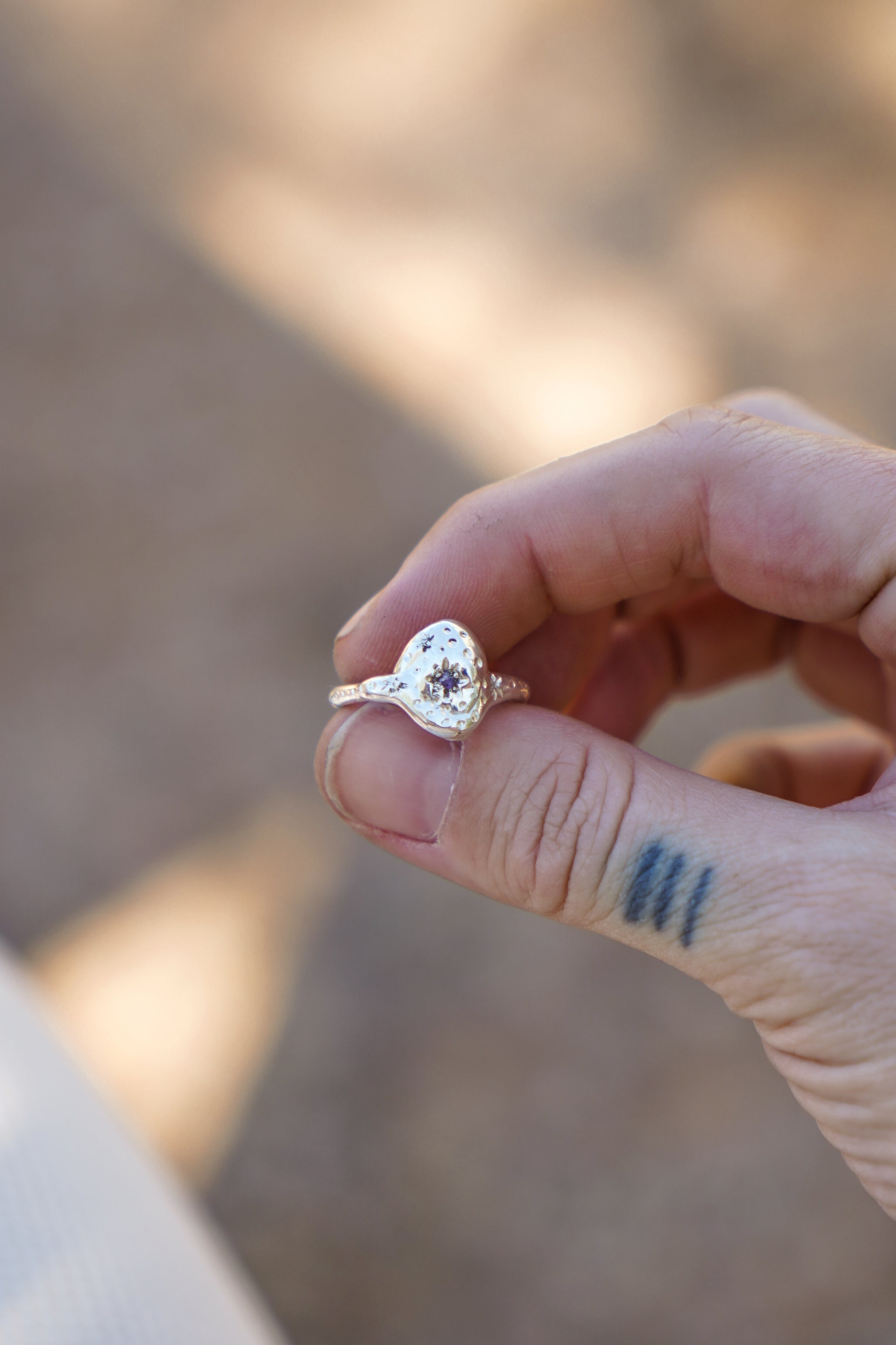 We're so excited to release these birthstone rings as a made-to-order product! Each ring is cast in your size and then handset and engraved. Select your lab grown birthstone and leave a note with your ring size at checkout.