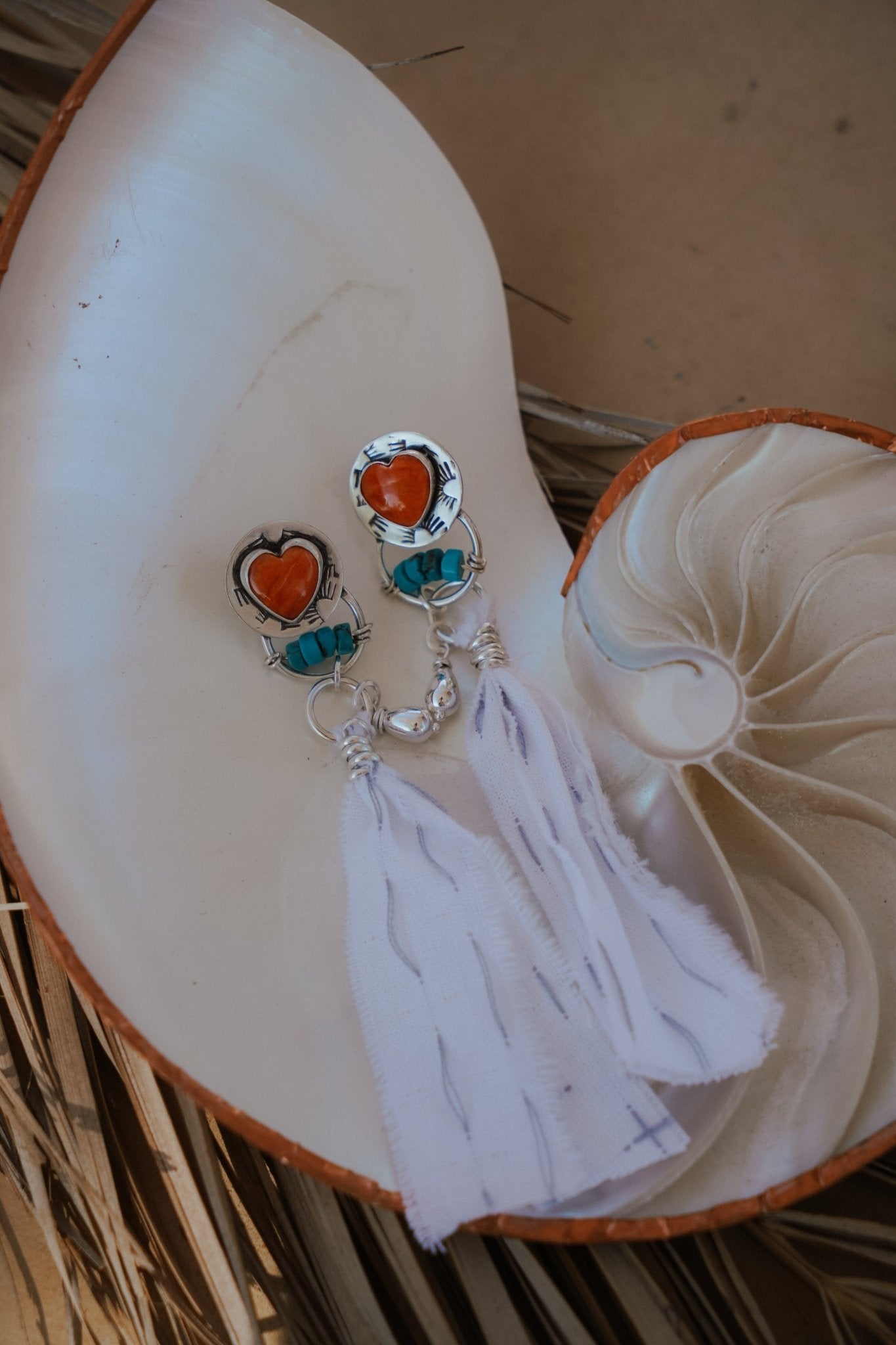 Need a new favorite pair of summer earrings?! We got you covered! We're loving these torn fabric tassles, the beads, the hand-stamped disc, and lovely Spiny Oyster hearts. Can't wait to see who ends up with these one-of-a-kind beauties!