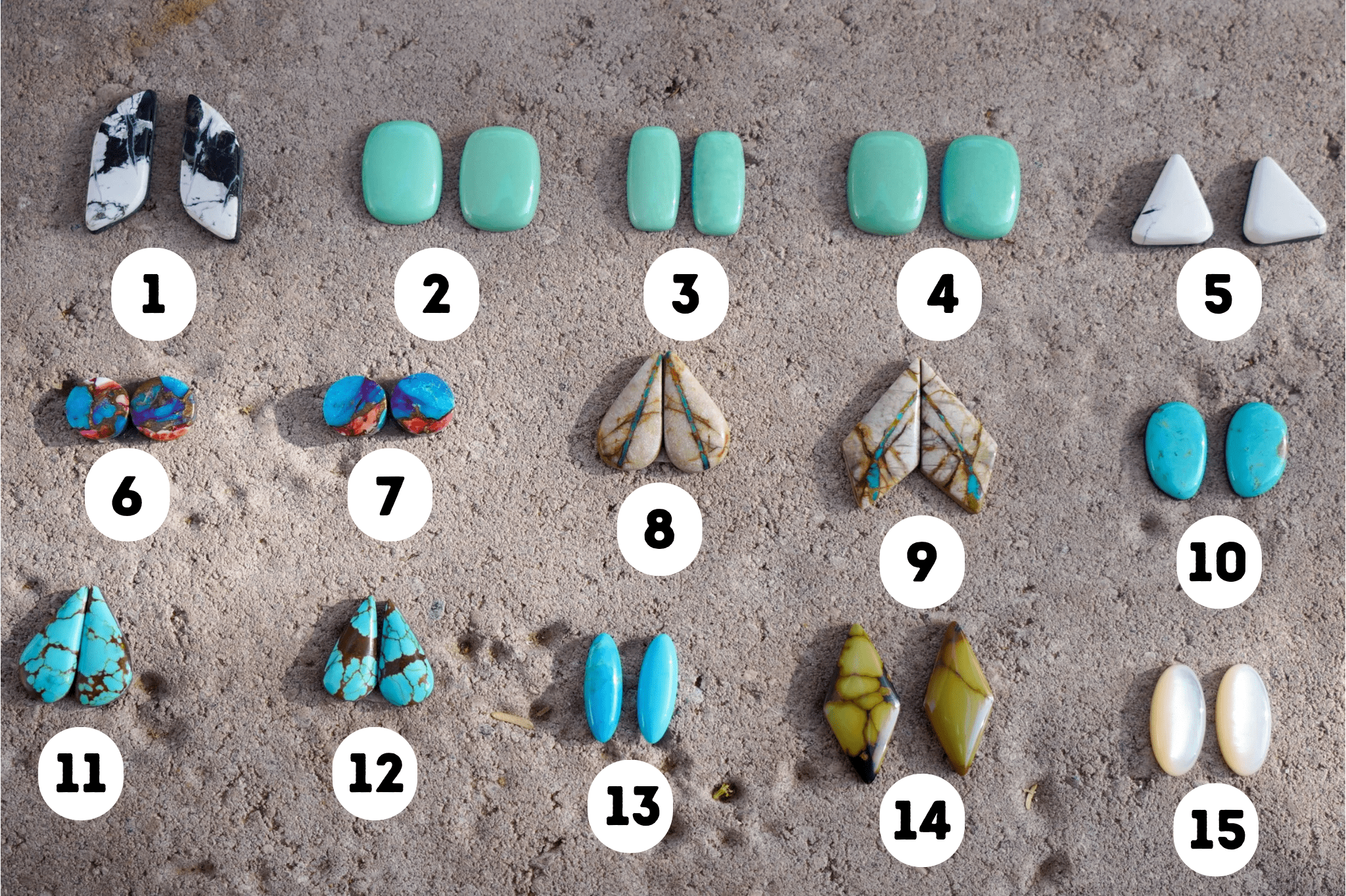 Select the number corresponding to the stone you want and we will have these earrings made and out the door within 4-6 weeks at the latest.
