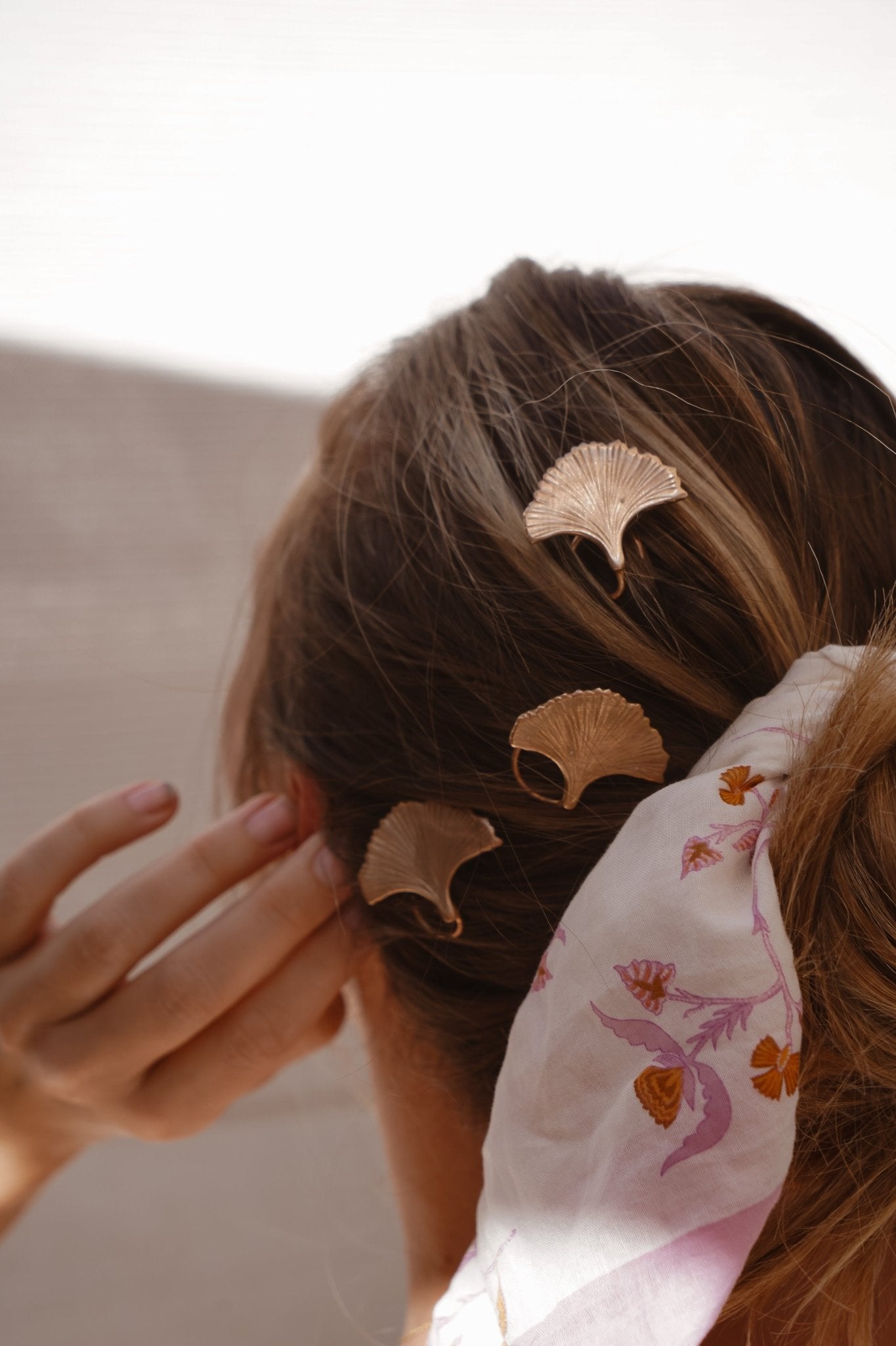 A sculptural nod to the ancient ginkgo leaf, these bronze twists bring organic texture and soft movement to your hair. Throw them into a soft full or half up bun of braids and you've elevated your look effortlessly.