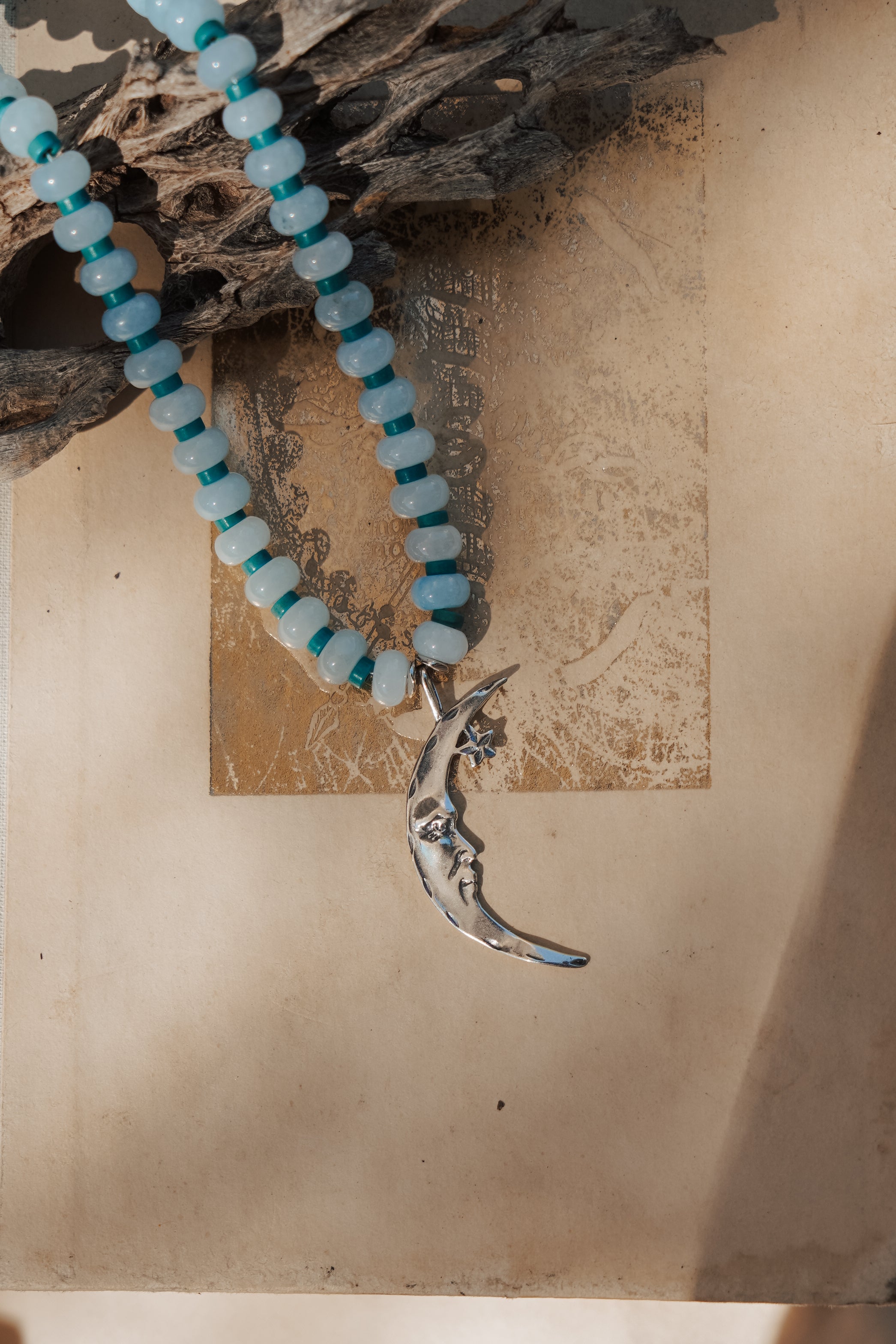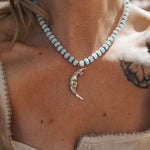 The Lunara Necklace in Aquamarine + Glass Beads