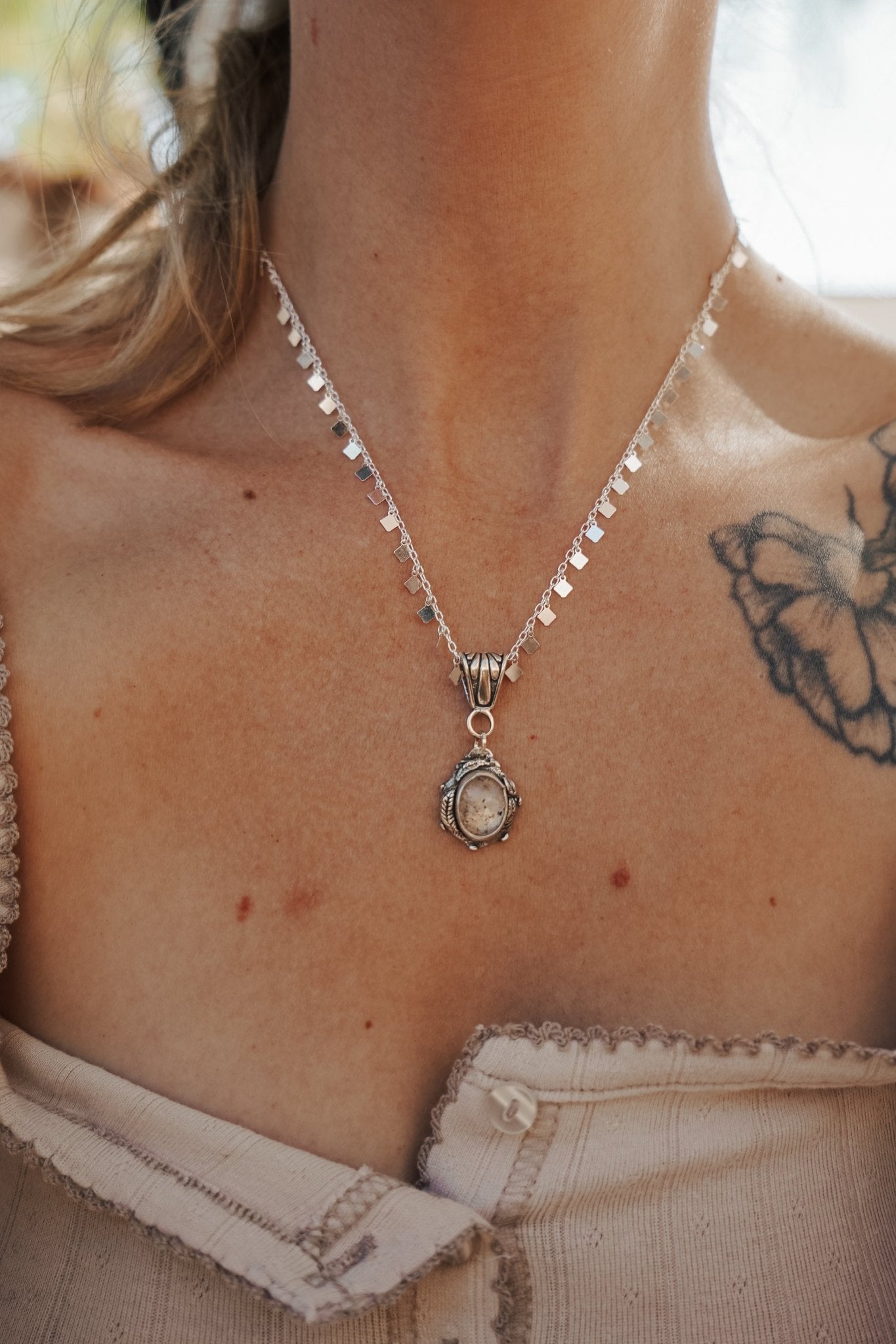Necklace in Quartz w/ Diopside - Golden Road Crafted