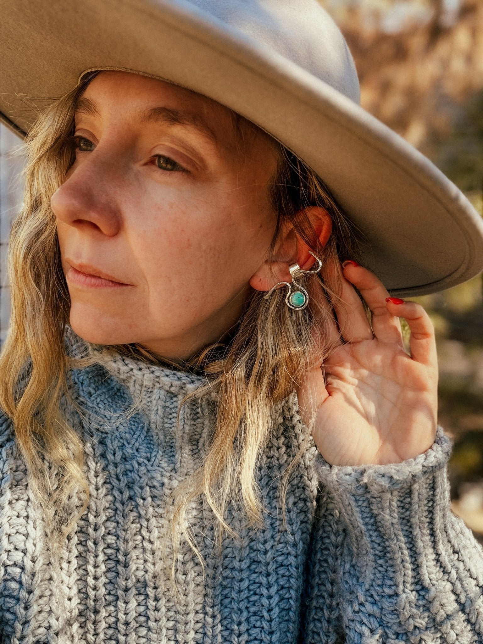 Serpent Ear Cuff in Iron Maiden Turquoise - Golden Road Crafted