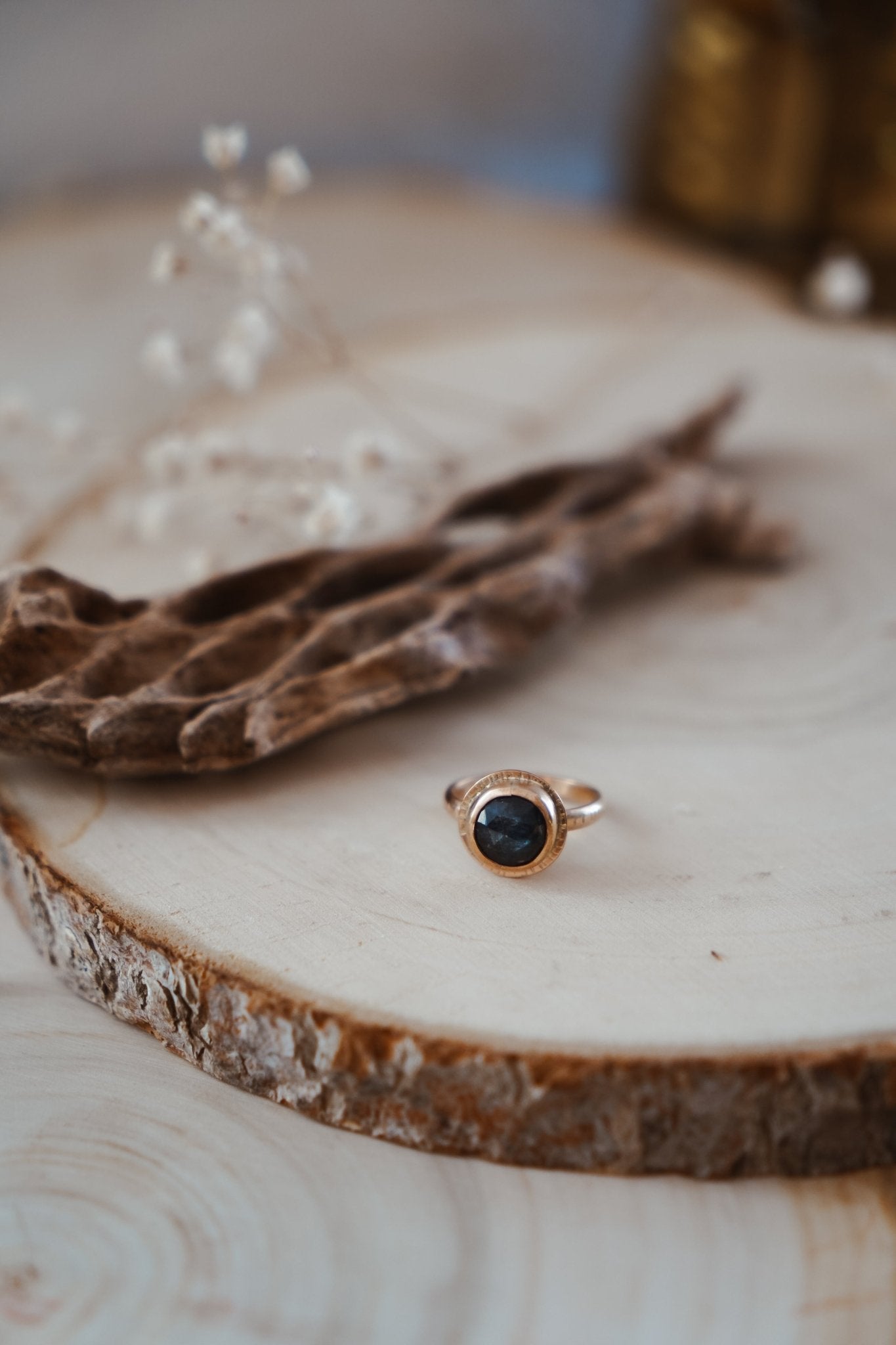 We've loved working with 14k gold-fill in recent collections and were so excited when you guys asked for more! Well, here you go. This dainty 14k gold-fill ring with hand stamped sun rays has us drooling. Add in these gorgeous, faceted Kyanite stones and this one truly has all the vibes- watch it shimmer in the natural light!
