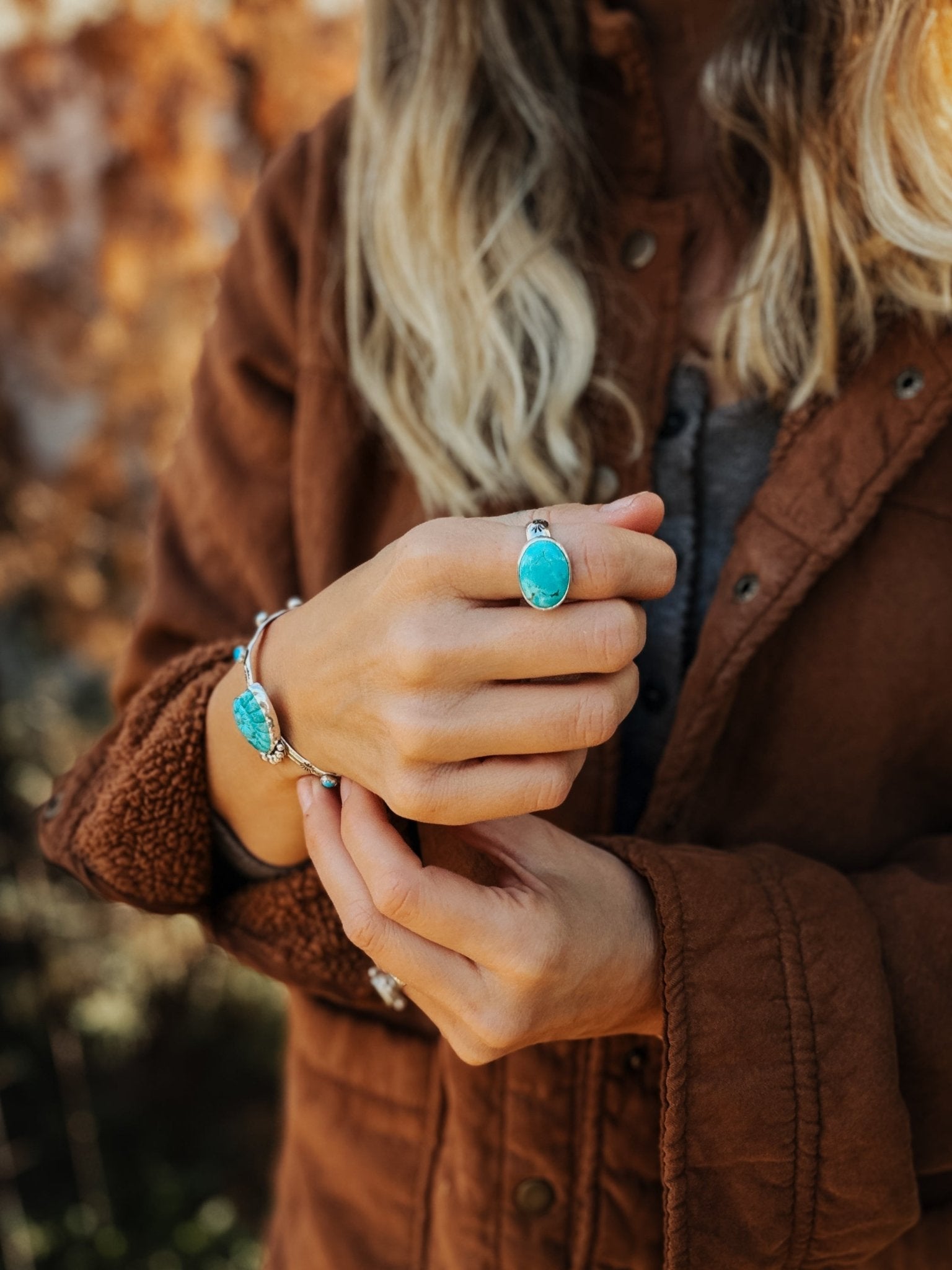 This one would pair great with the Statement Cuff in Hubei Turquoise, the Turquoise Ammonite Cuff, or the Blue Sky Rings in this collection.