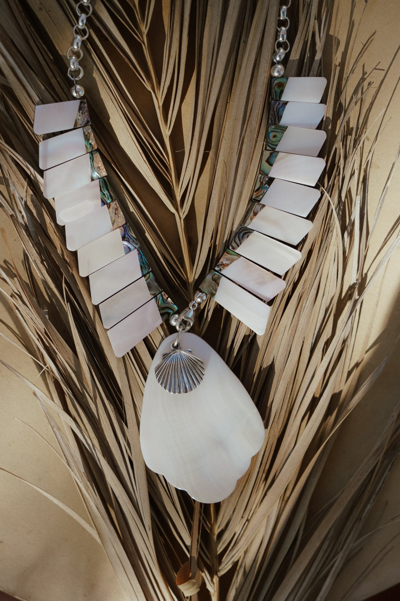 Collar with Pearl + Shell and Abalone Shell - Golden Road Crafted
