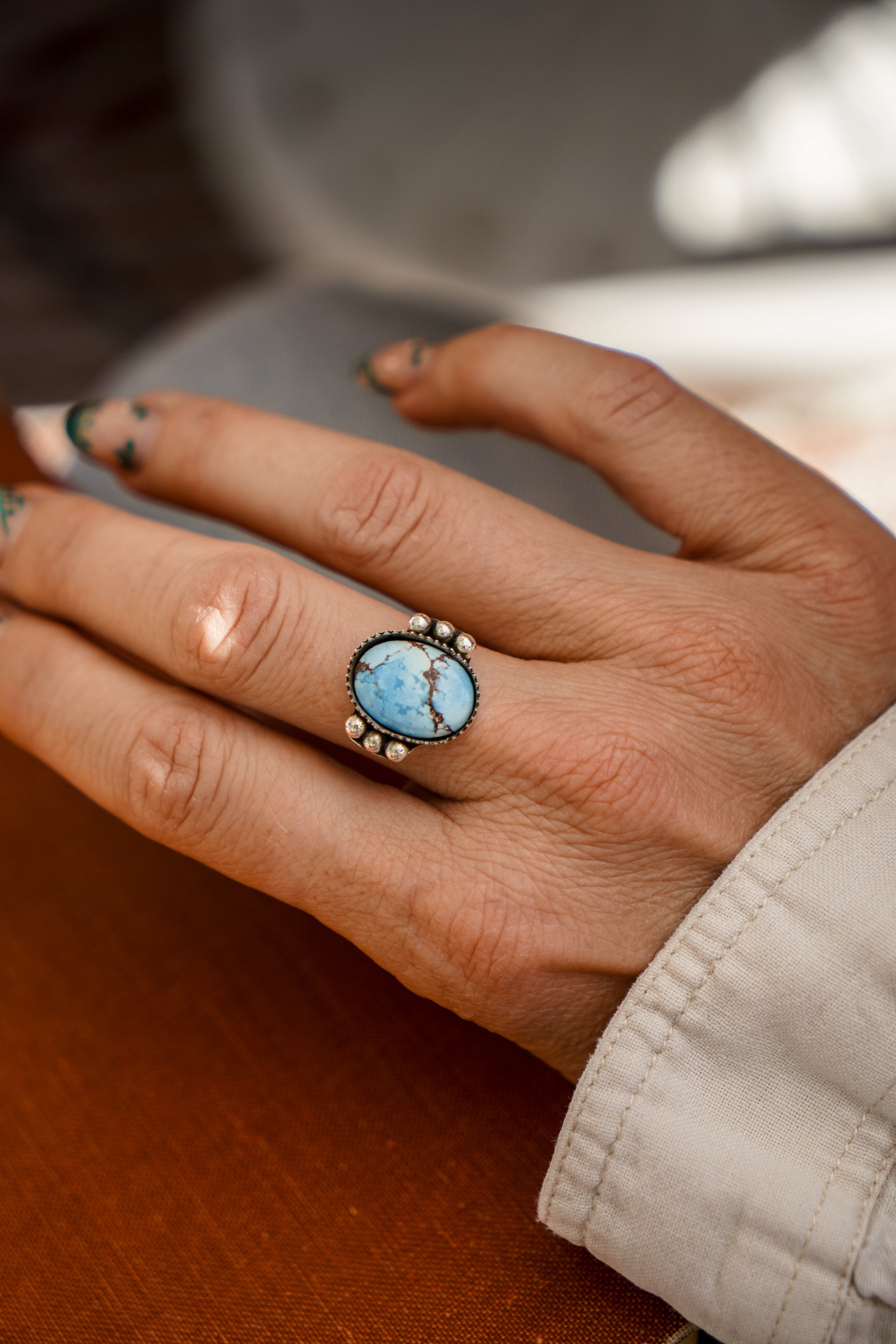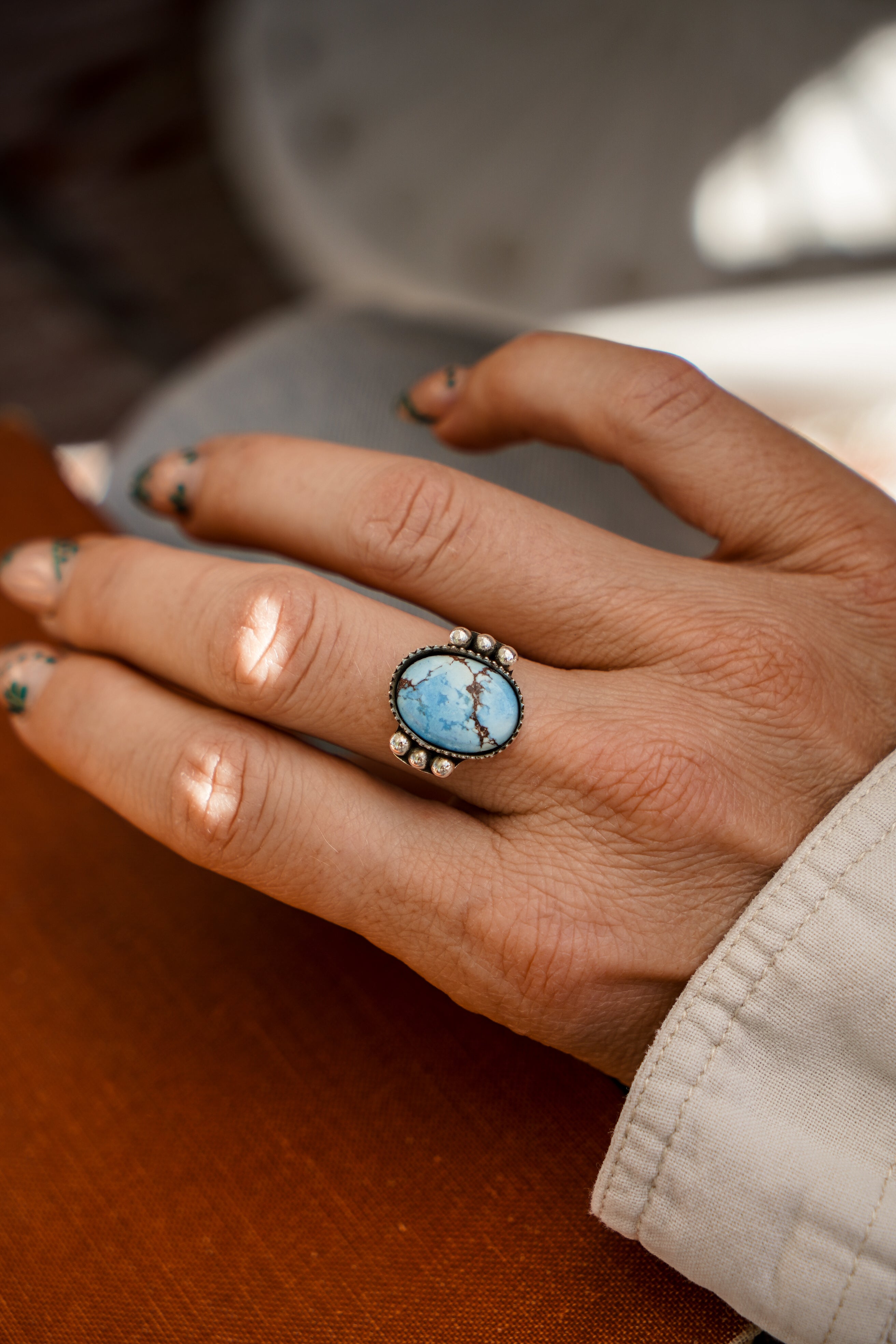 The Ellipsis Ring in Golden Hills Turquoise (Choose your size)