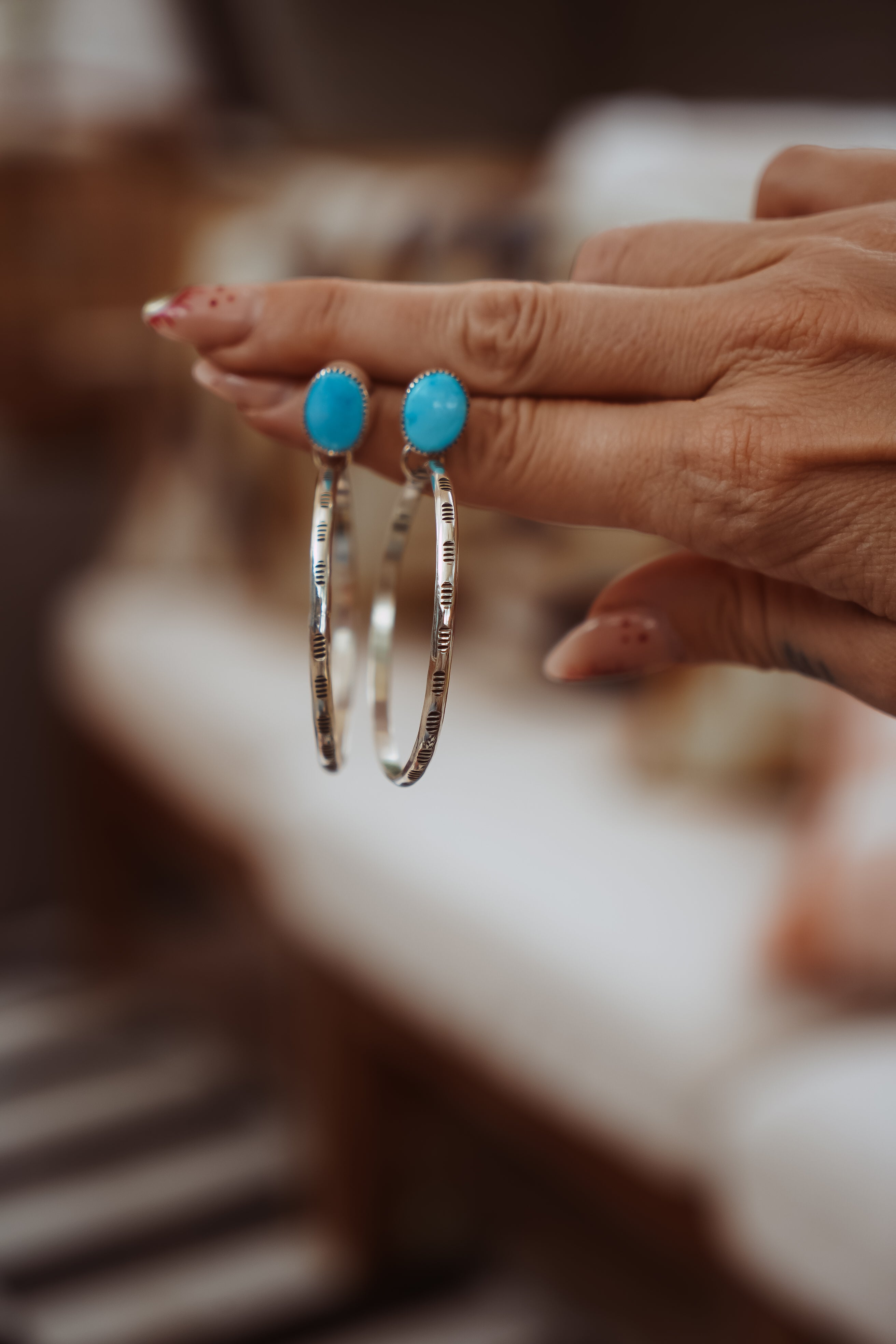 Stud Hoop Earrings in Blue Ridge Turquoise