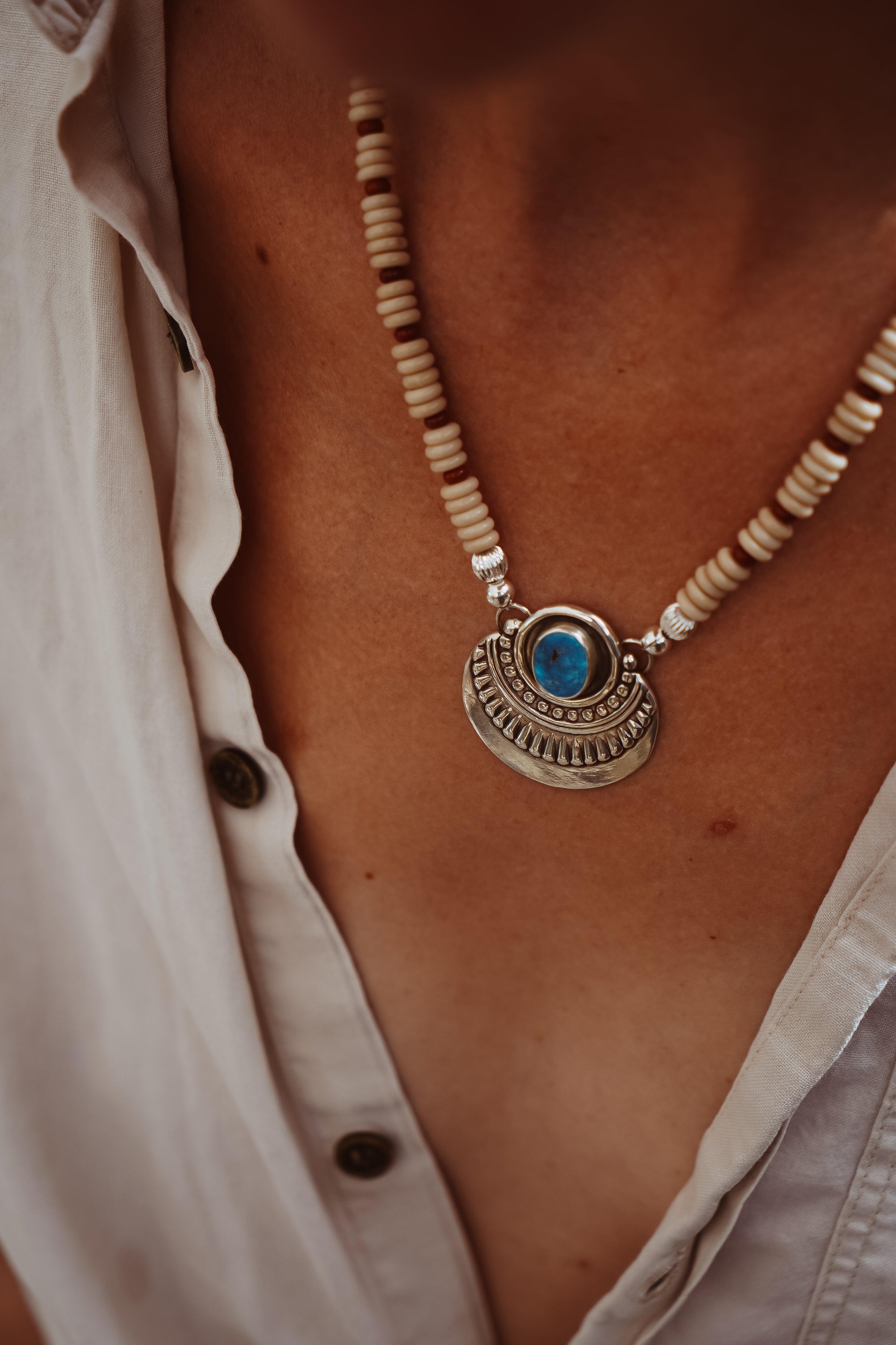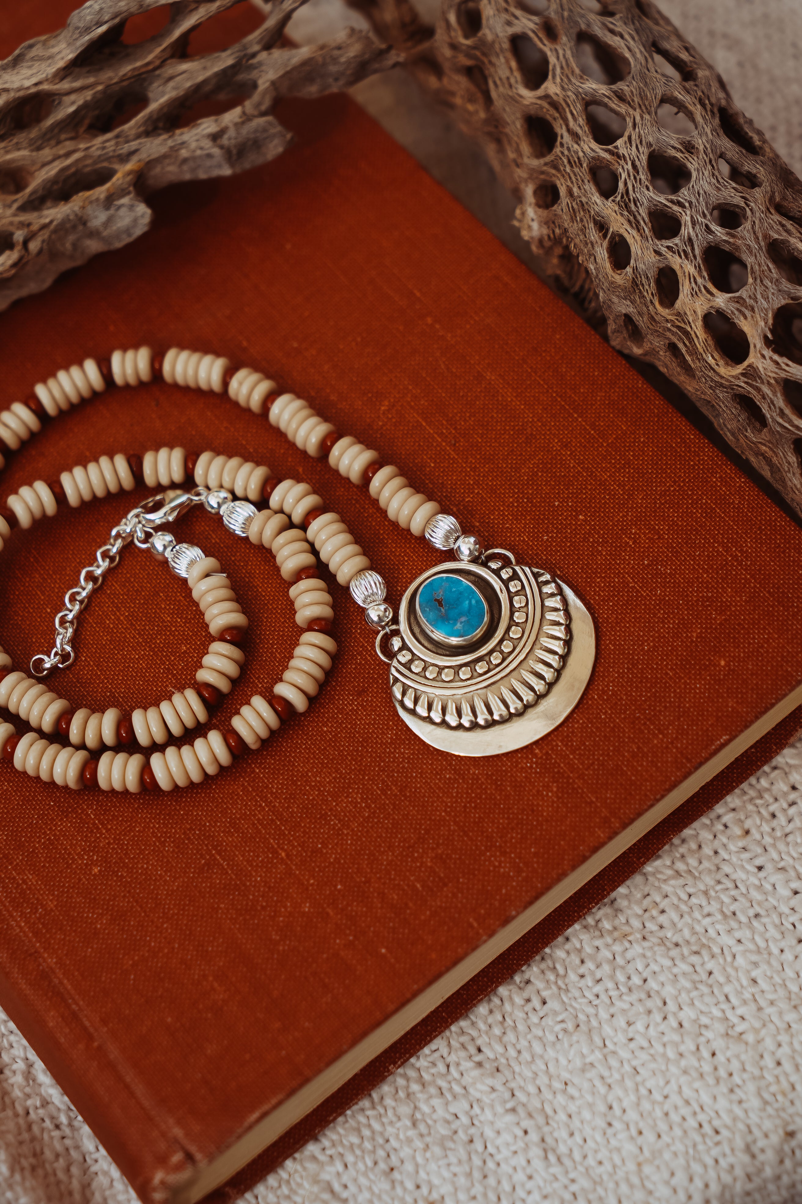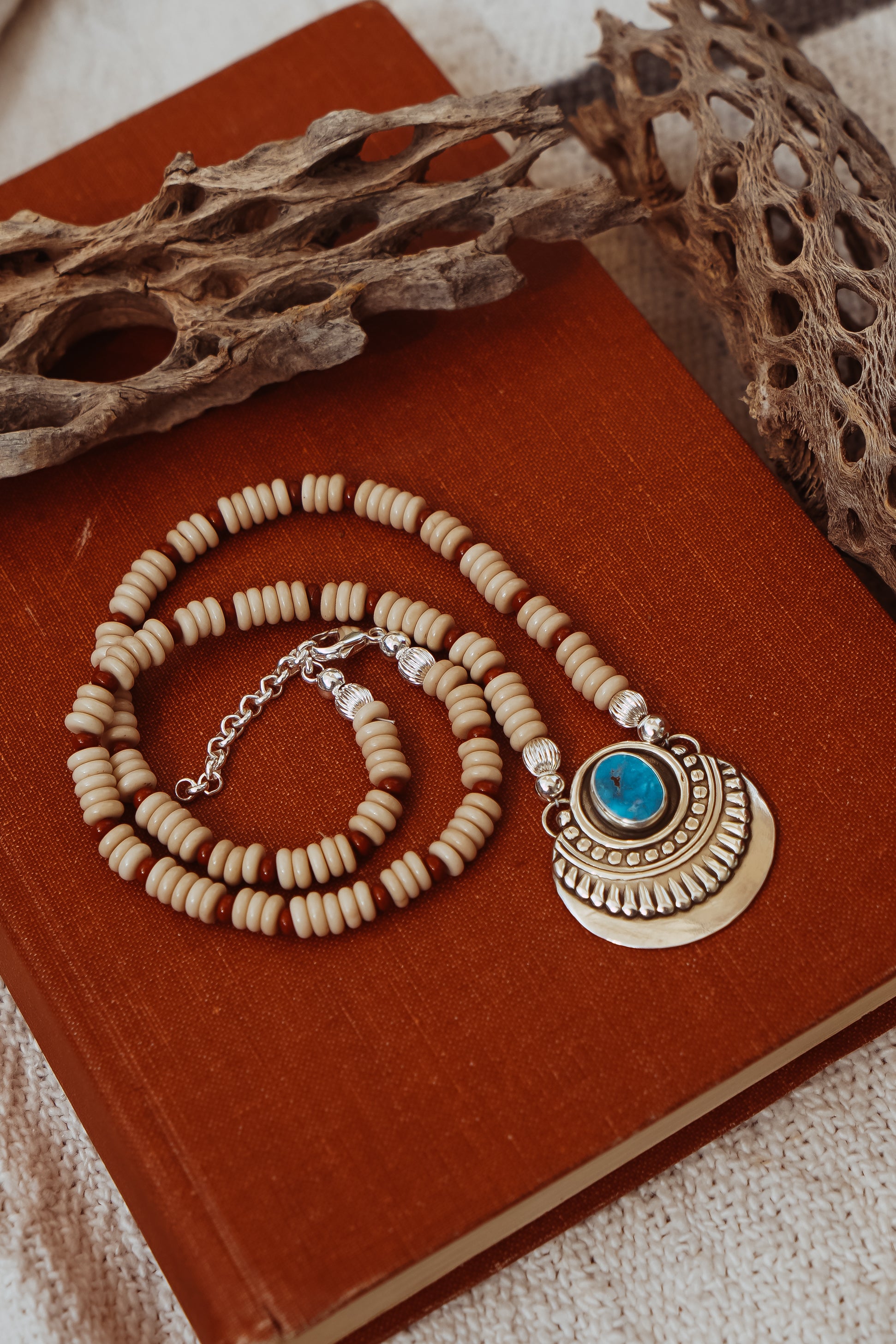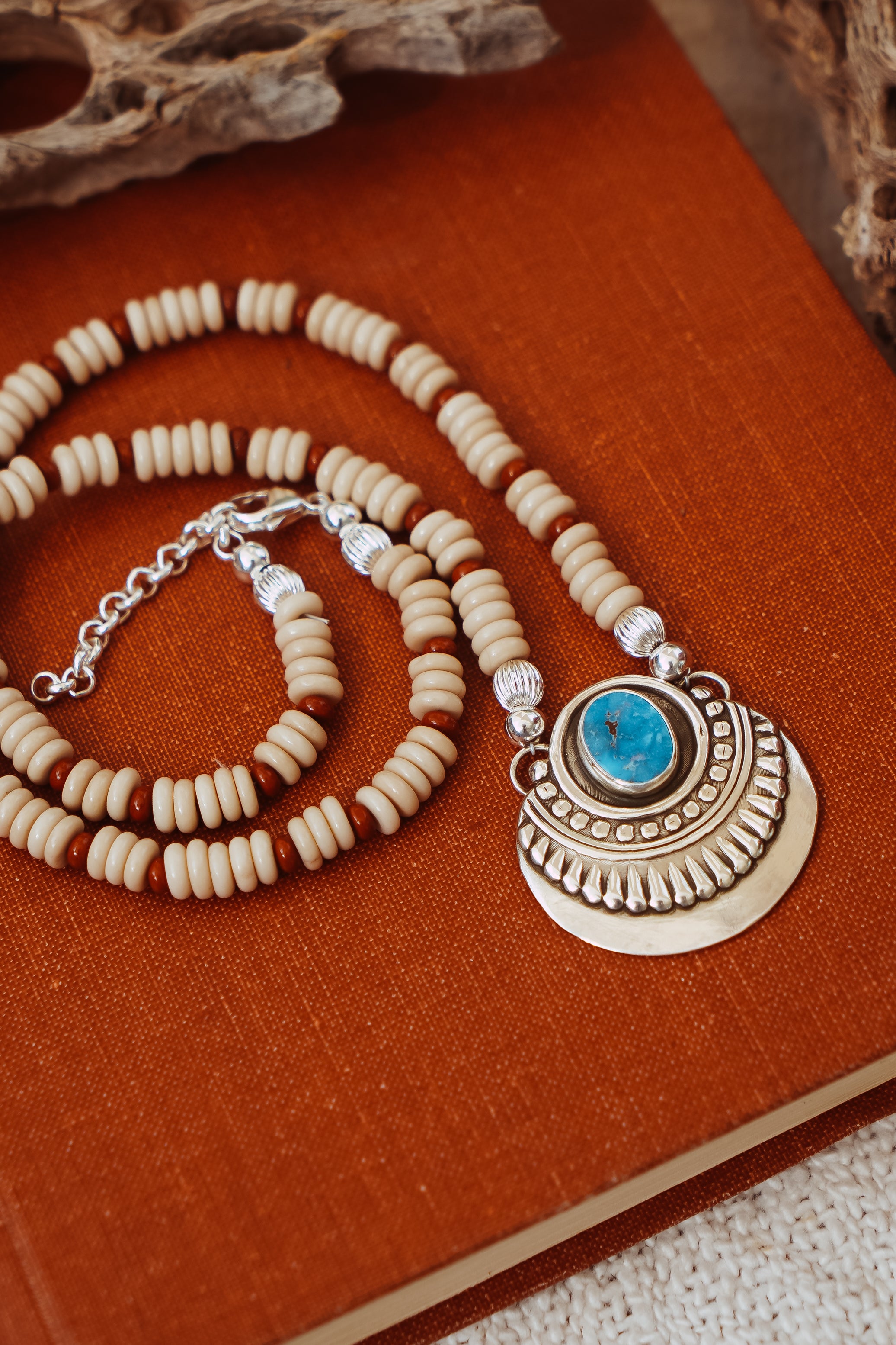 We've been loving this new pendant design and are so excited to bring it back in Blue Ridge. The Fossil Jasper & Red Jasper Bead Necklace bring the whole thing together and make this a true one-of-a-kind piece. We can't wait to see who snags this one!