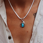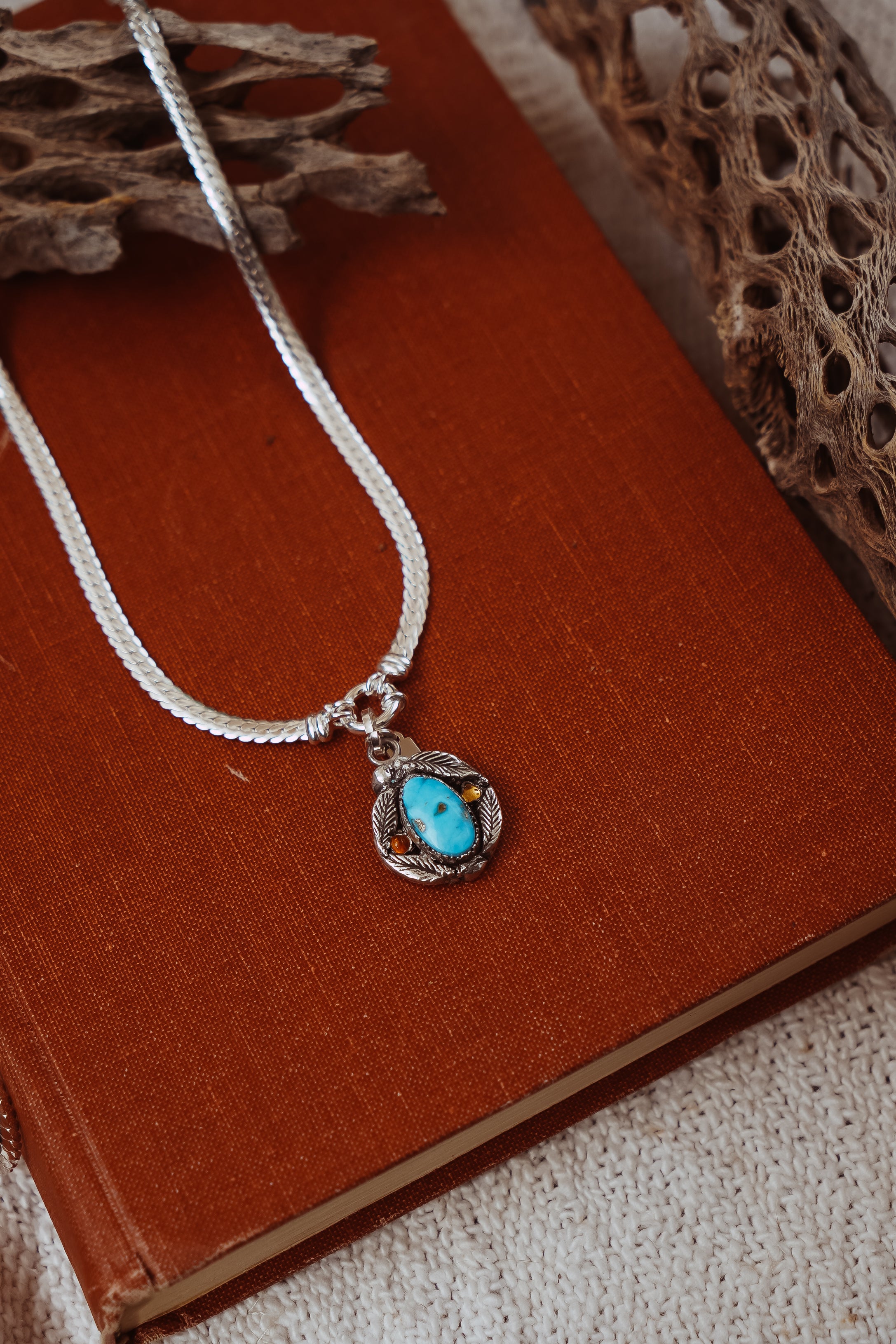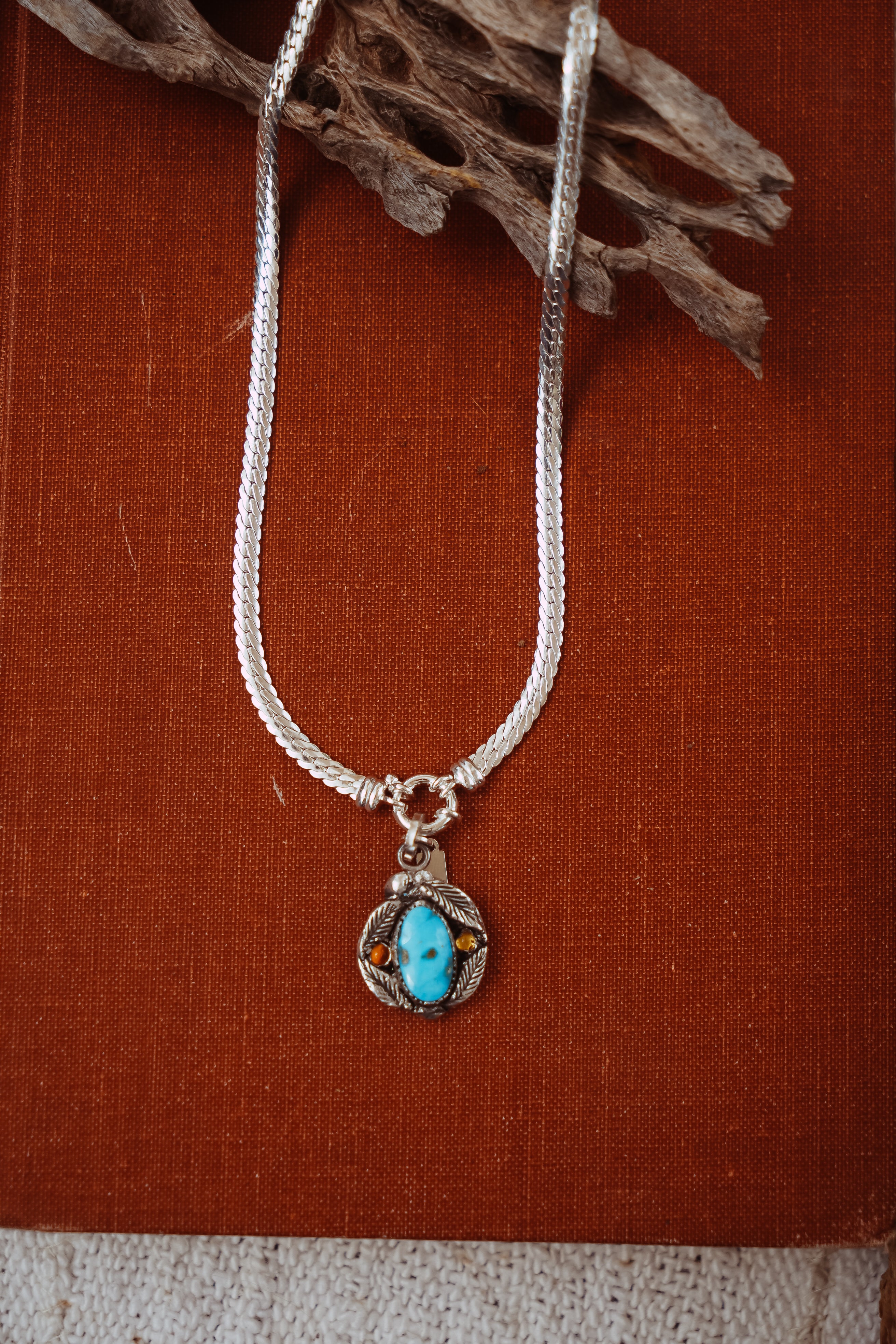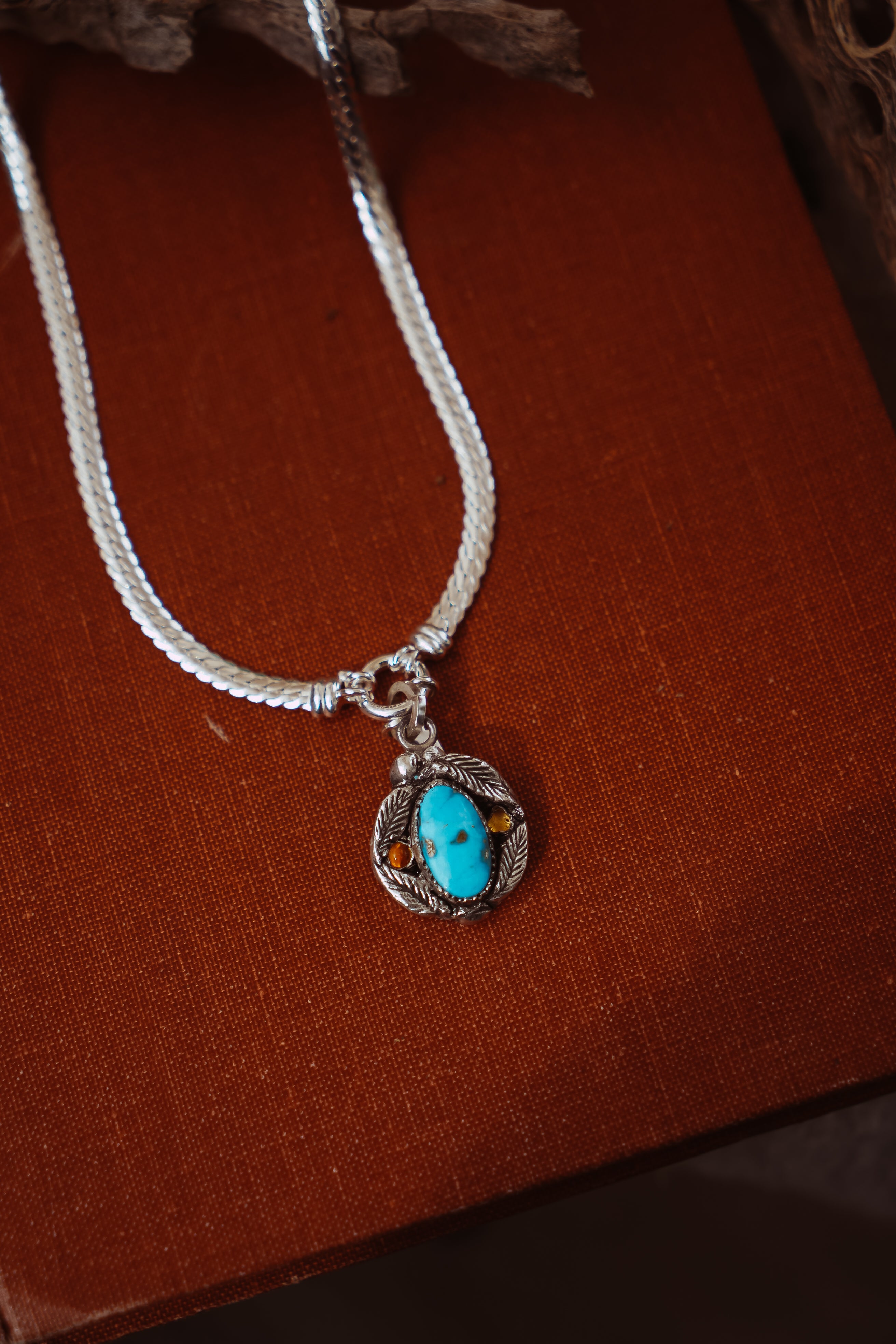 Kiln-Fired Fine Silver Necklace in Blue Ridge Turquoise + Citrine
