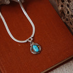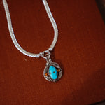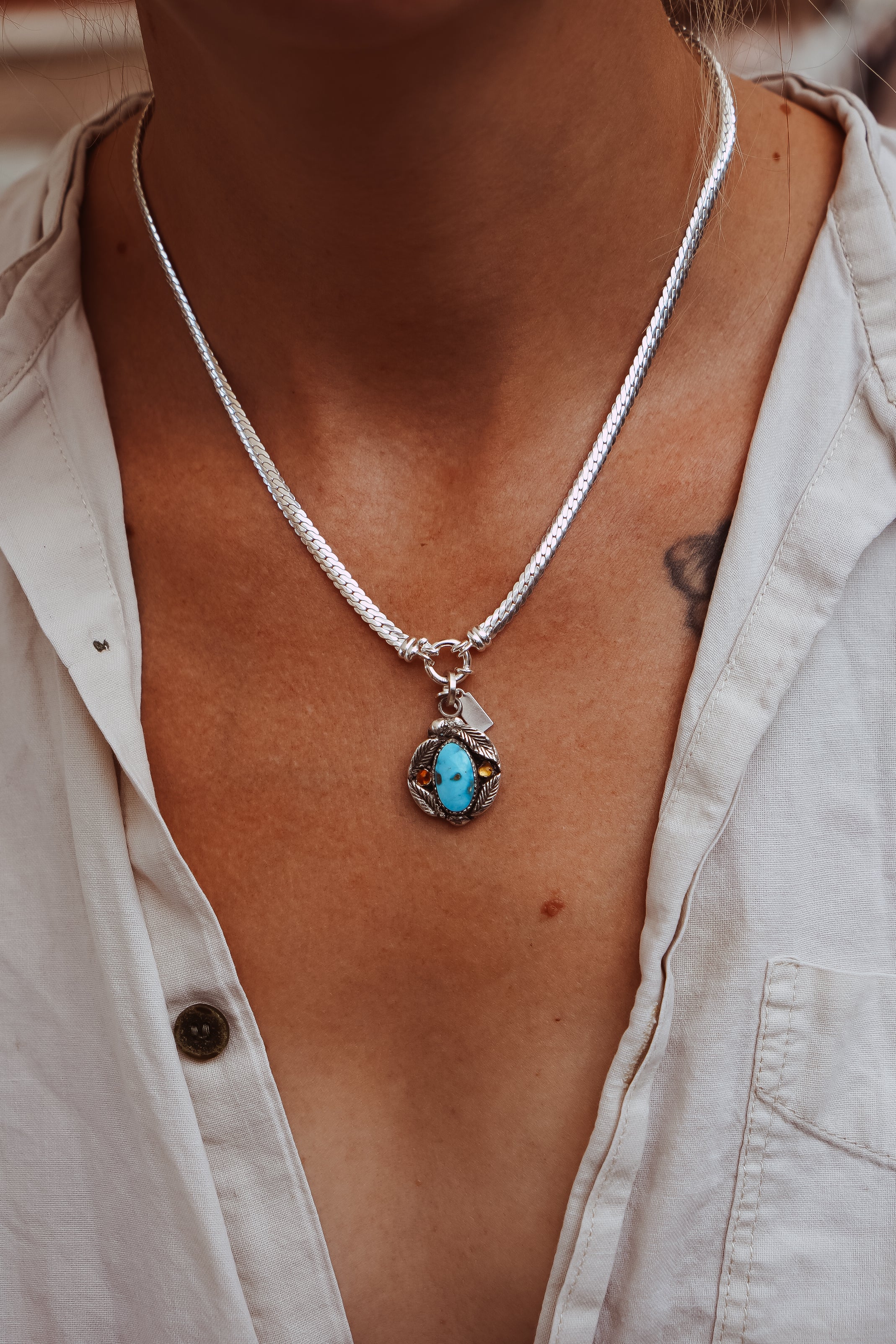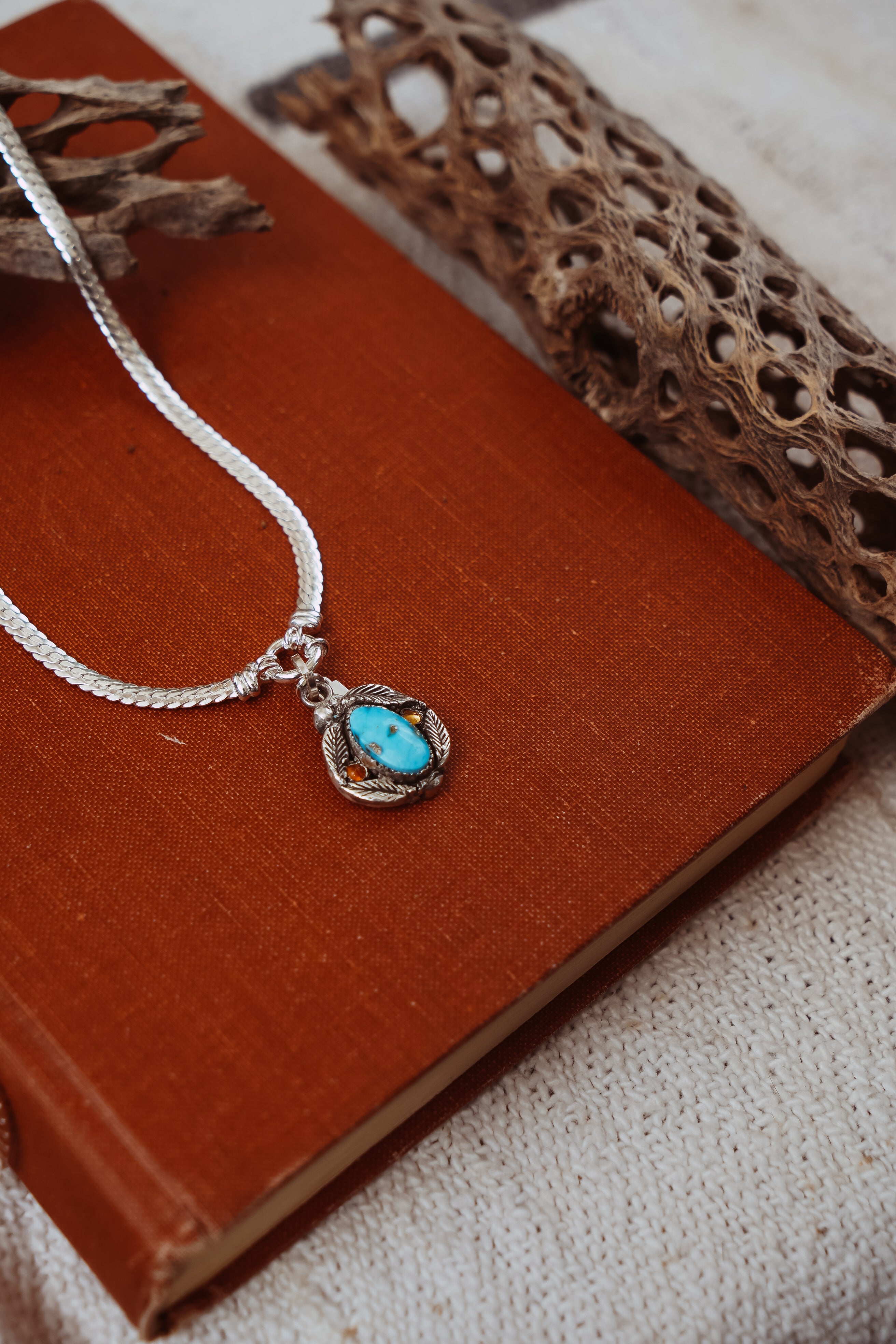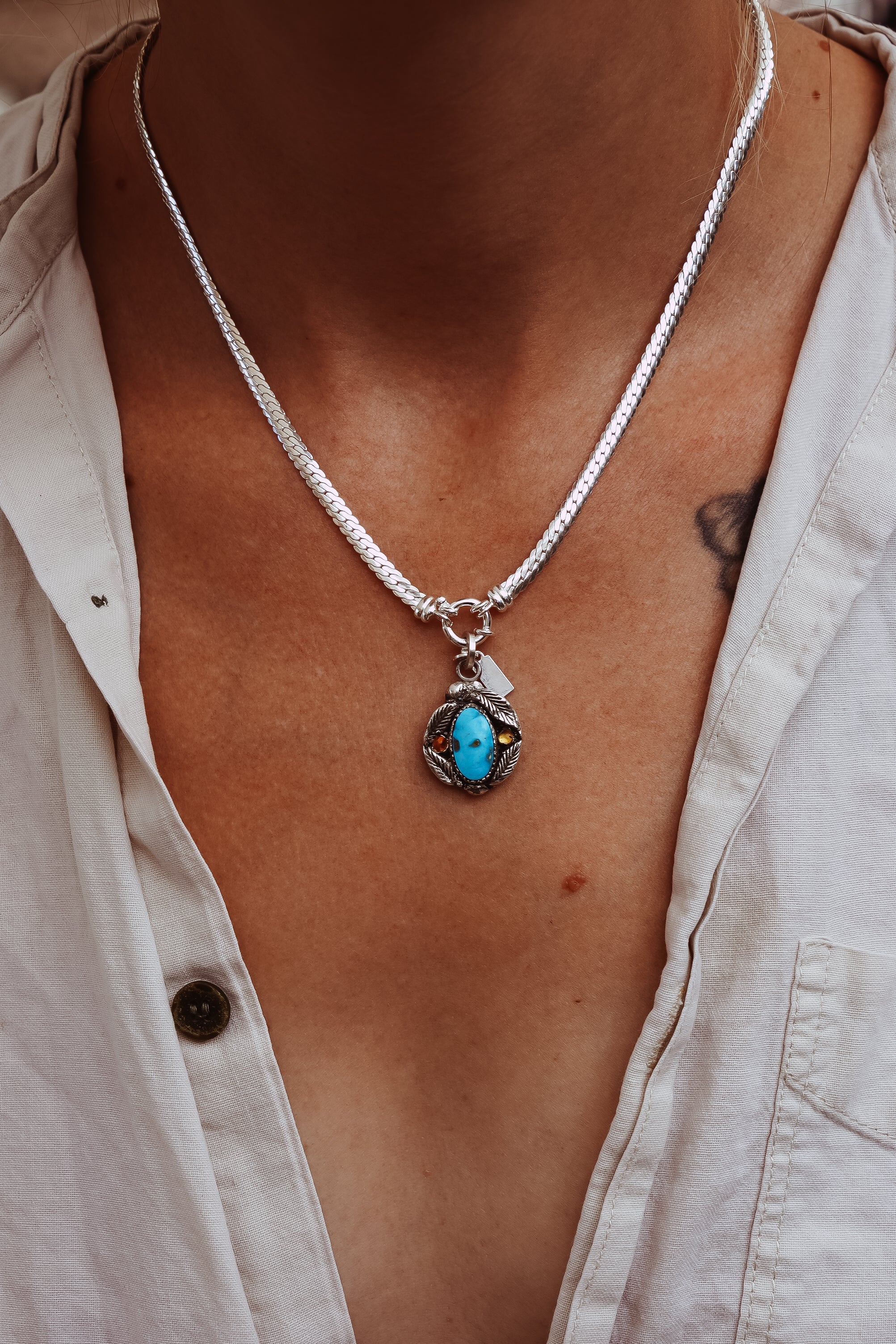 Kiln-Fired Fine Silver Necklace in Blue Ridge Turquoise + Citrine