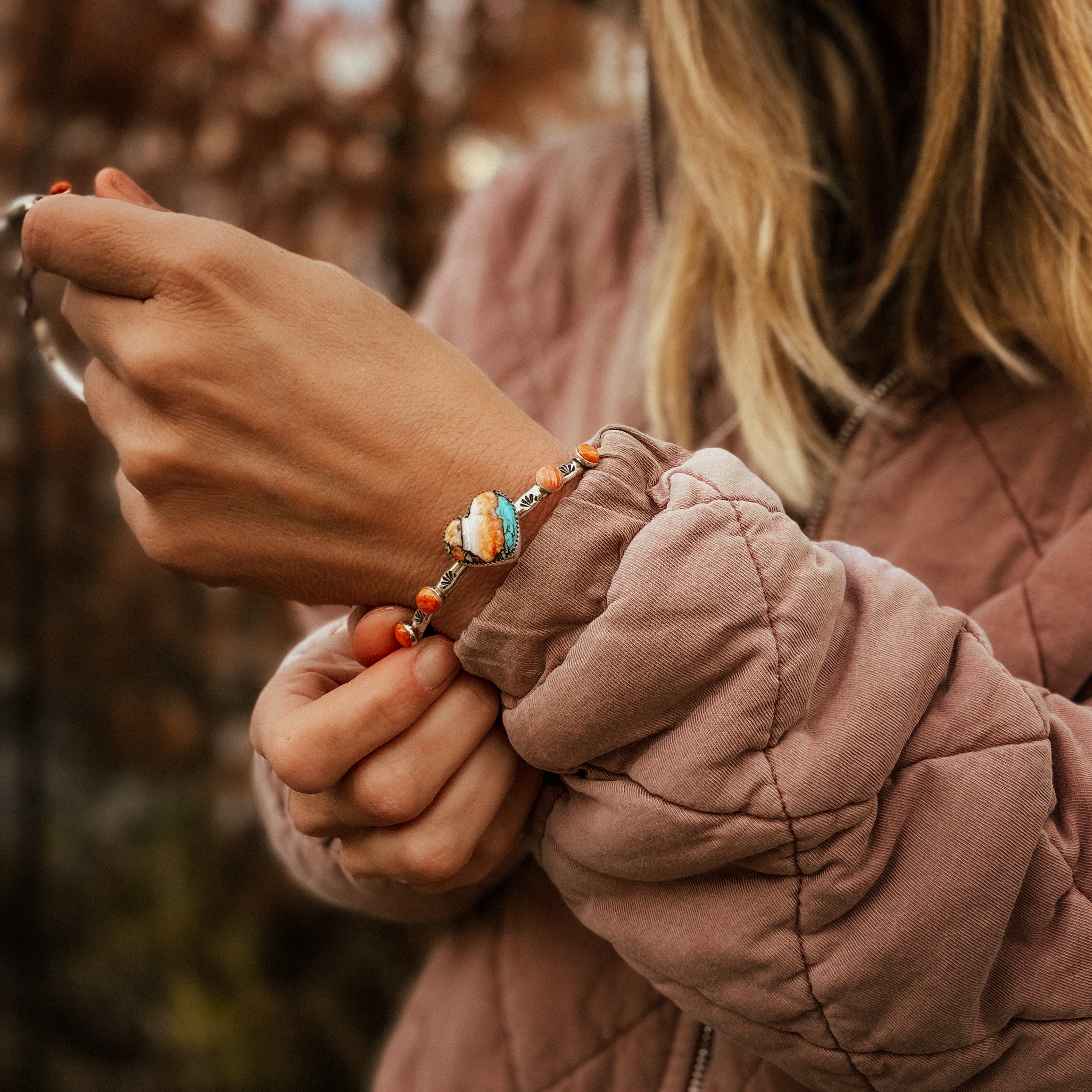 Heart Cuff in Spiny Oyster & Kingman - Golden Road Crafted