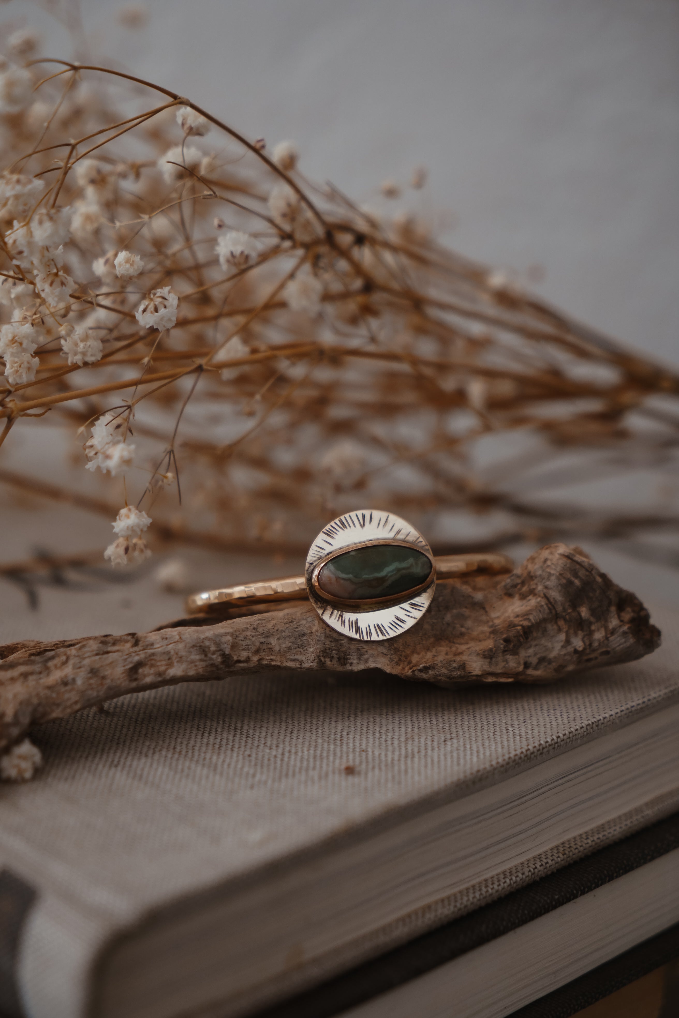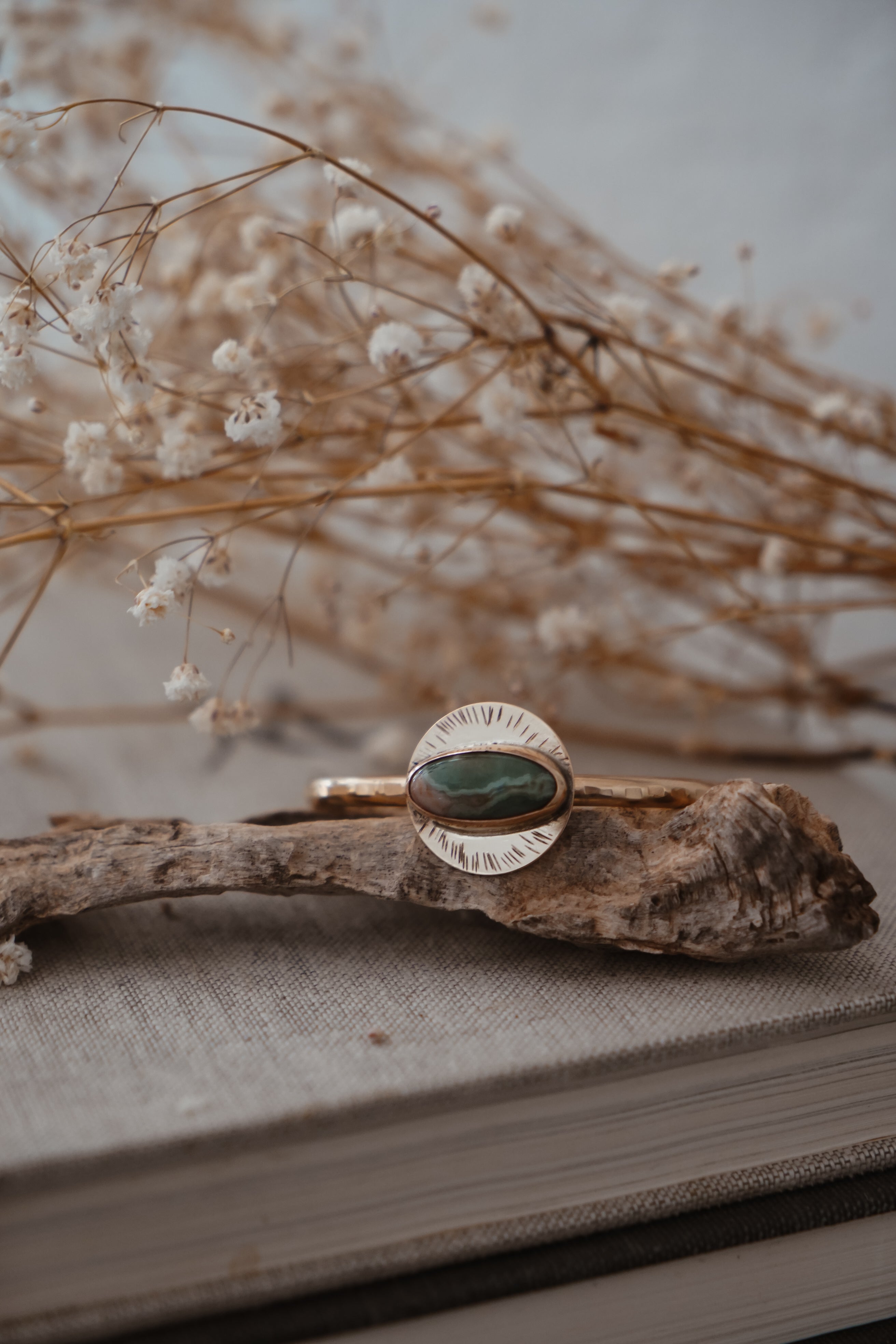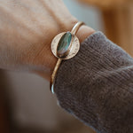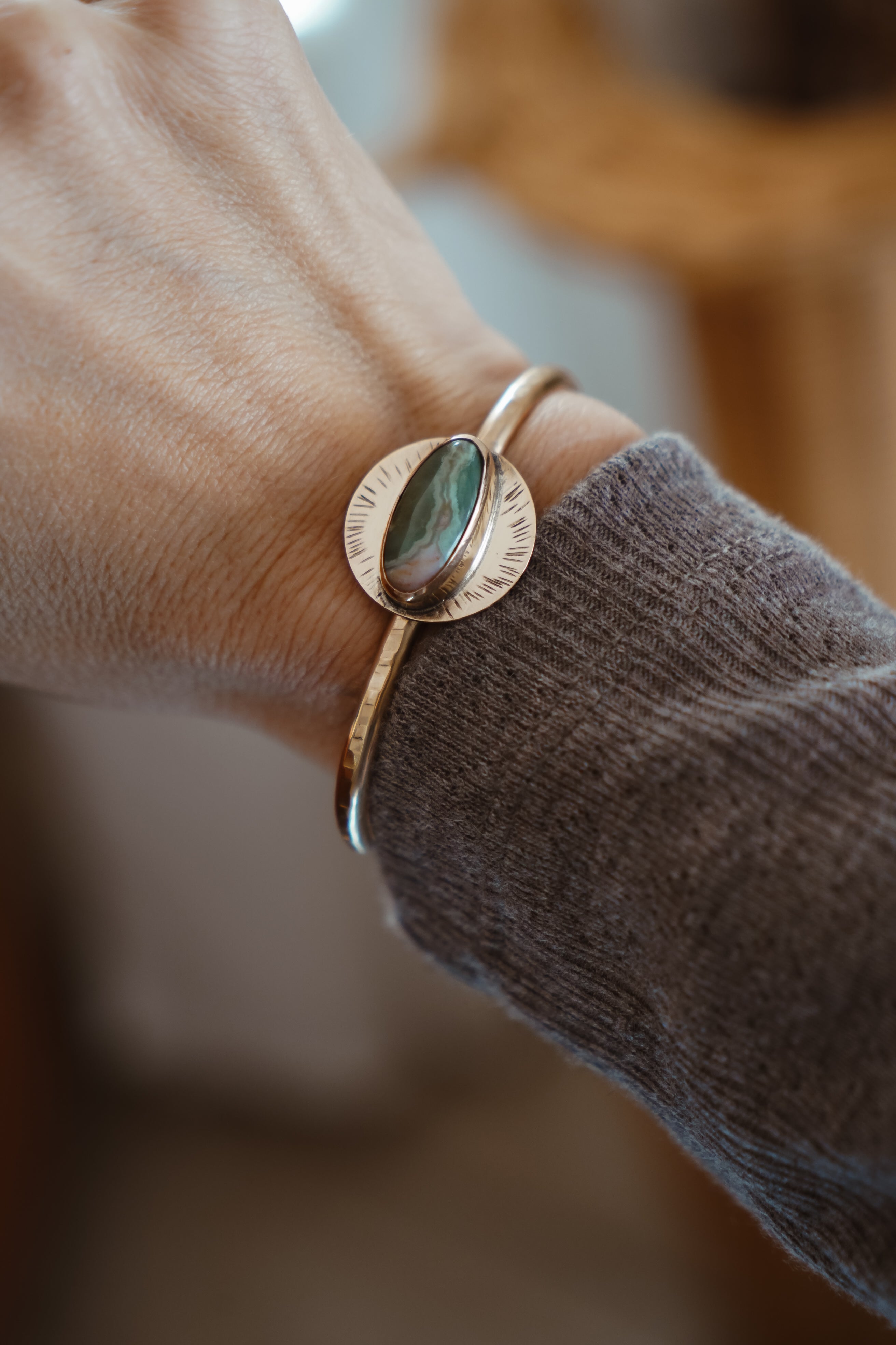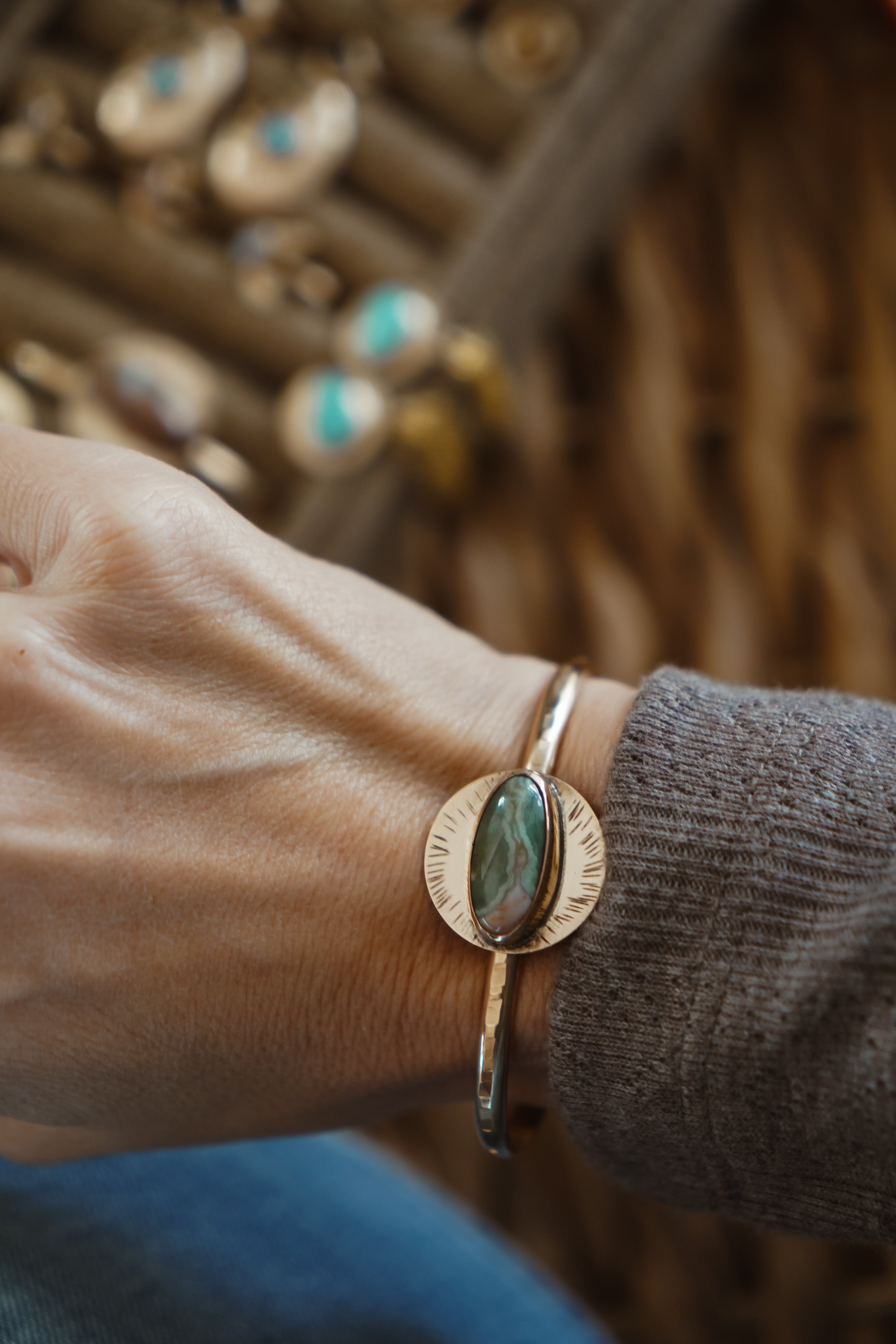 These are the first gold-fill cuffs we've ever made and we couldn't be more excited with how they turned out! The gold with Ocean Jasper combo gives such amazing earthy vibes. We've just been staring at these pictures for days. Can't wait to see who ends up with this one!