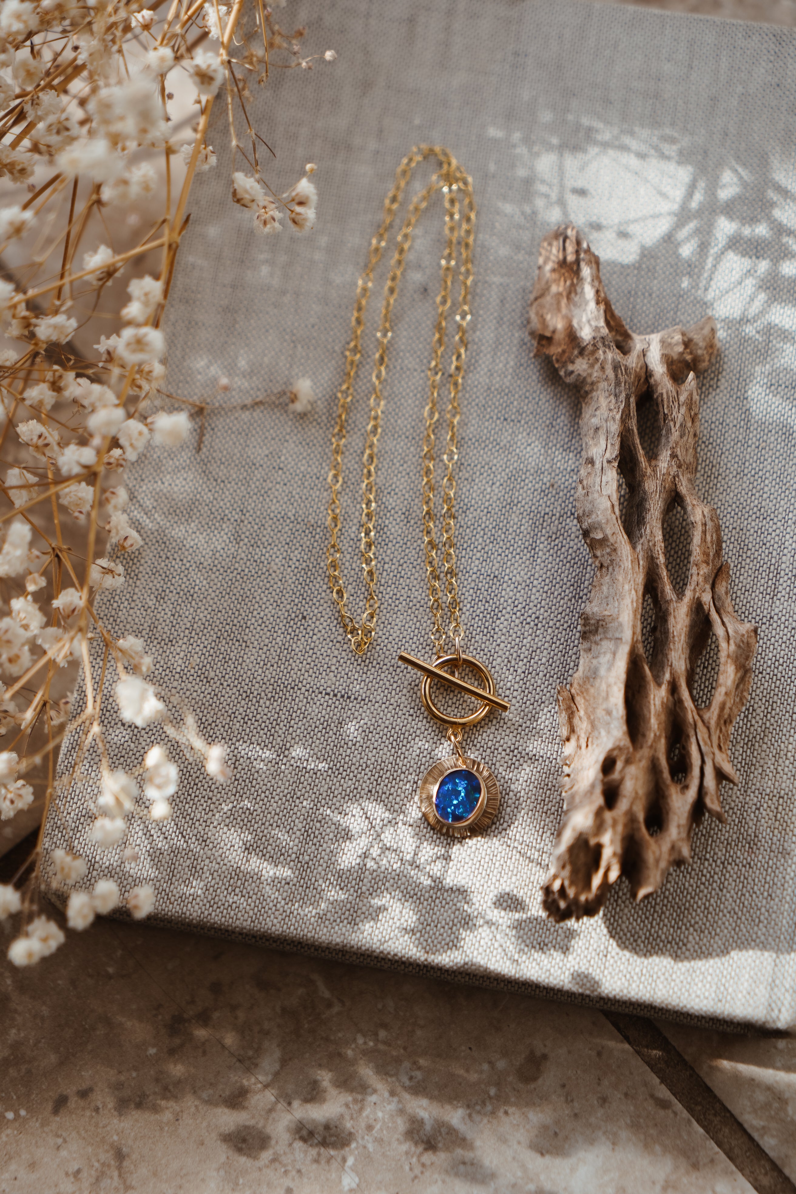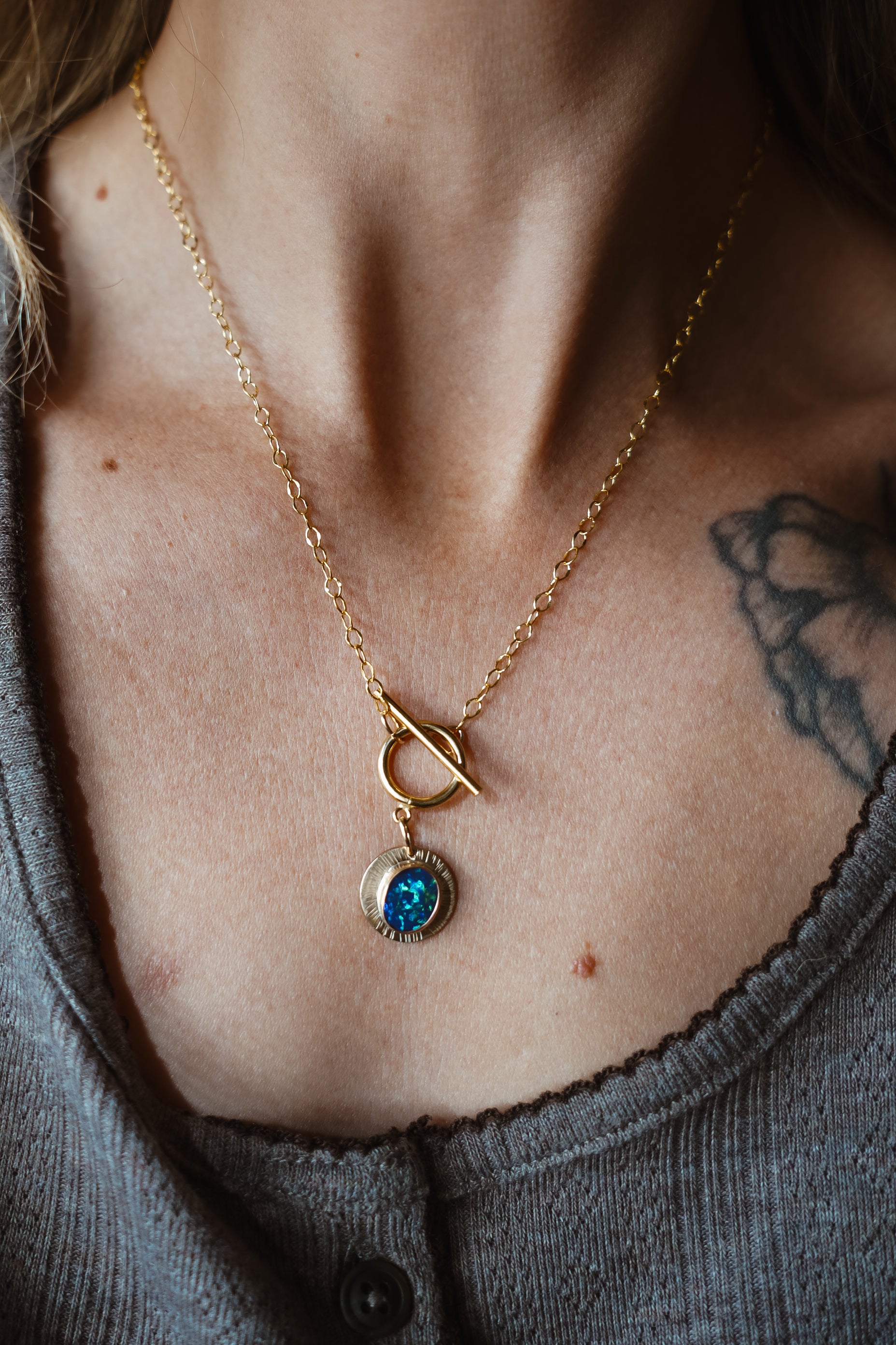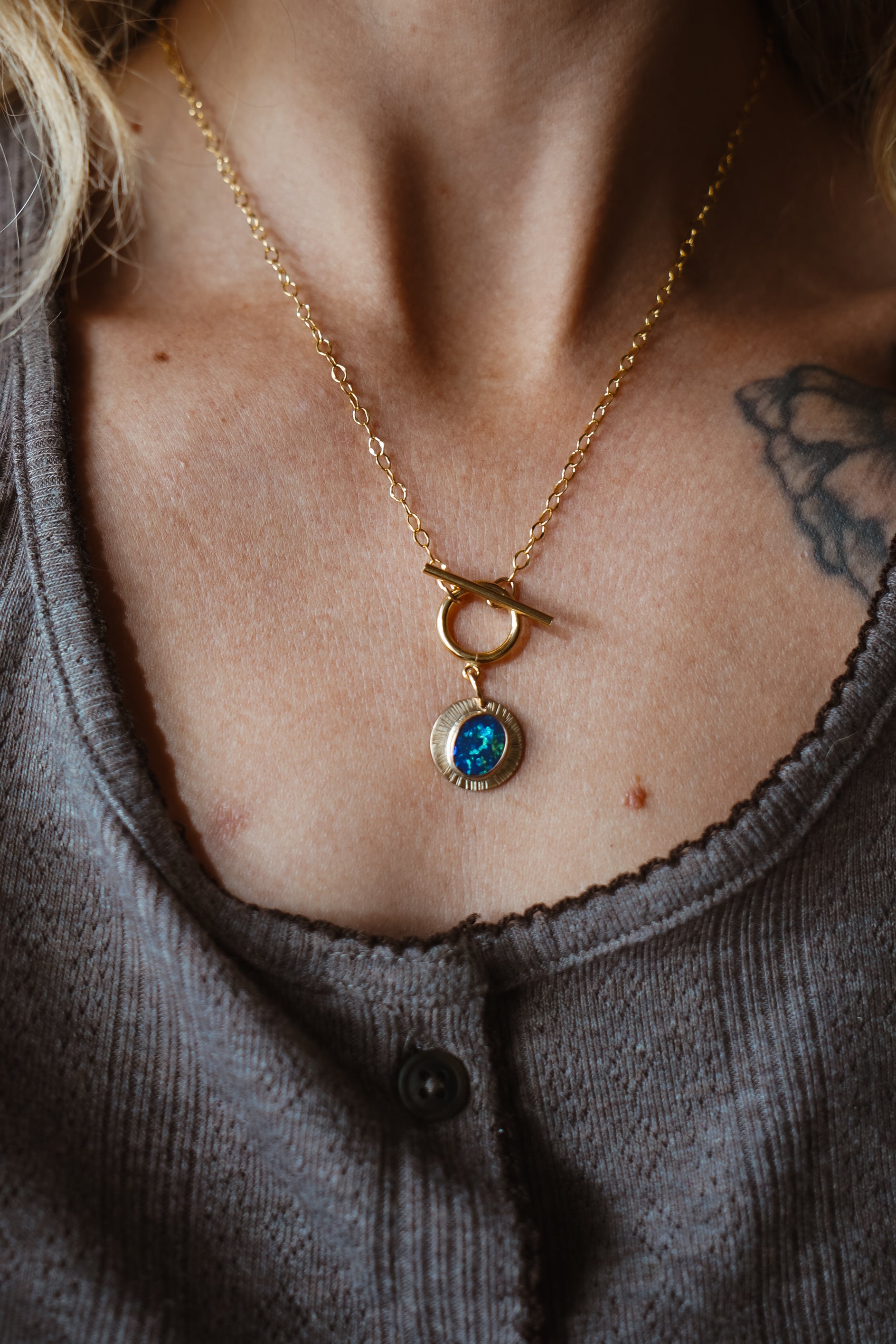 14k Gold-Fill Necklace in Boulder Opal Doublet w/ toggle clasp