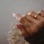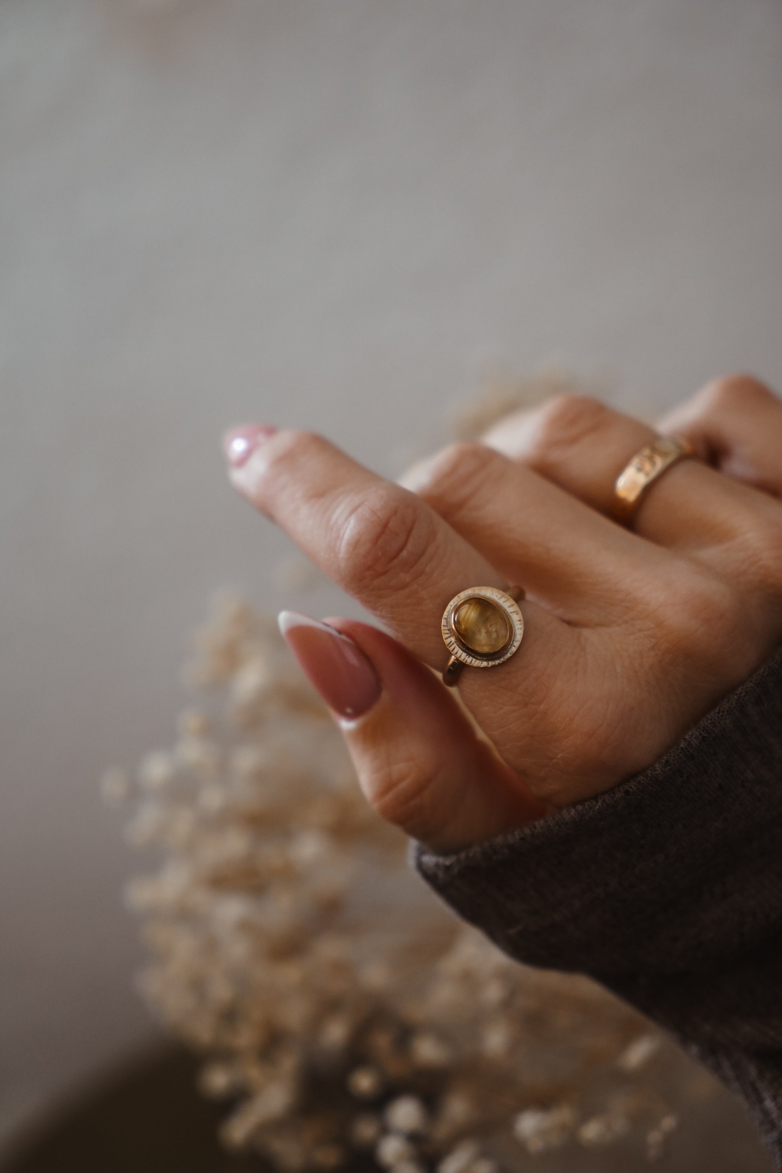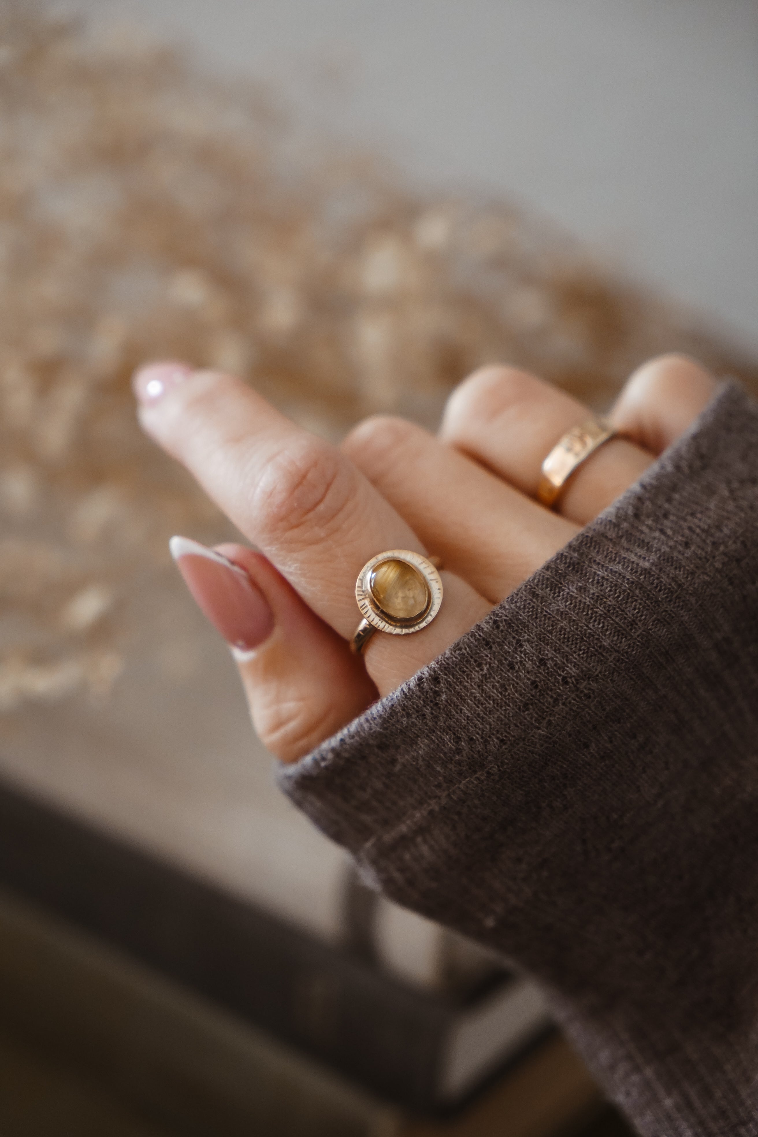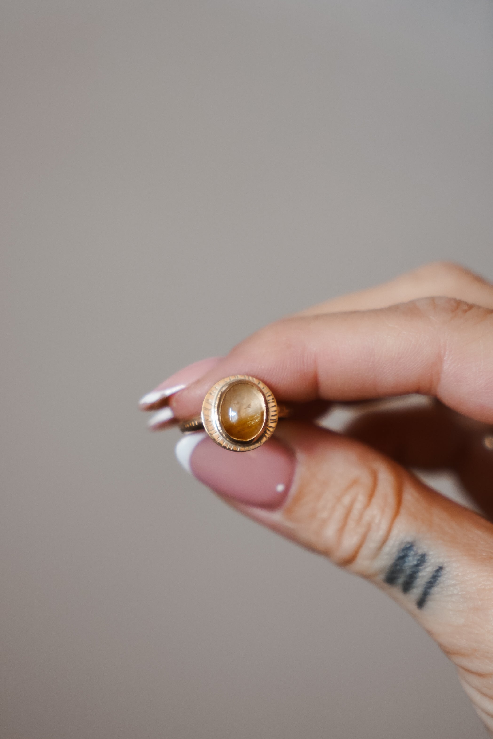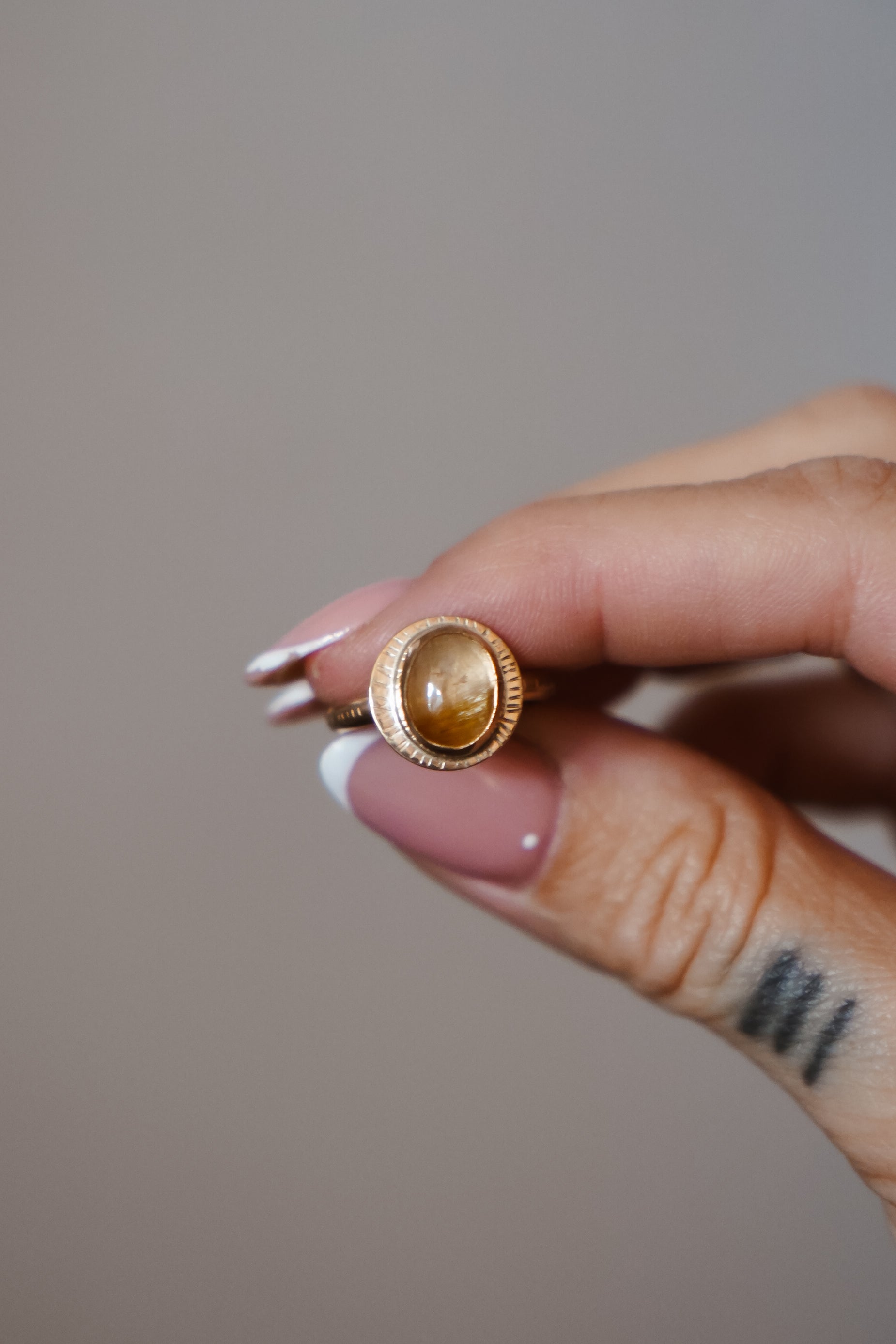 We've loved working with 14k gold-fill in recent collections and were so excited when you guys asked for more! Well, here you go. This dainty 14k gold-fill ring with hand stamped sun rays has us drooling. Add in these gorgeous, translucent Rutilated Quartz stones and this one truly has all the sun vibes!