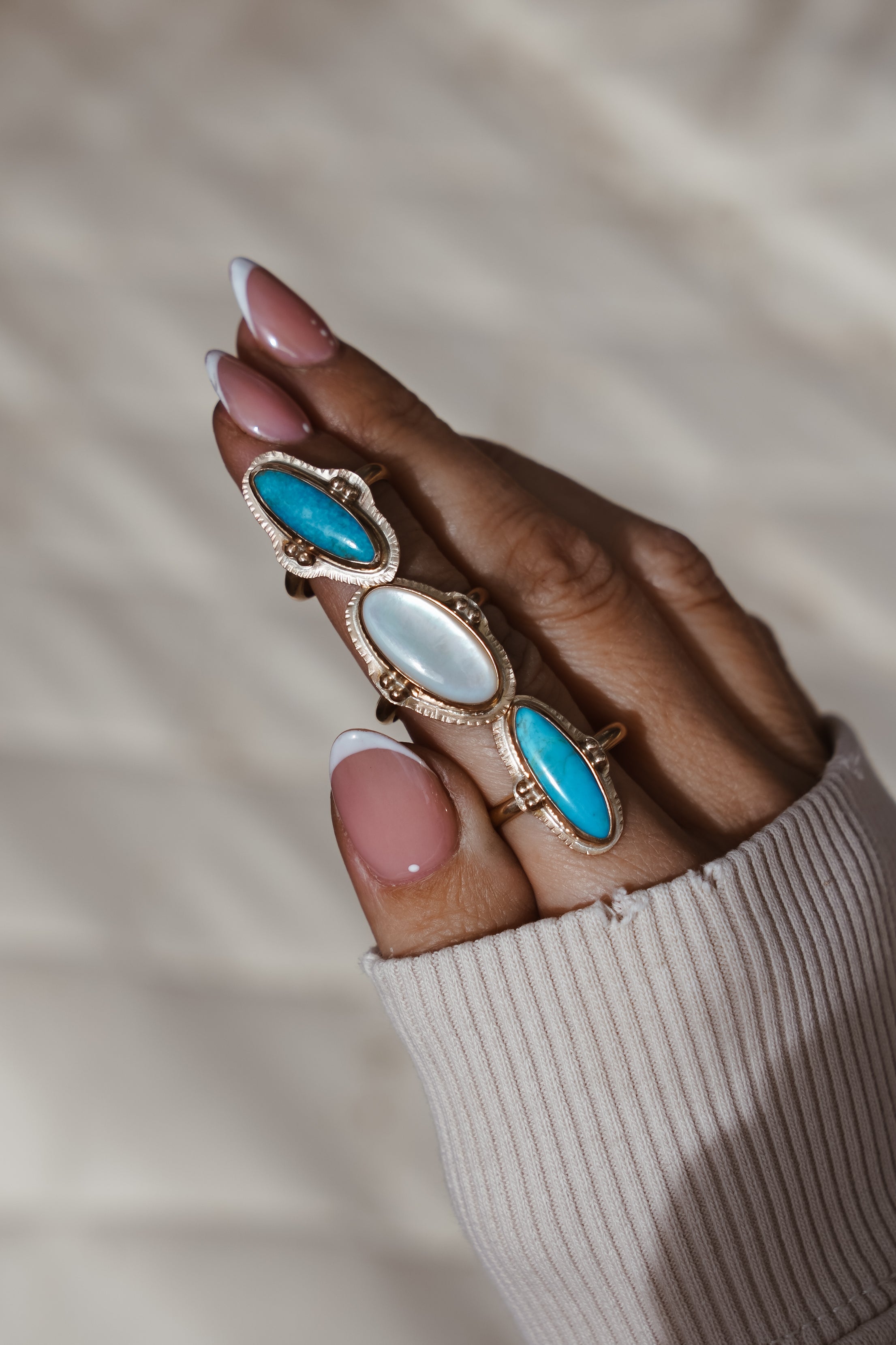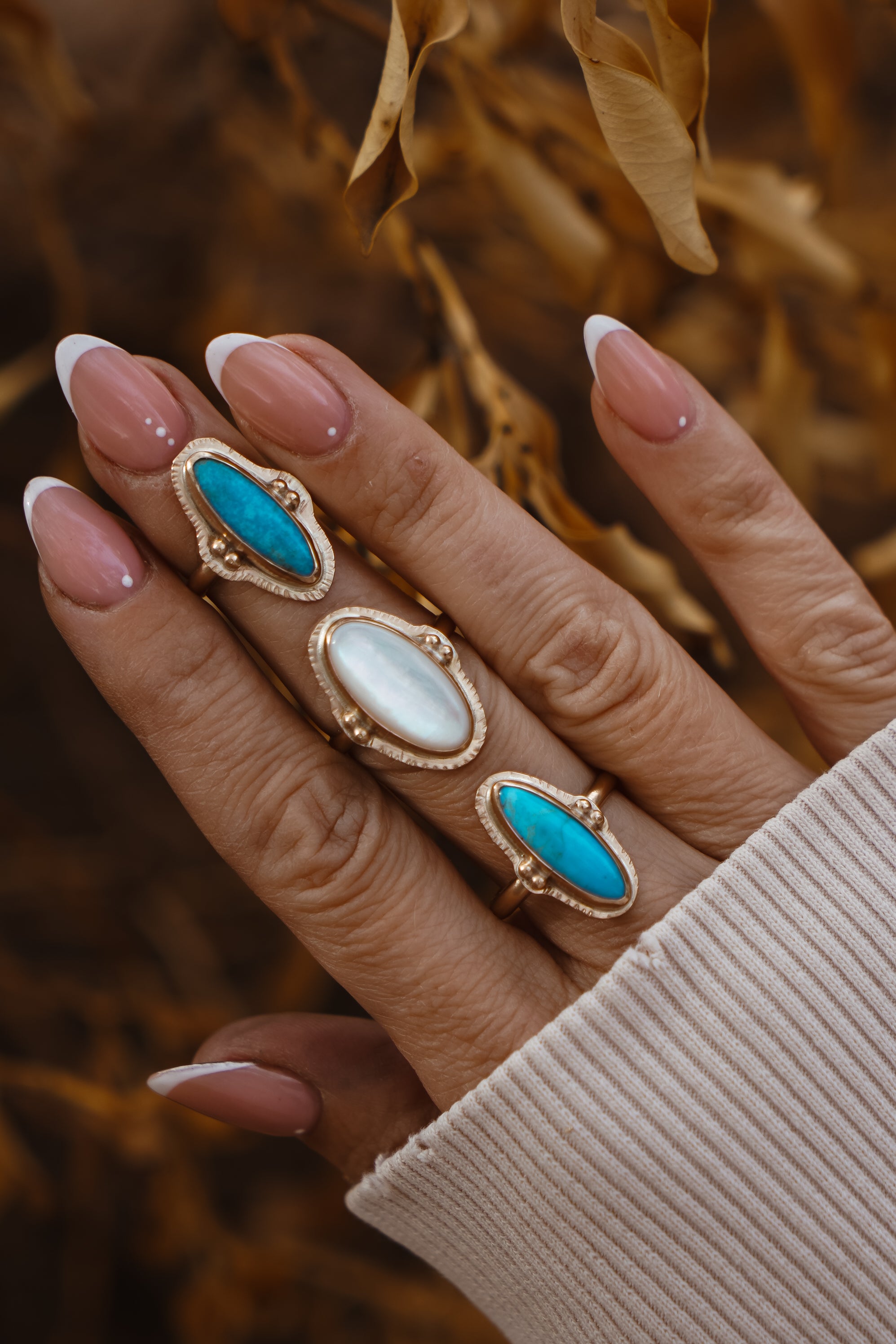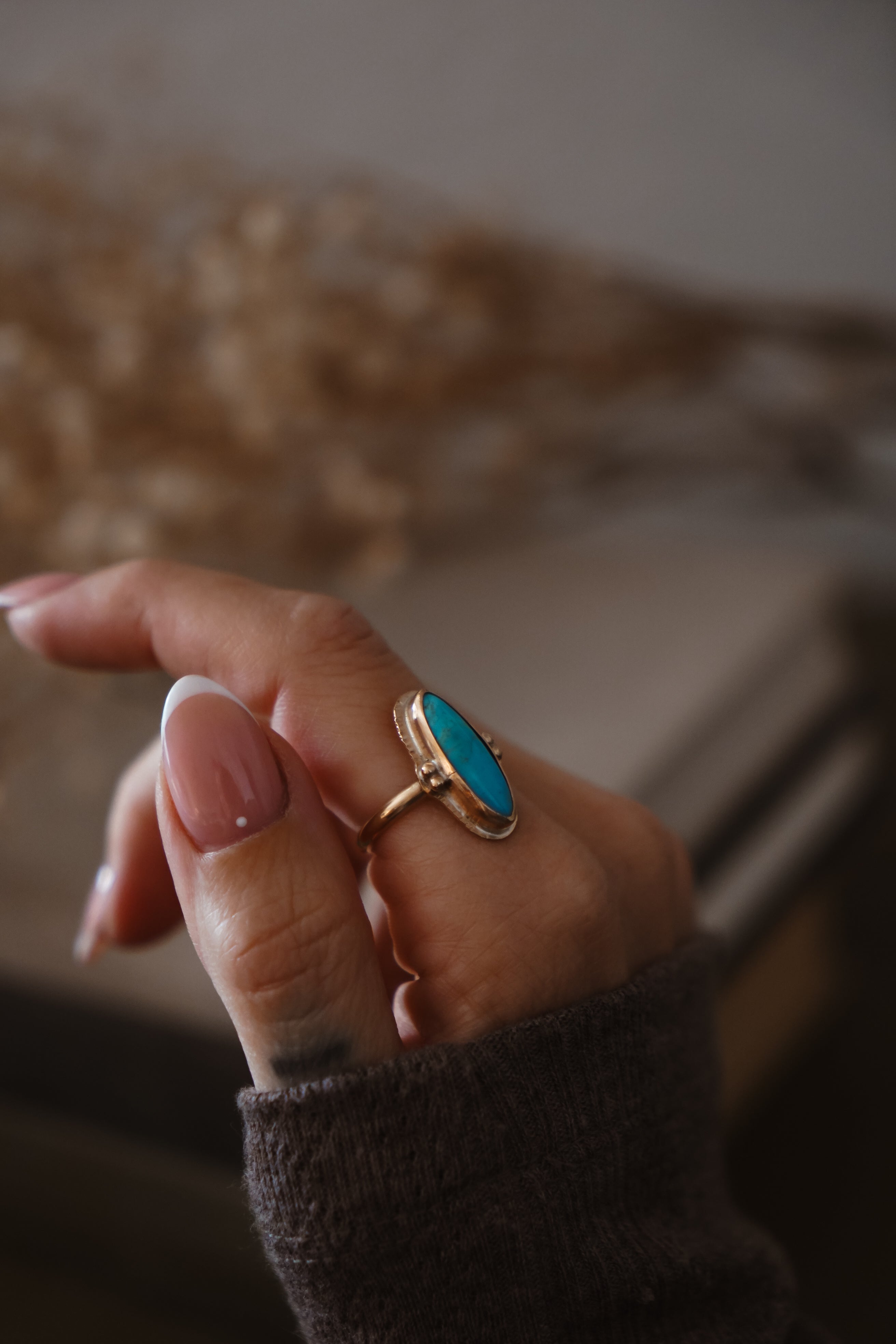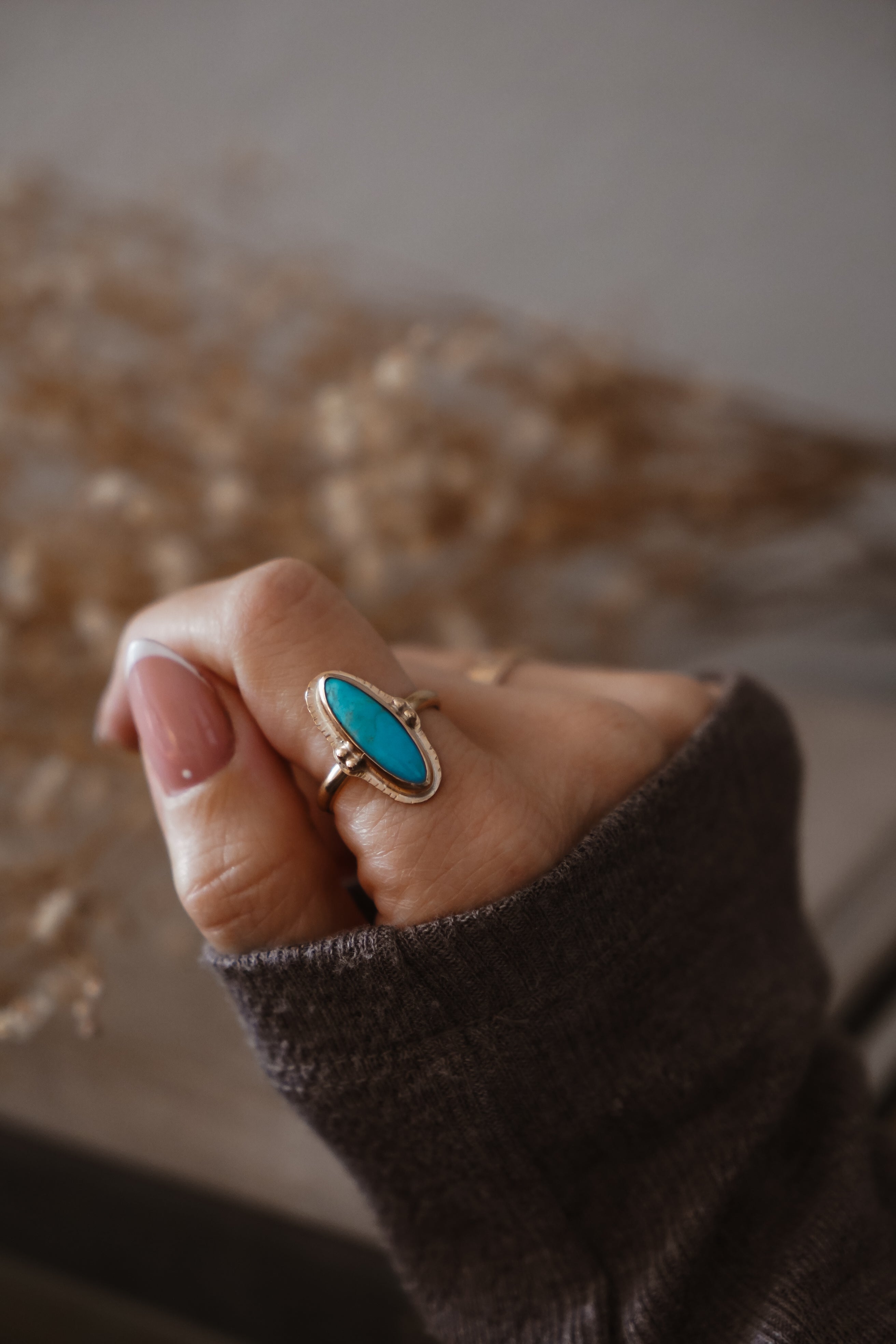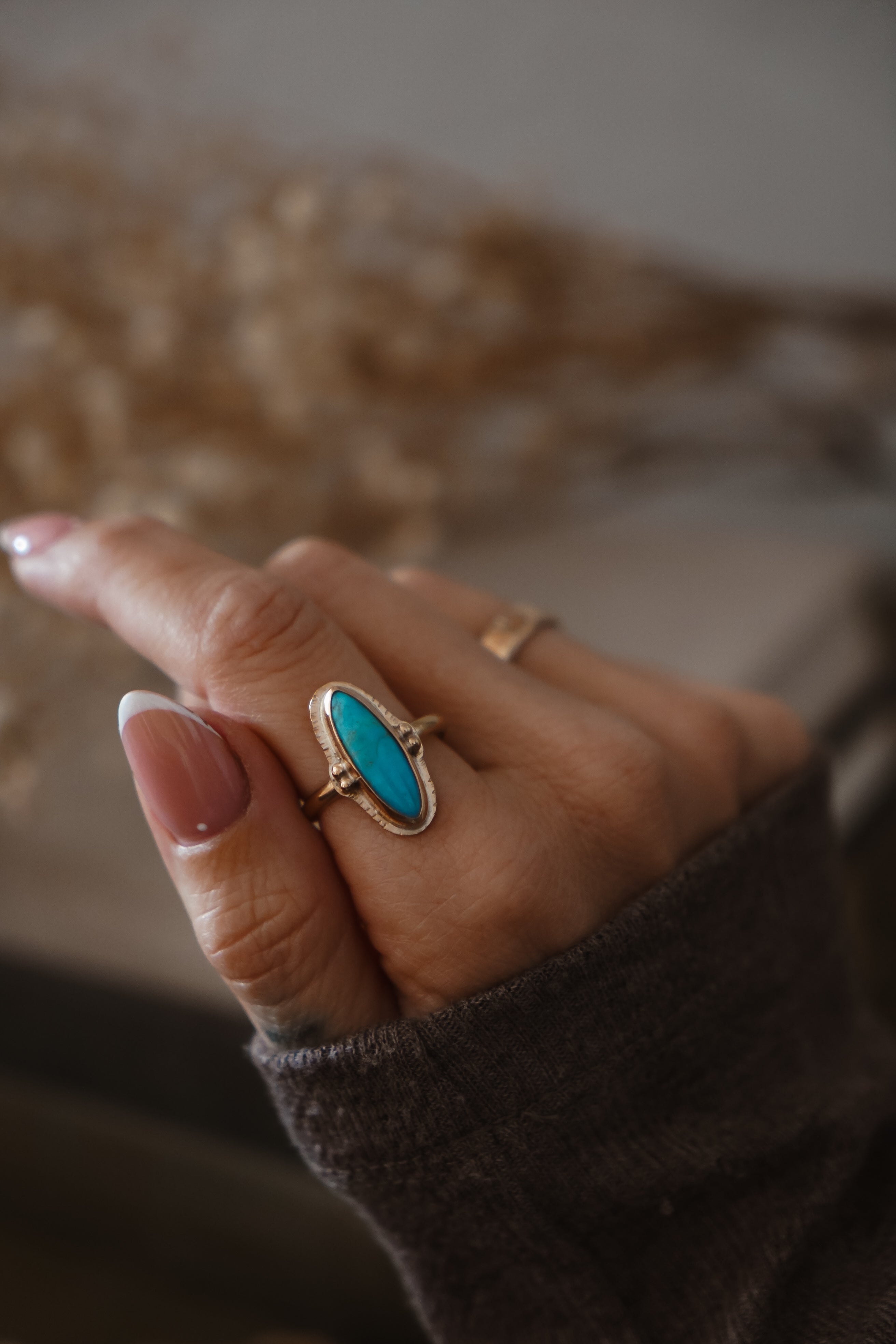 We've loved working with 14k gold-fill in recent collections and were so excited about all the messages we got asking for more! Well, here you go. This lovely 14k gold-fill ring with hand-stamped rays and ball elements has us drooling. There's something so special about the turquoise and gold combo and we can't wait to see who ends up with this one!