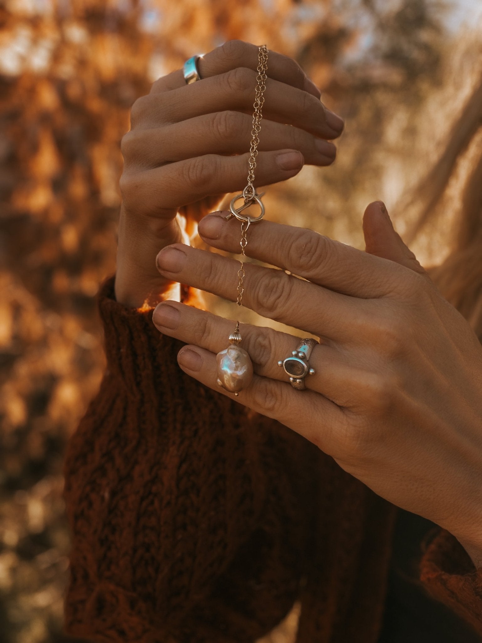 This beauty would pair great with our Not Your Mama's Pearl Ring and these Dew Drop Ear Threaders.