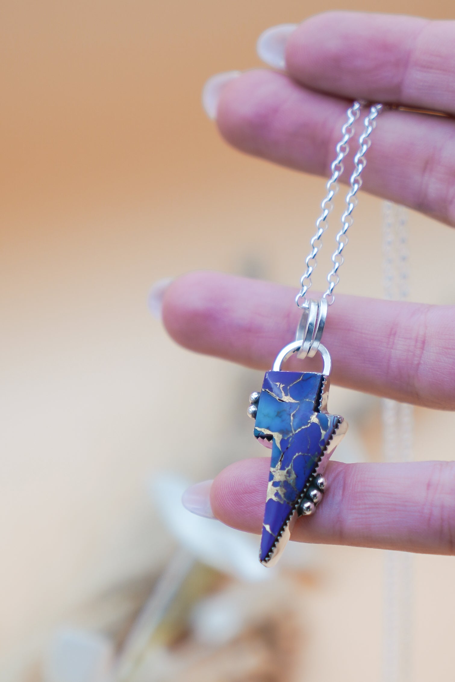 Bolts are back! We're in love with the way this bolt pendant design turned out. We've held onto these gorgeous bolt-shaped stones for a while and they're absolutely perfect for this piece.