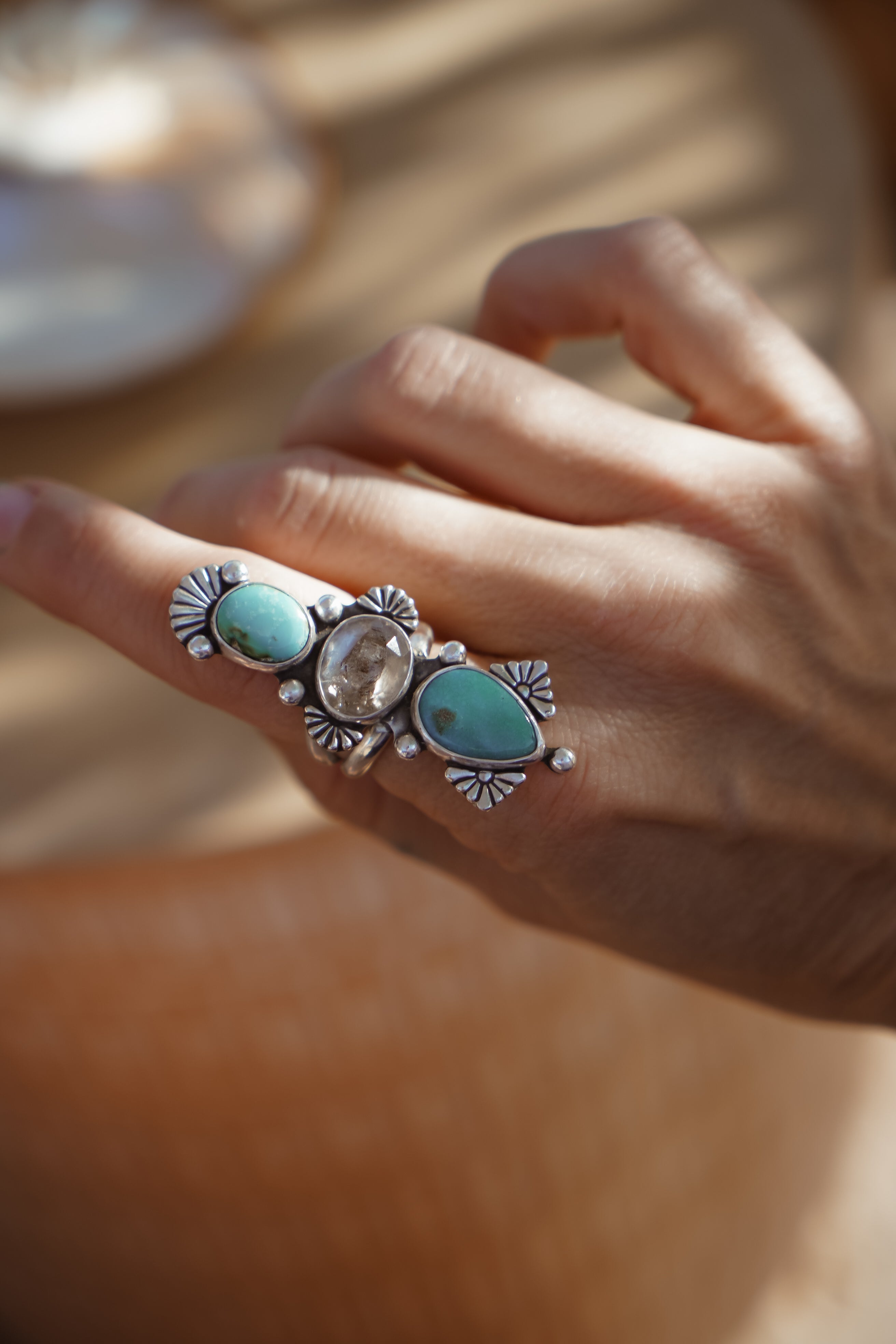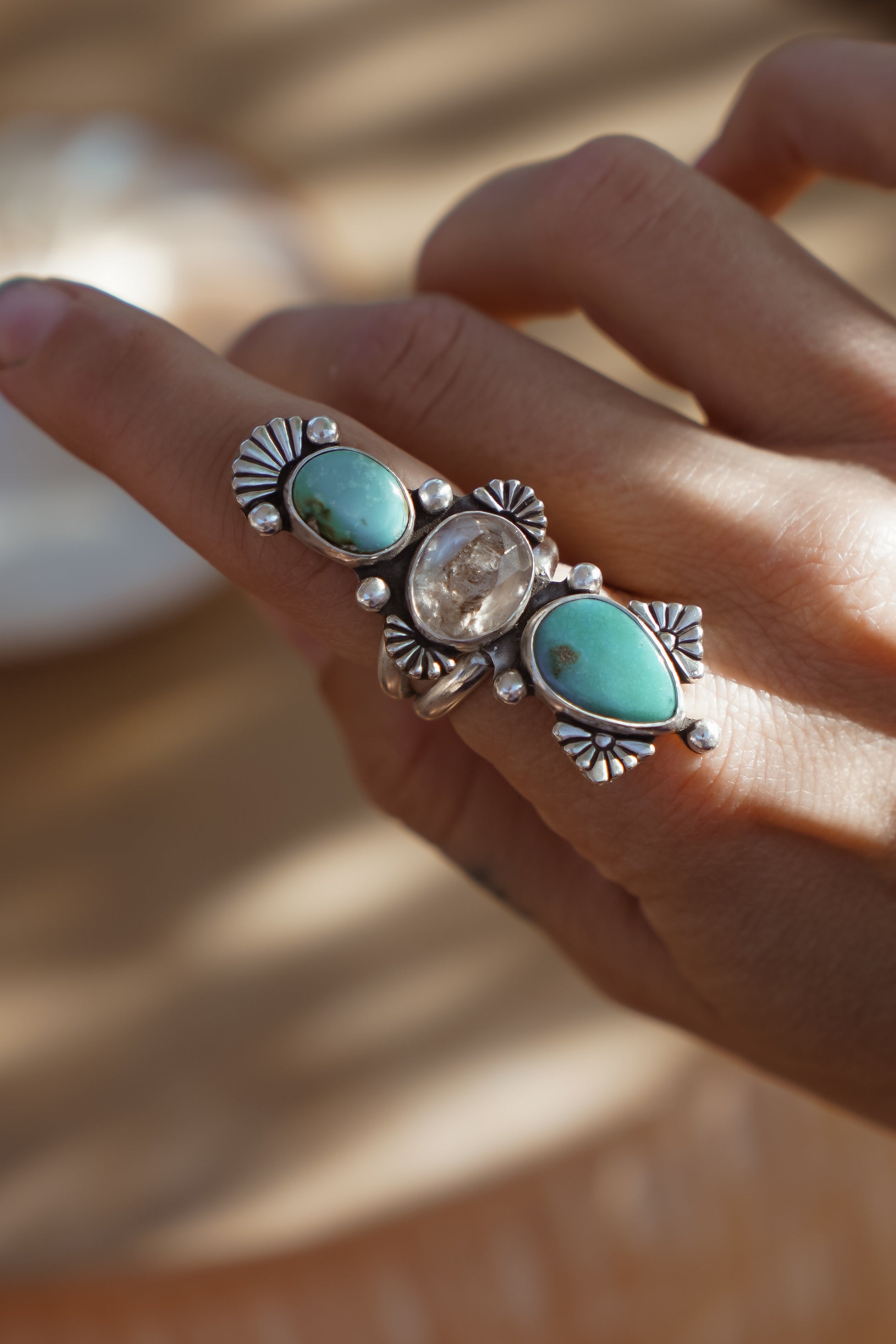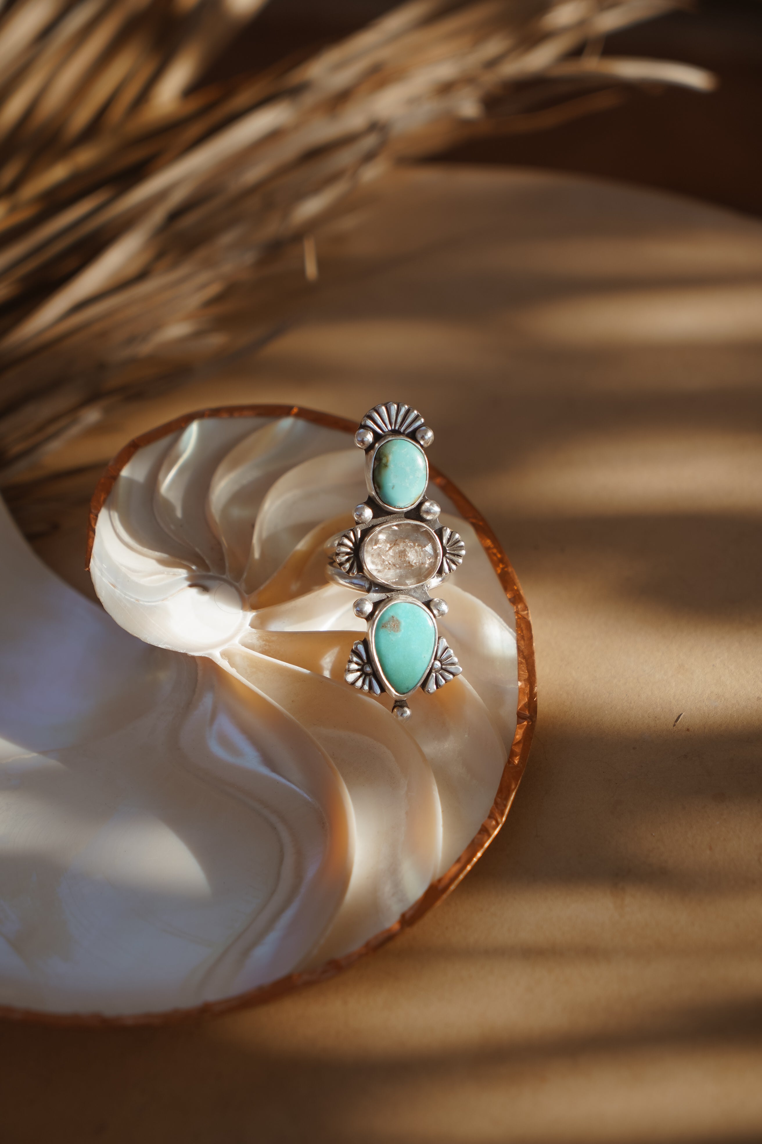 Cairn Ring in Tyrone Turquoise + Herkimer Diamond (Size 7)