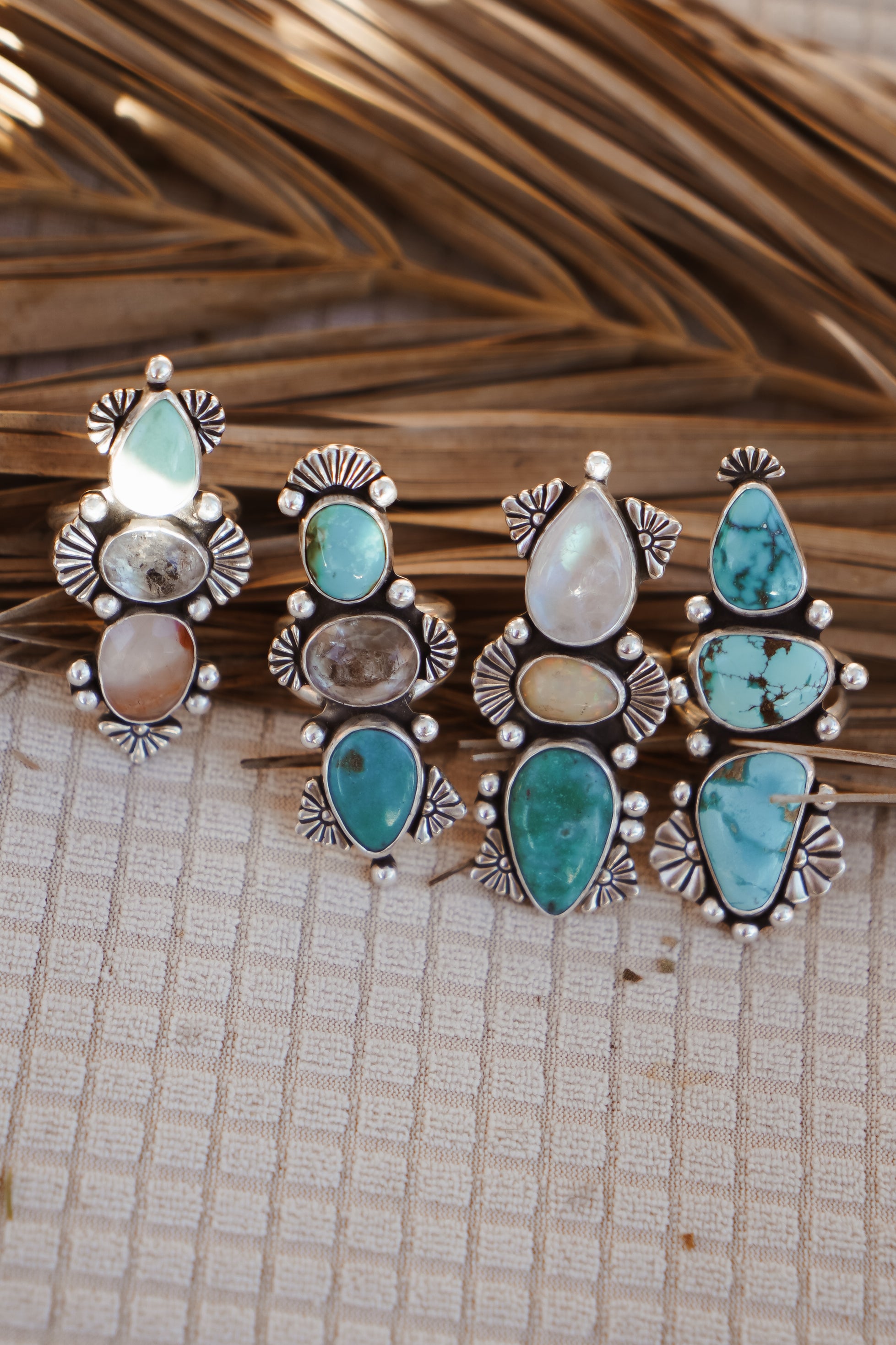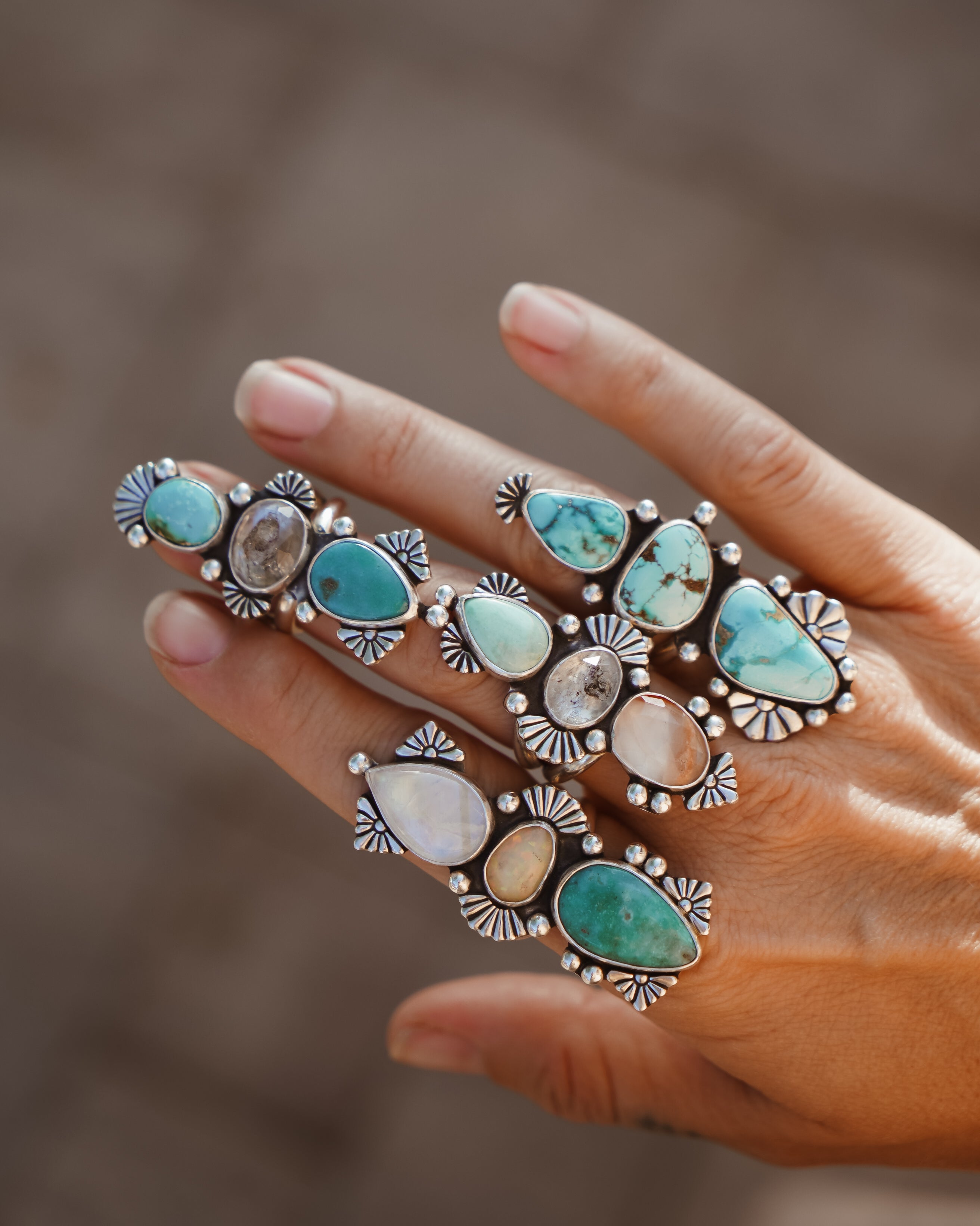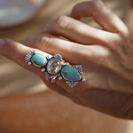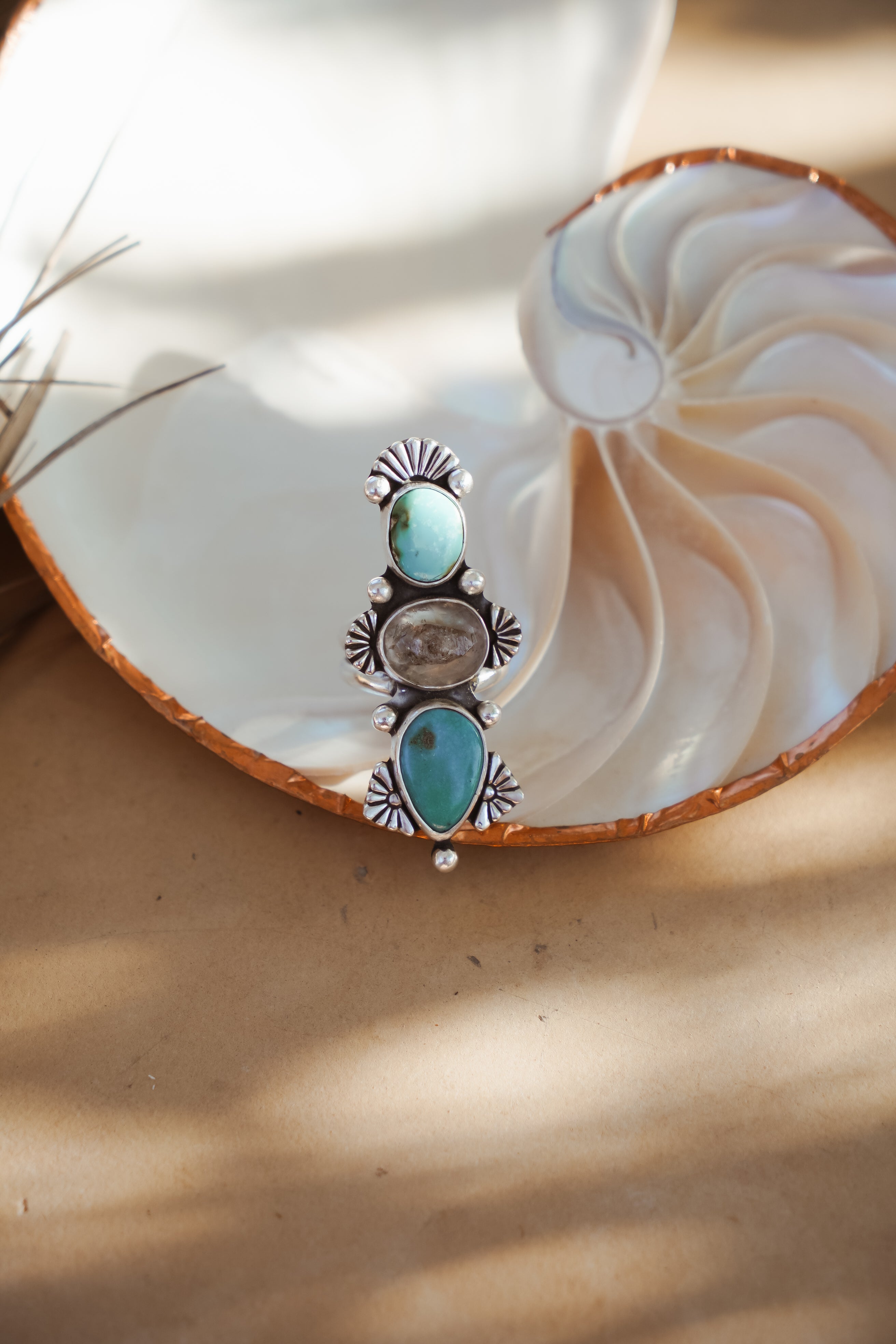 Cairn Ring in Tyrone Turquoise + Herkimer Diamond (Size 7)