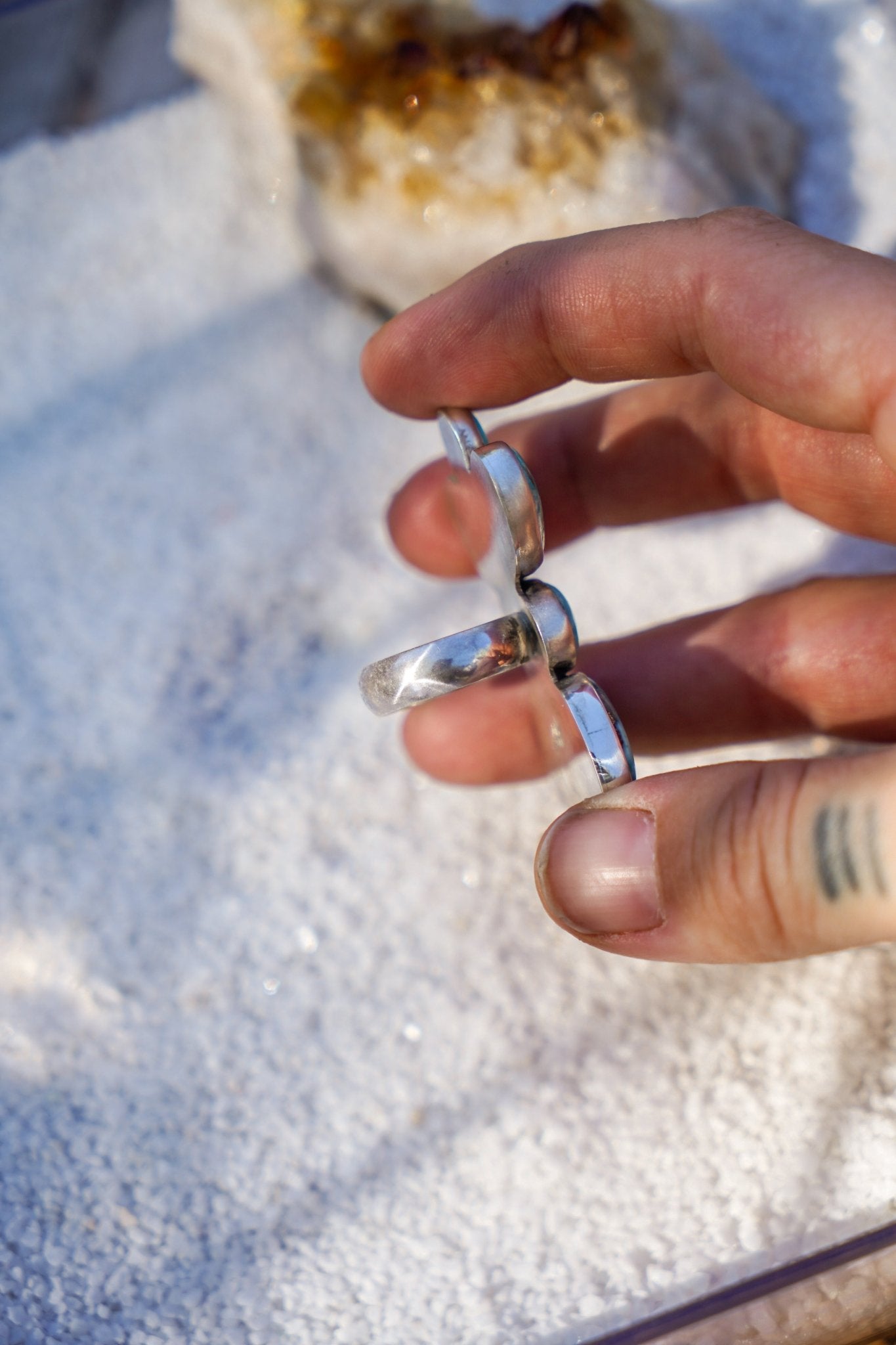 New ring design! Look at these beautiful Whitewater Turquoise stones. It felt like we hadn't made a big cluster ring in a while and we went all out with this one. We love the whole thing from the butterfly-shape to the simple band!