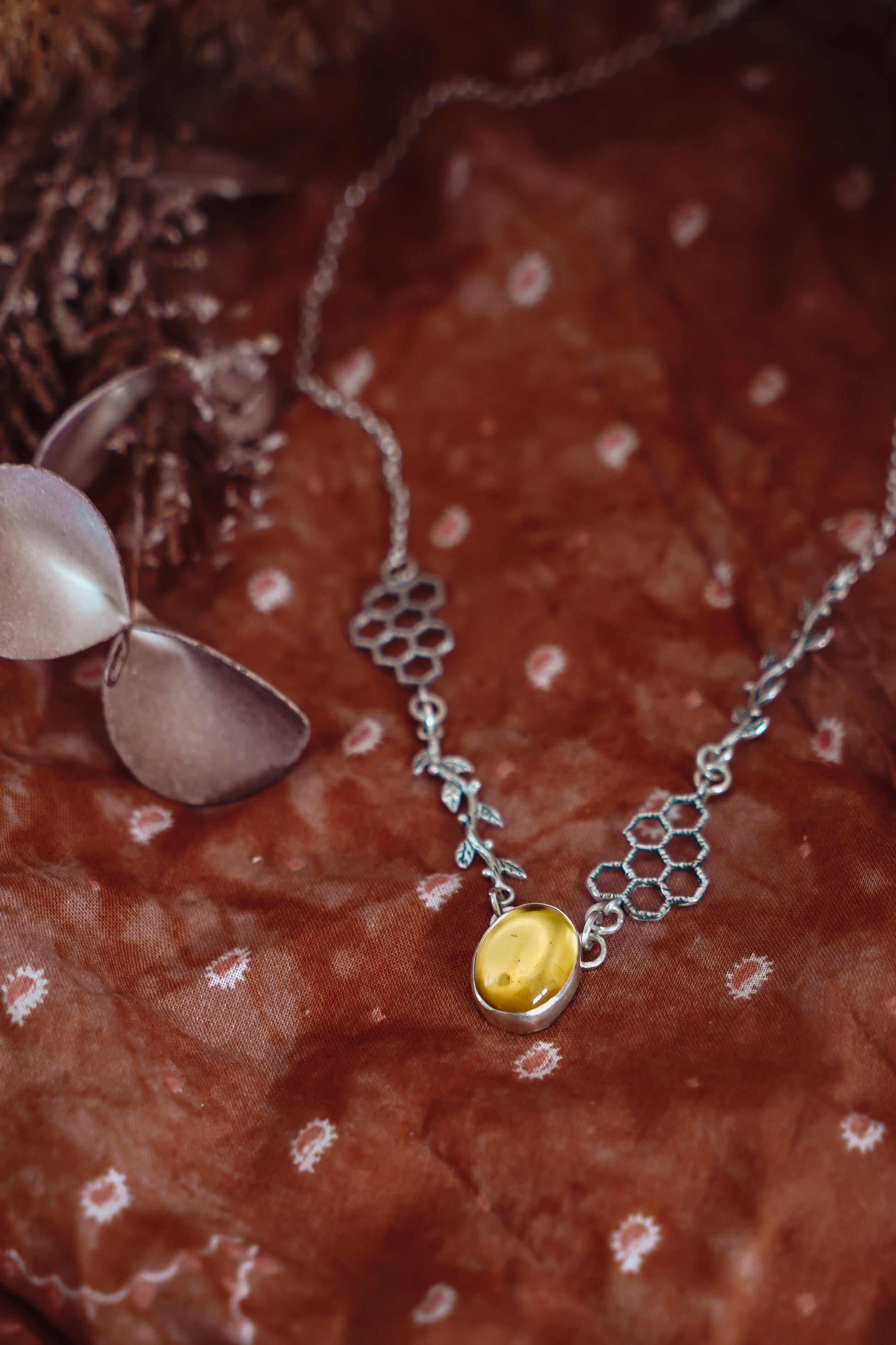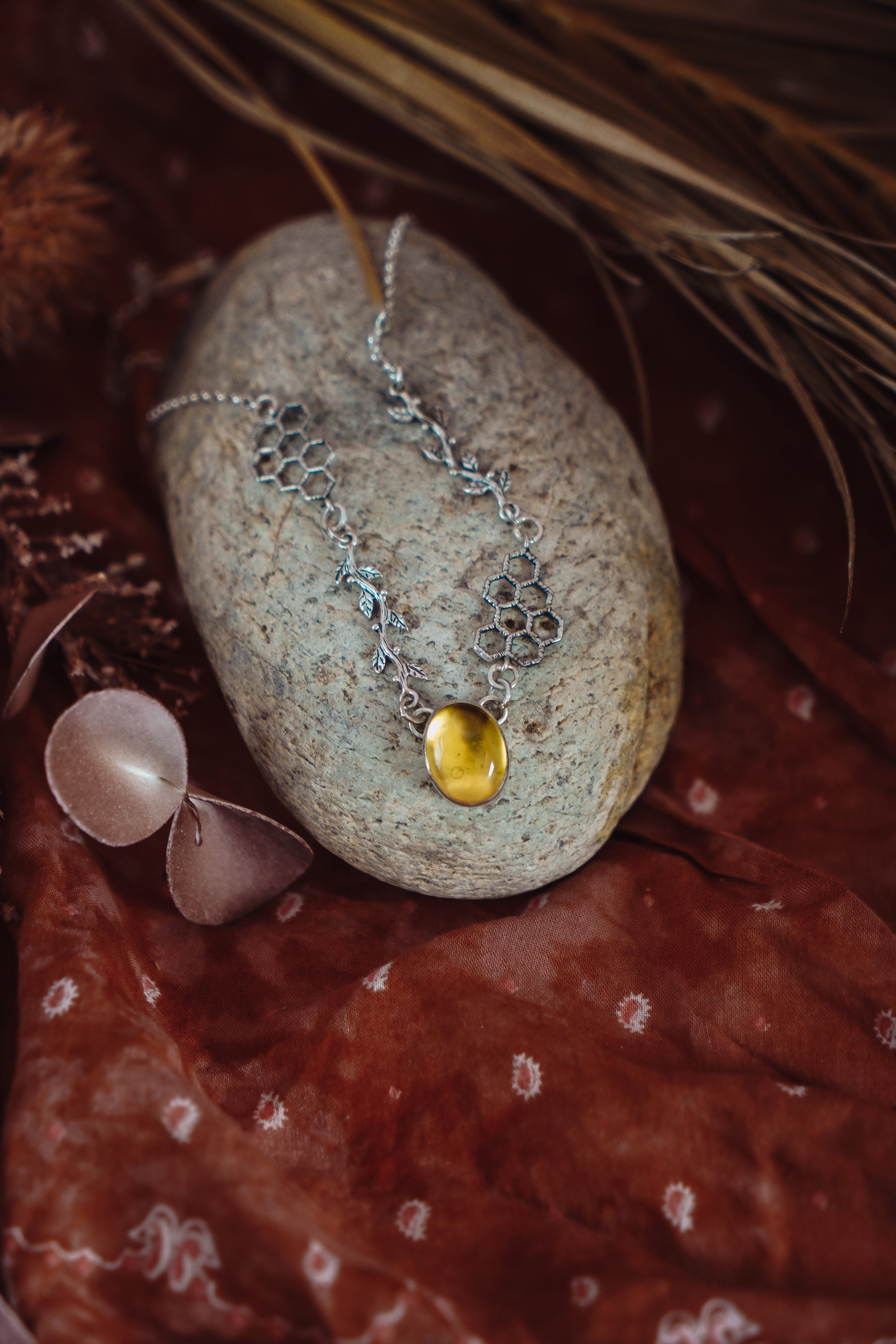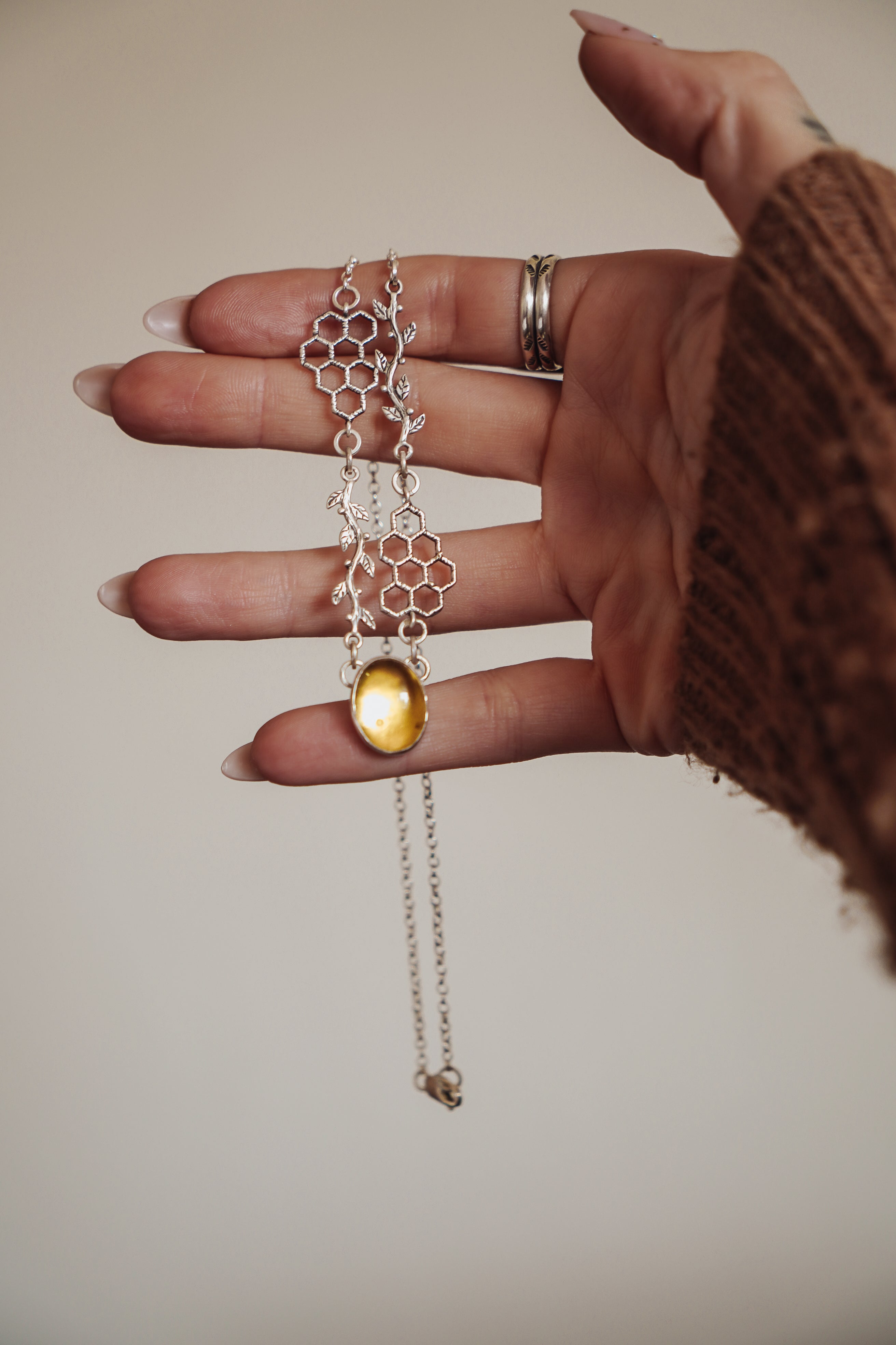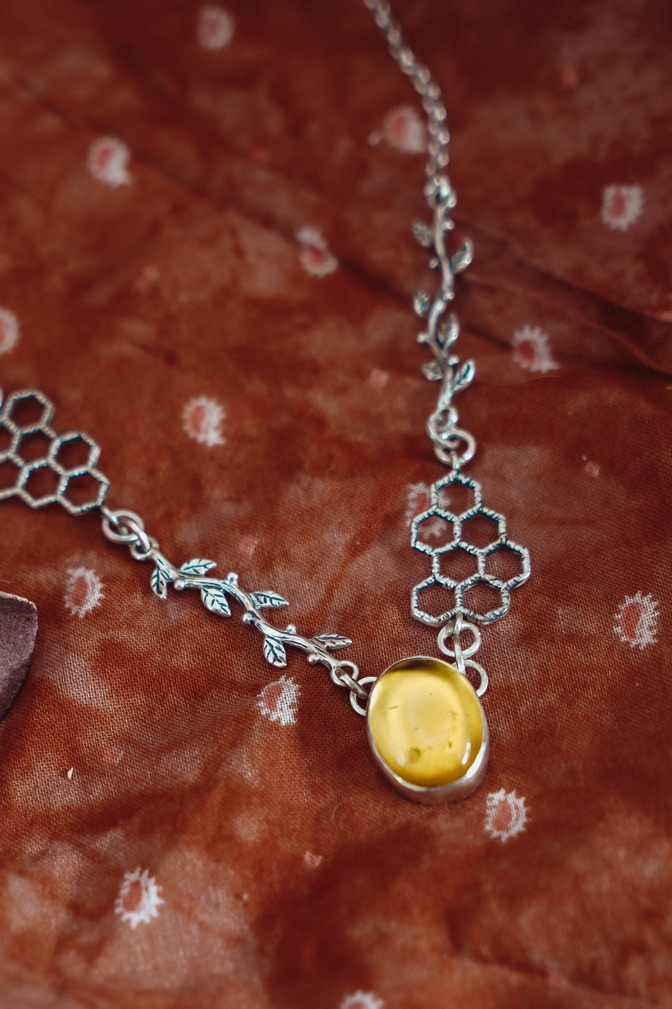 We've been having fun incorporating more nature-inspired elements into our designs. Who else loves spring, pollinators, and honey? This one is for you! A little bit of spring sunshine to wear around your neck.