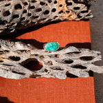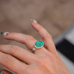 We like to let a stone this vibrant do all the talking! We paired it with a high-polished plain bezel and hand-stamped band. This makes a great ring for everyday wear. It carries a lot of POP!