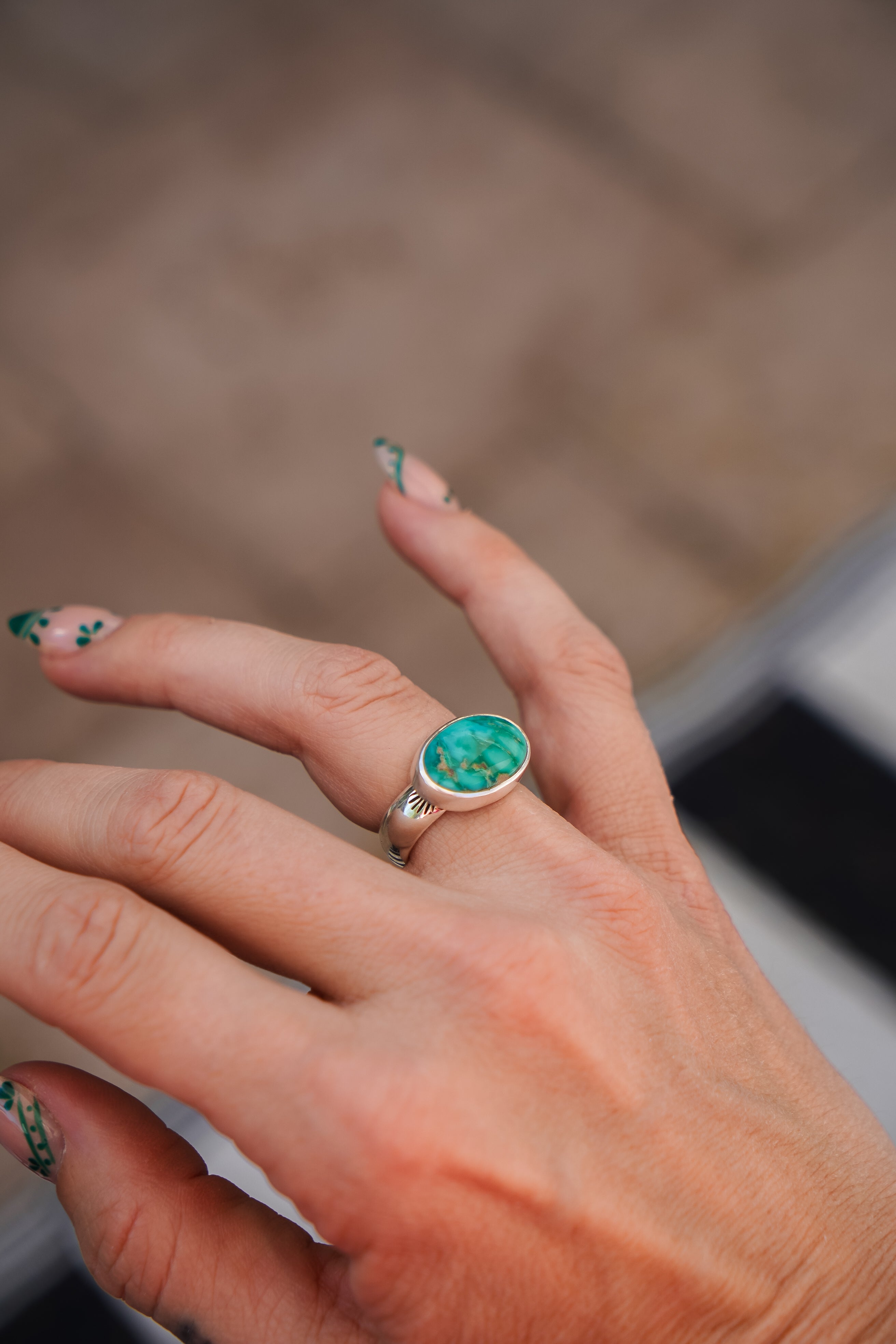 Horizontal Ring in Emerald Valley Turquoise (Size 7)