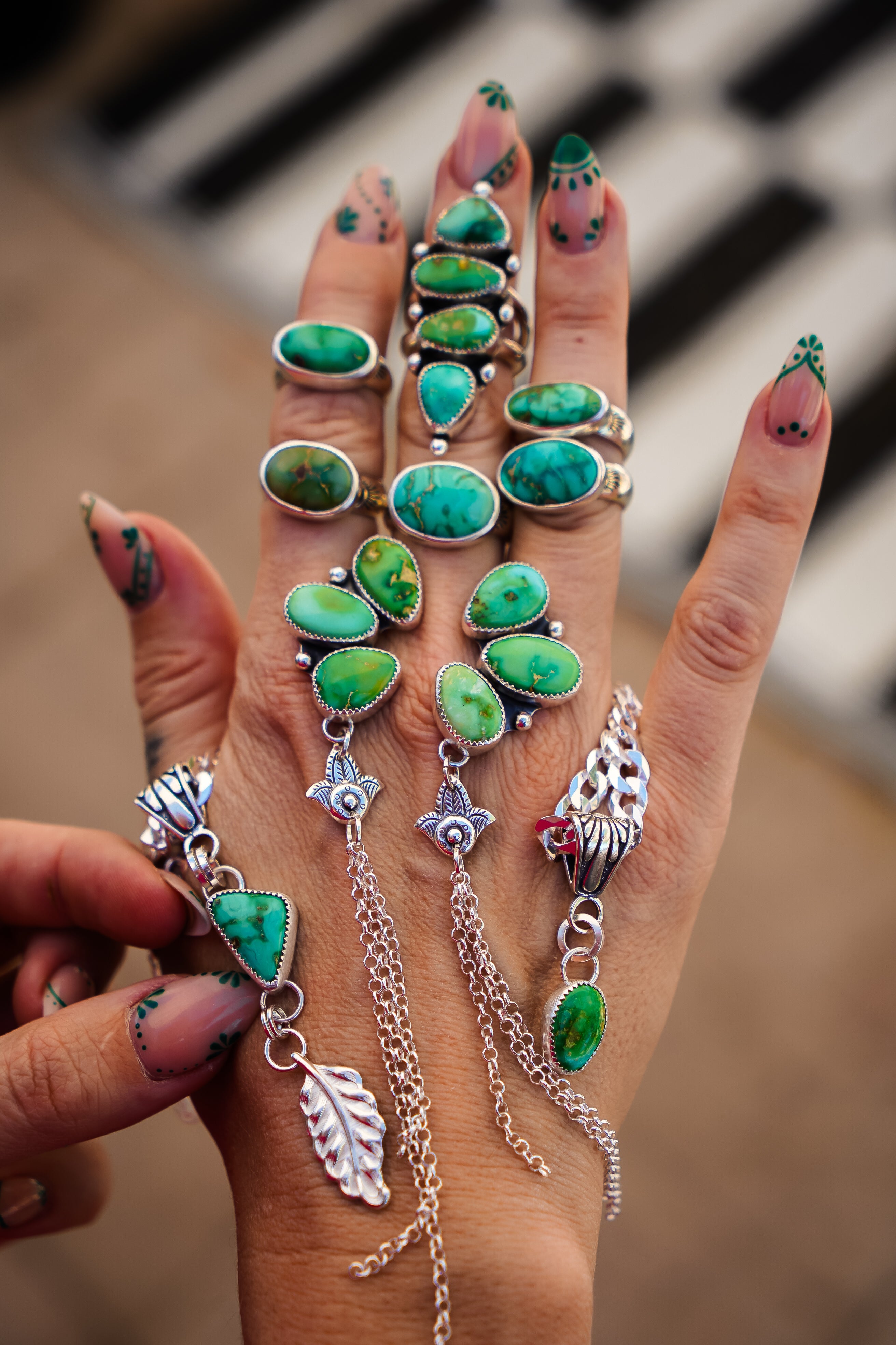 Dangle Cluster Earrings in Emerald Valley + Verde Valley Turquoise