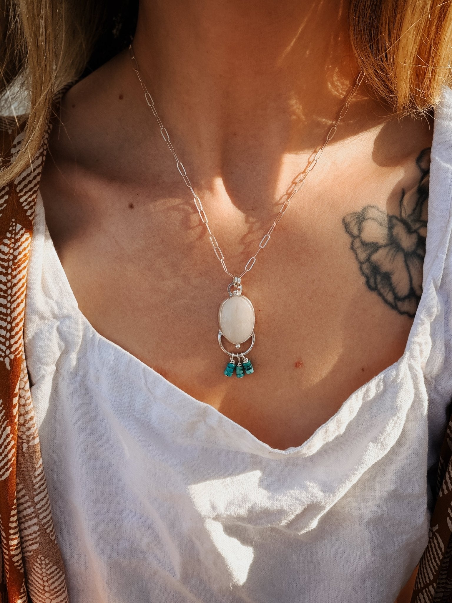 Morganite + Turquoise Pendant on Paperclip Chain - Golden Road Crafted
