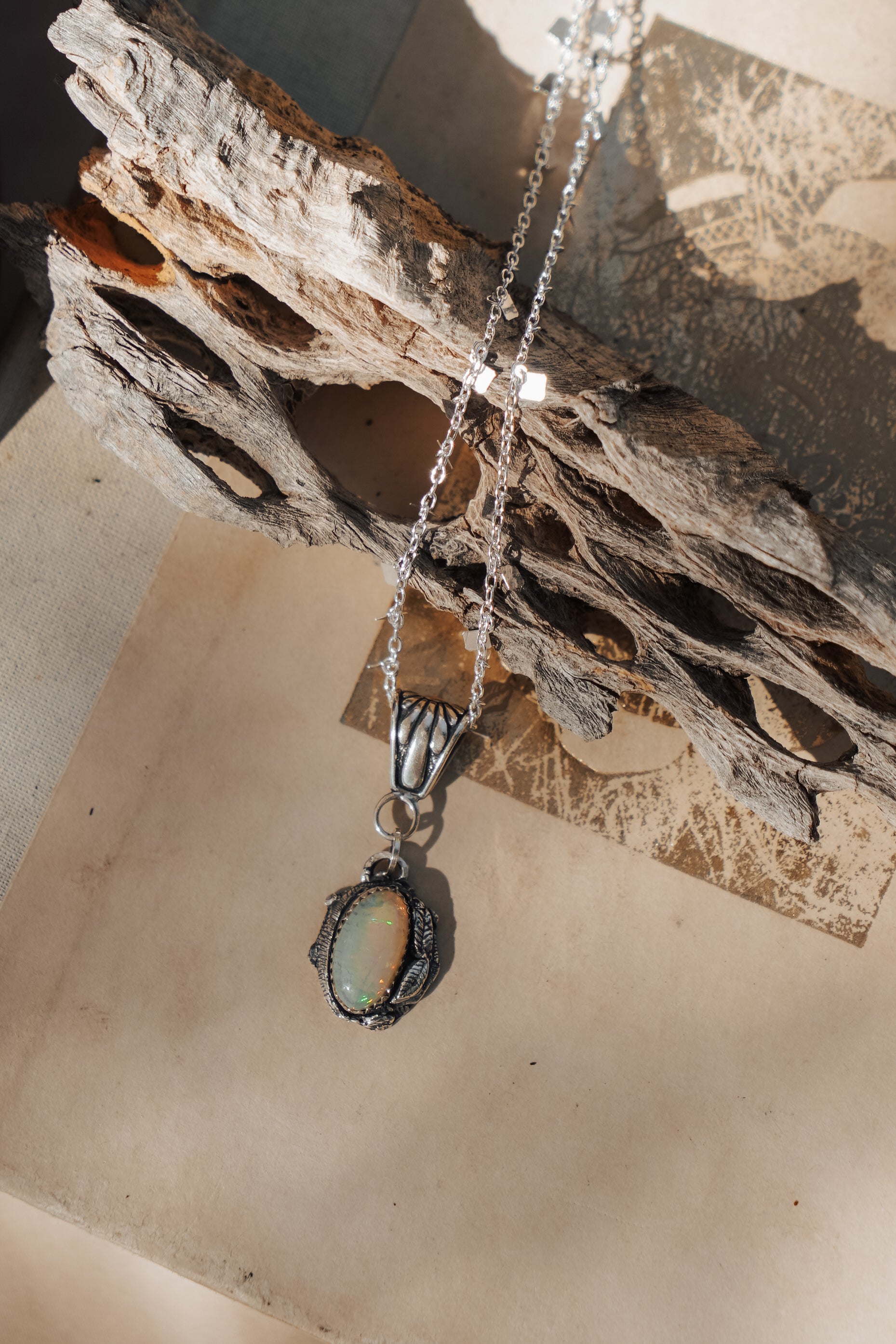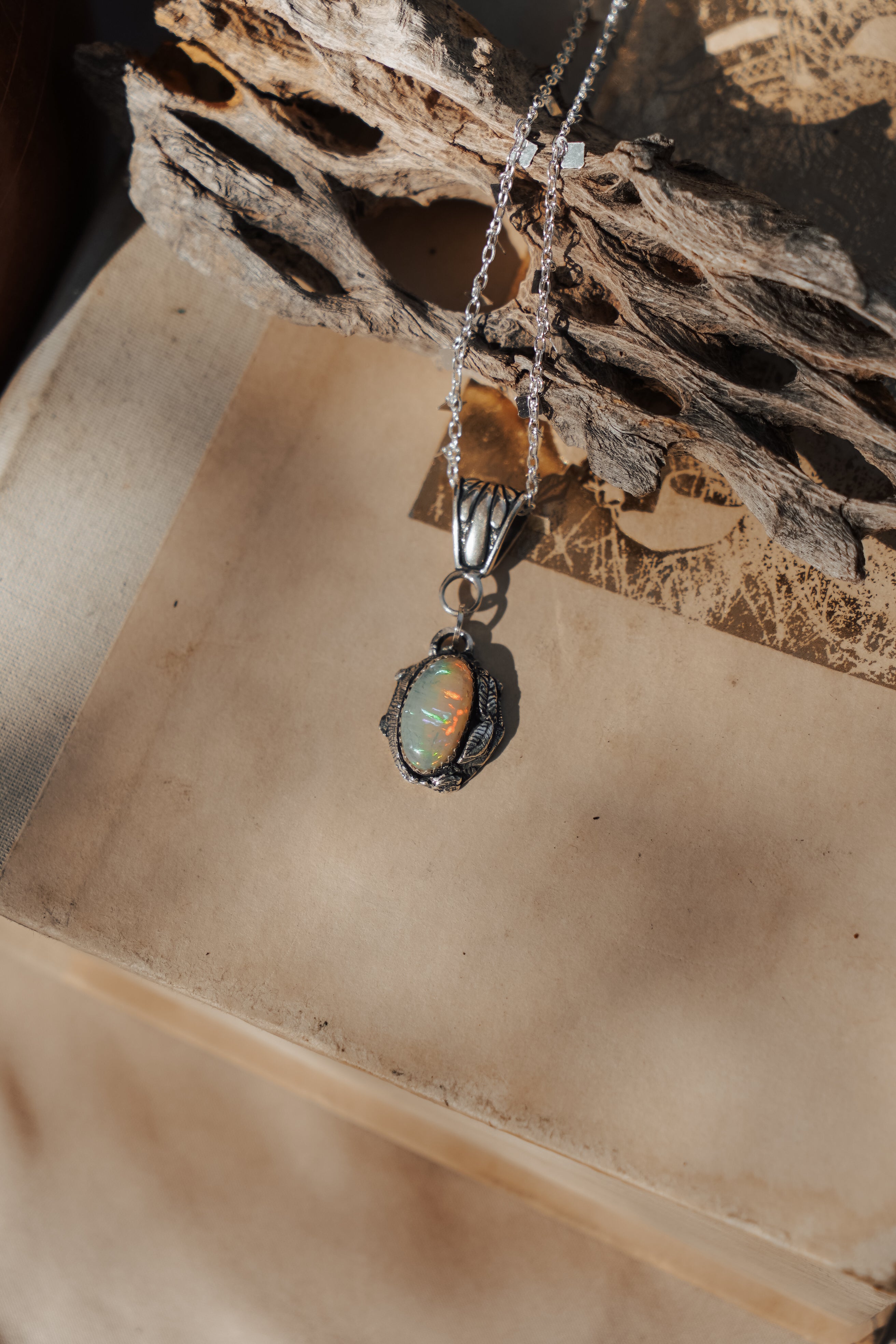 Check out the video to see the way this beauty shimmers in the light! We've had so much fun creating with a new process using .999 fine silver metal clay that we fire in our small kiln. We sculpted and carved this piece by hand from metal clay, fired it up, and this gorgeous pendant was the result. This highly sought-after Ethiopian Opal, decorative bail, and disco ball chain all make magic in natural light.