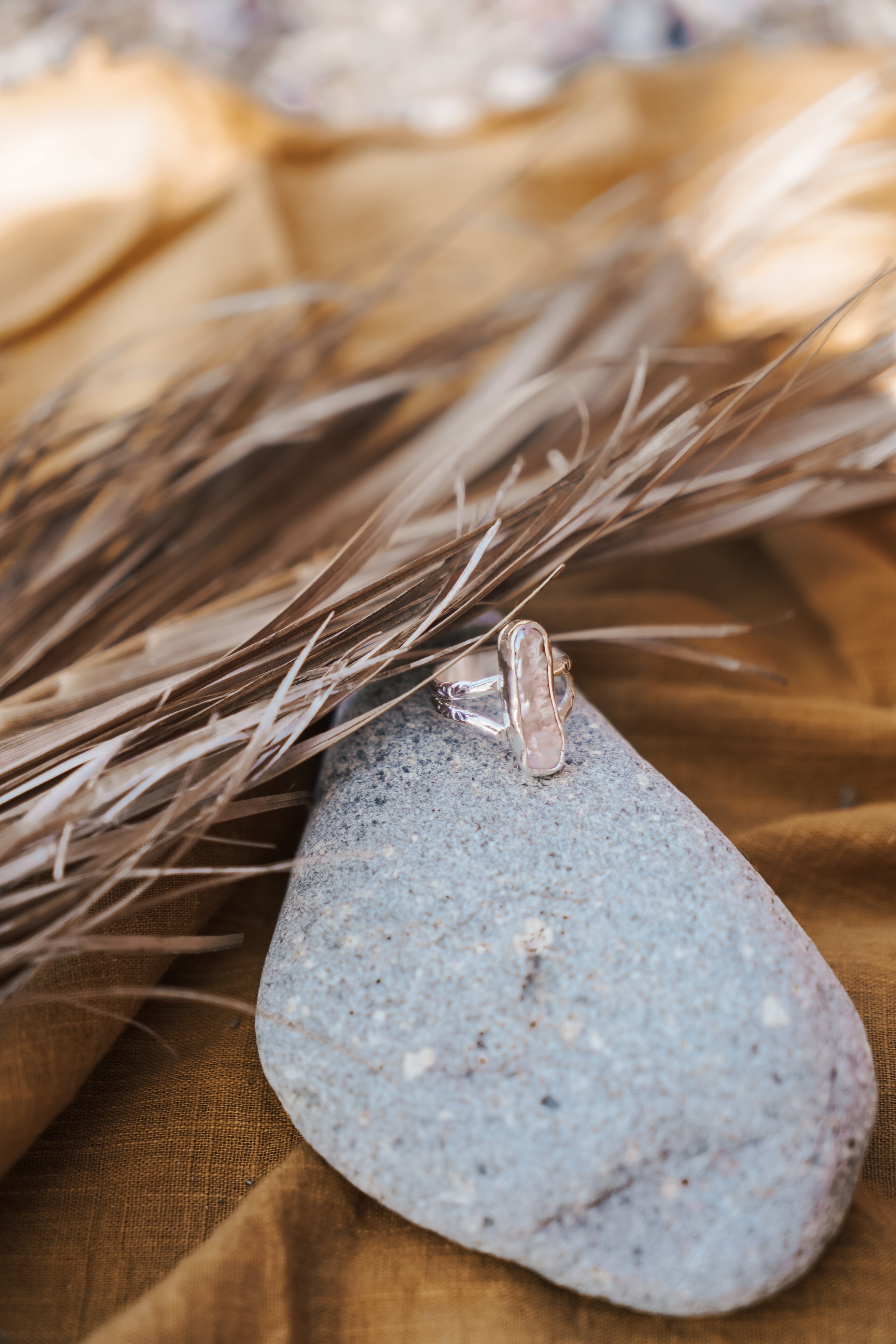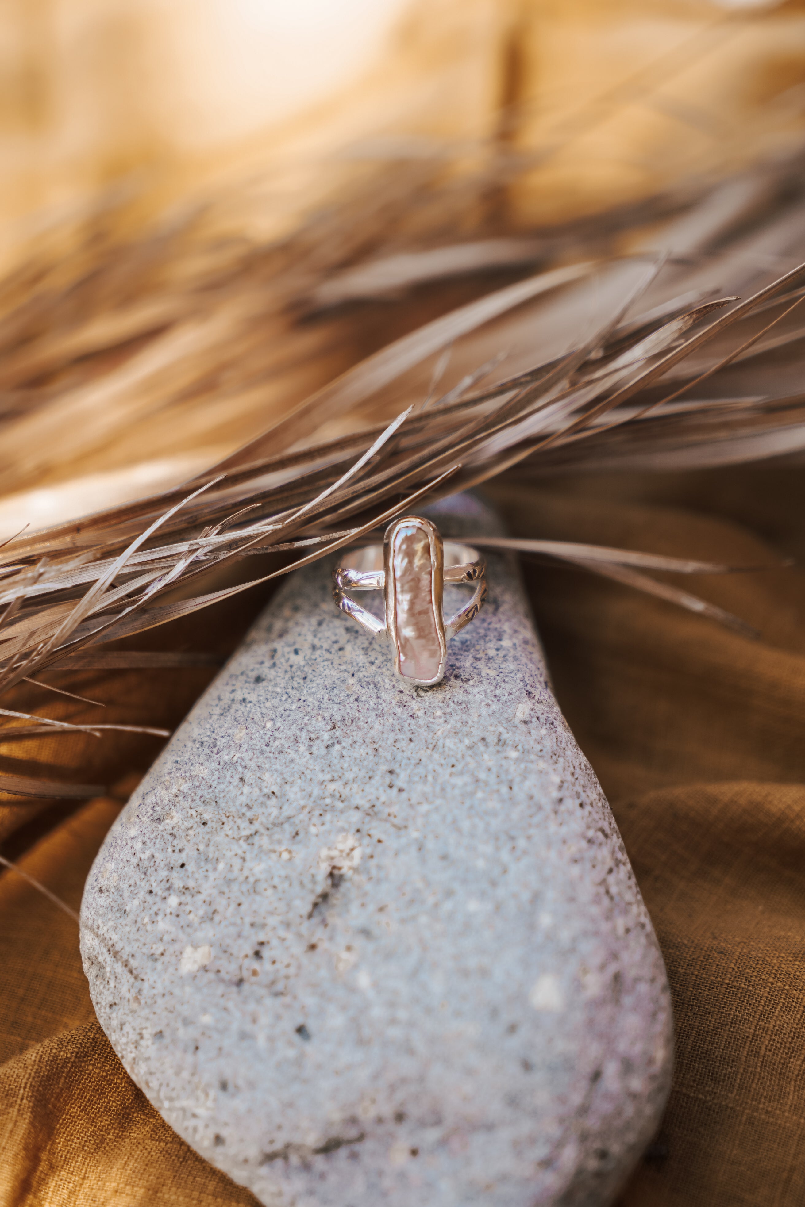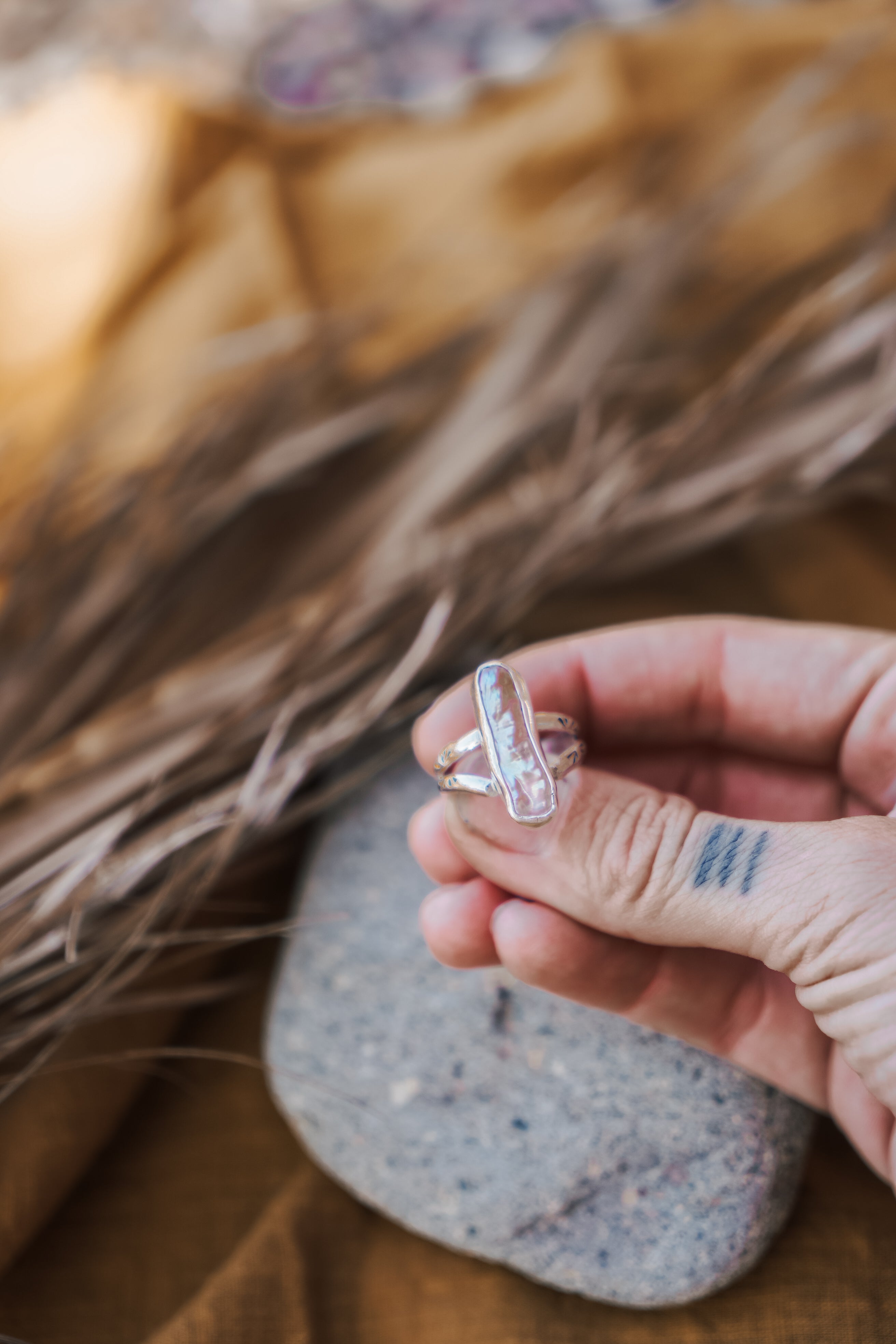These funky pearls have become our new obsession over here in the Golden Road Crafted shop. These rings are visually one of our favorite things we've made in a while. We love the free-flowy, natural shapes of these stones and all the colors they throw off in the light.