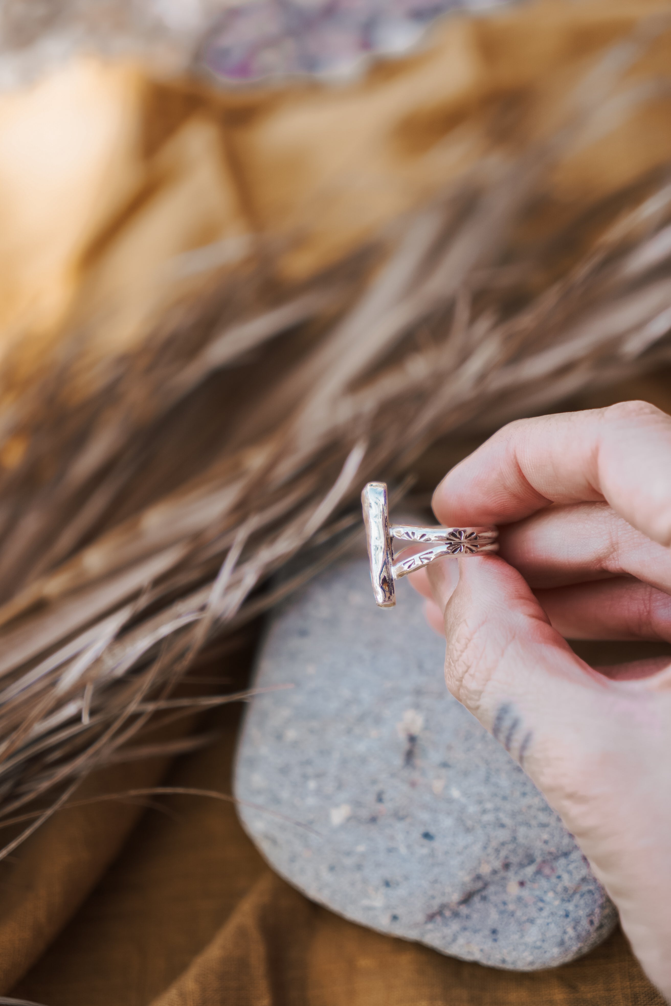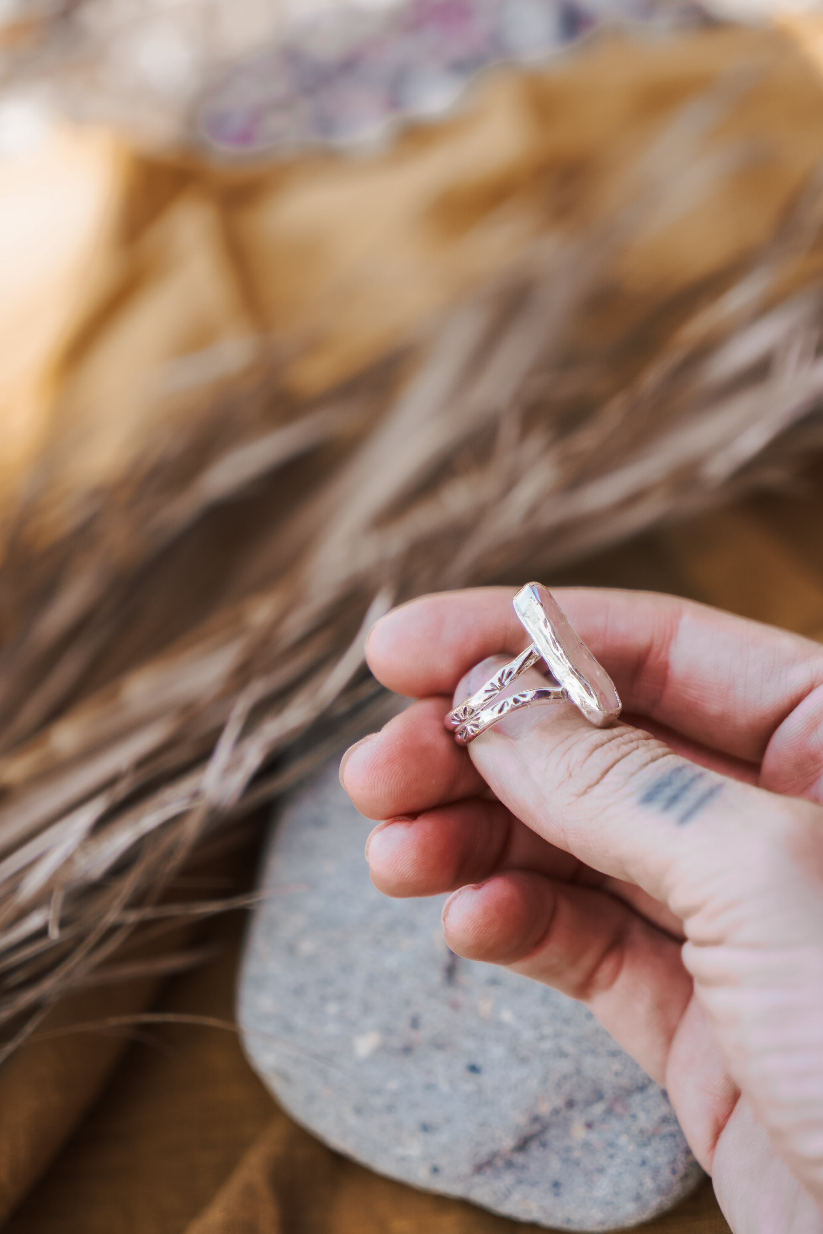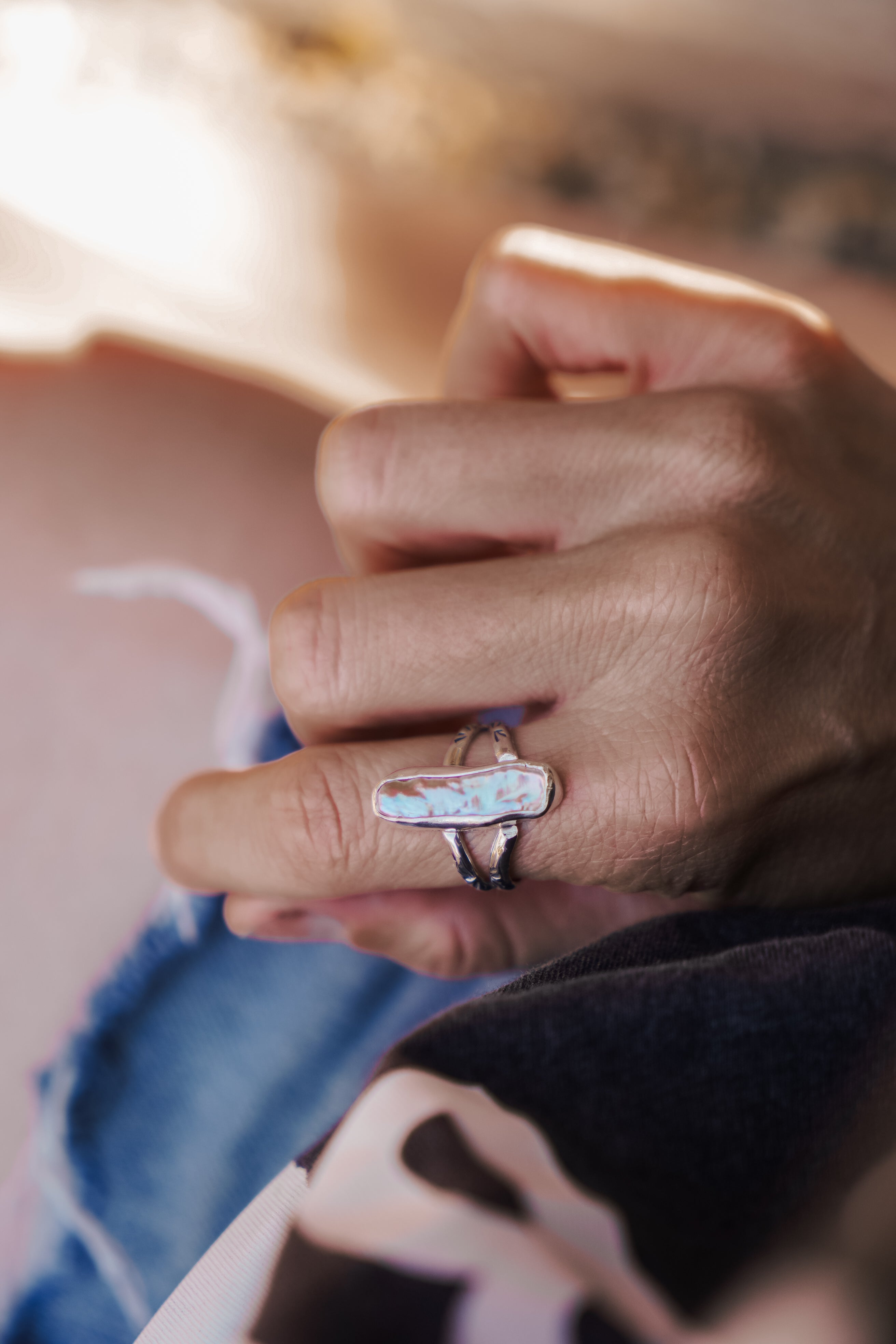 These funky pearls have become our new obsession over here in the Golden Road Crafted shop. These rings are visually one of our favorite things we've made in a while. We love the free-flowy, natural shapes of these stones and all the colors they throw off in the light.