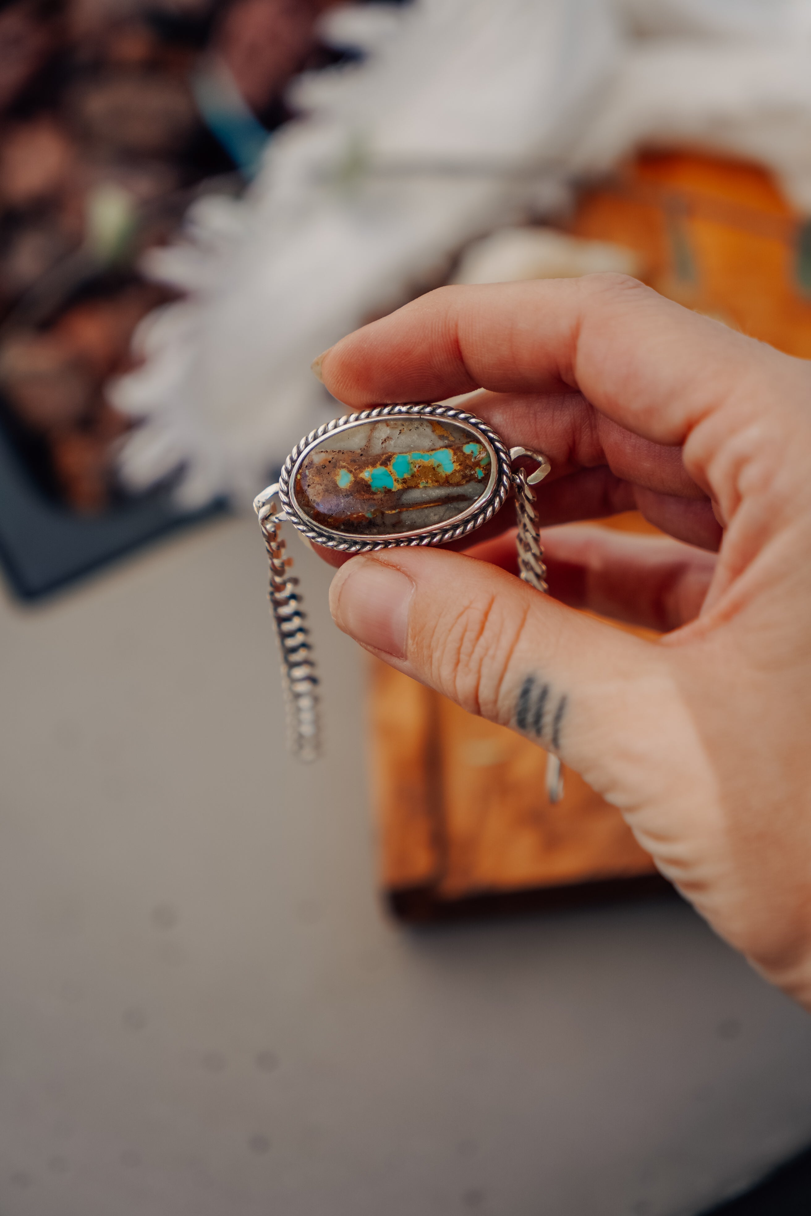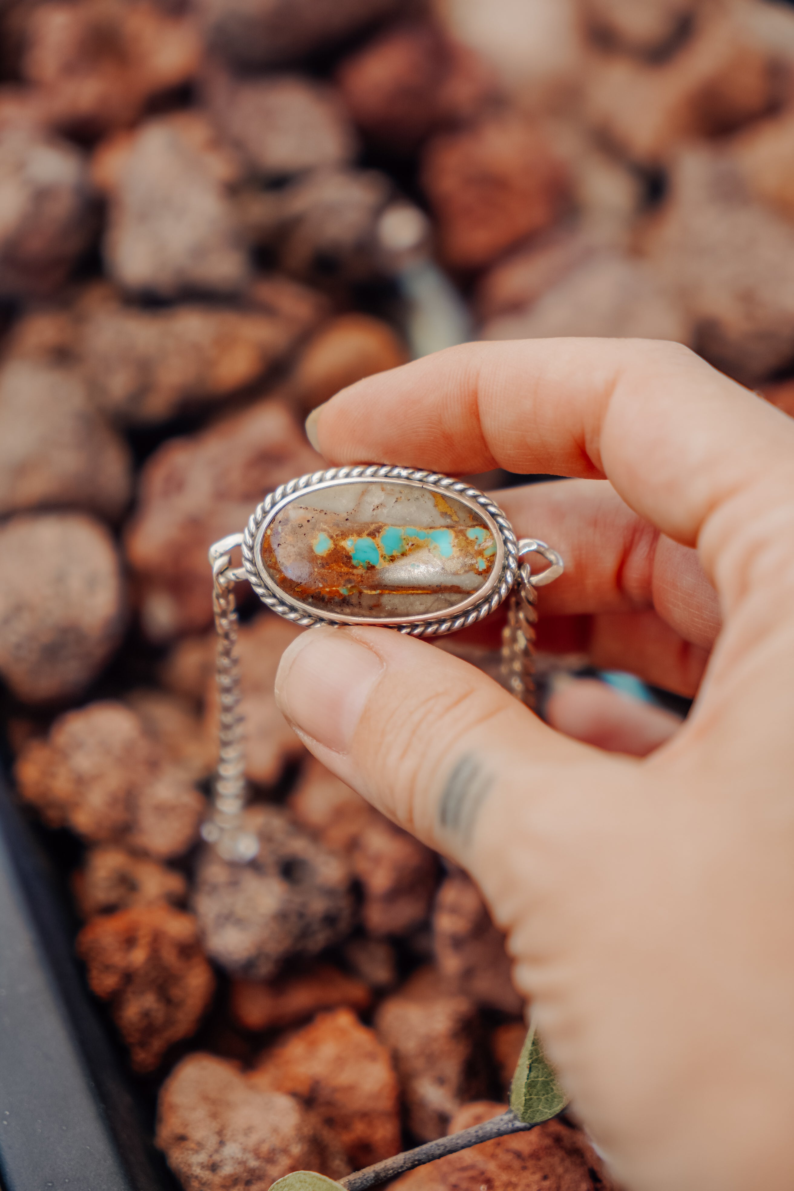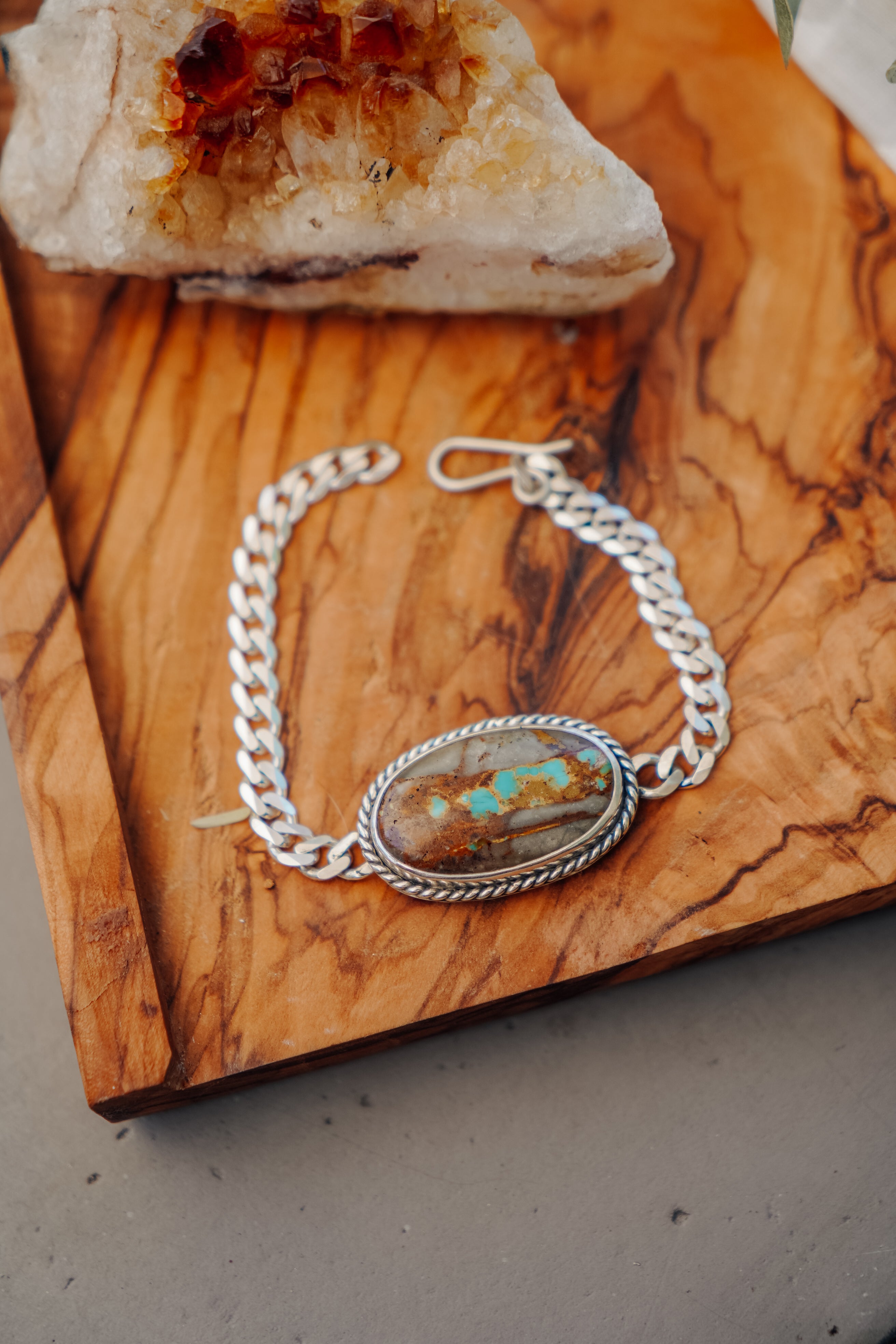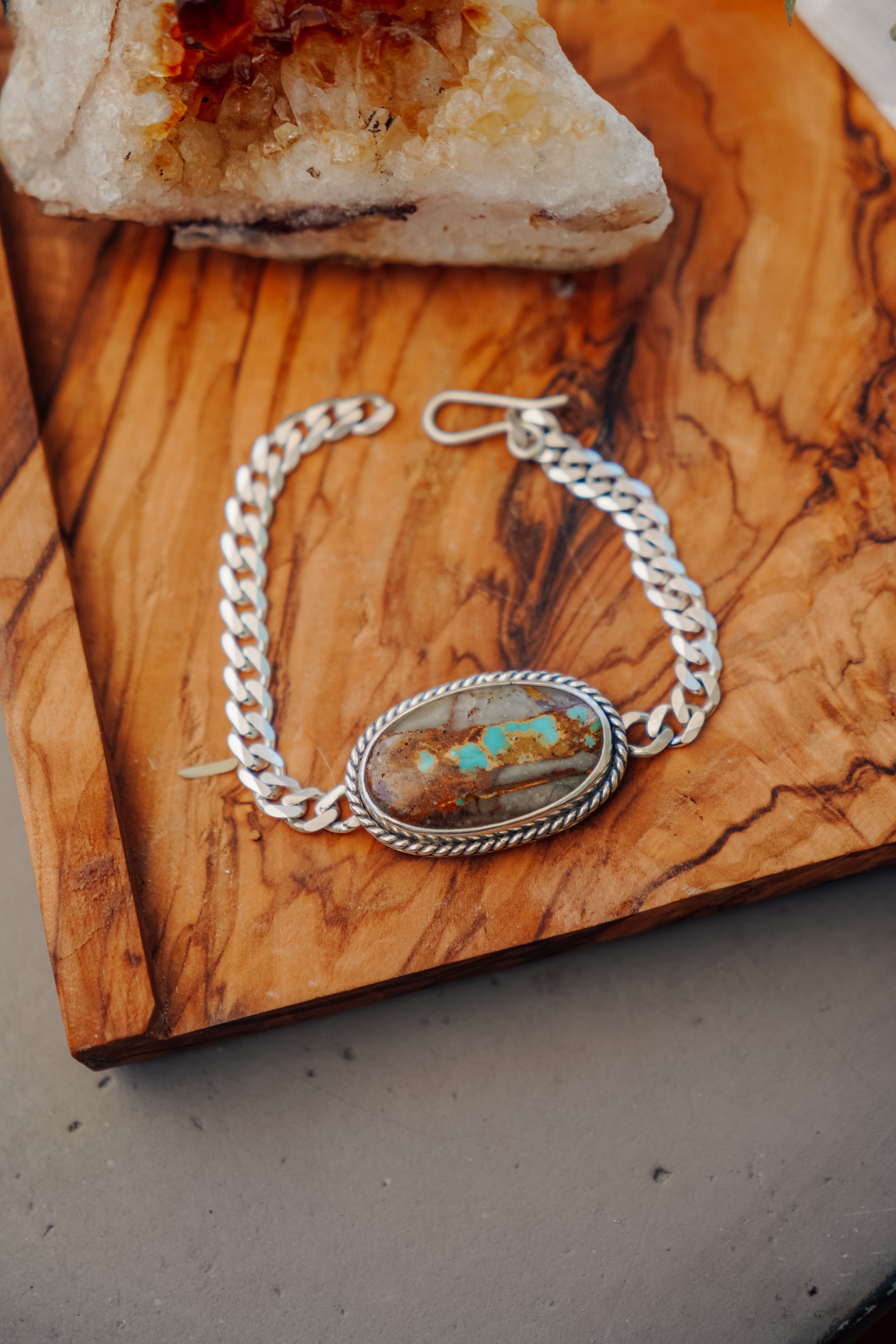This Royston Ribbon stones is such a beauty and works perfectly with this thick curb chain bracelet. We can't wait to see who snags this lovely!
