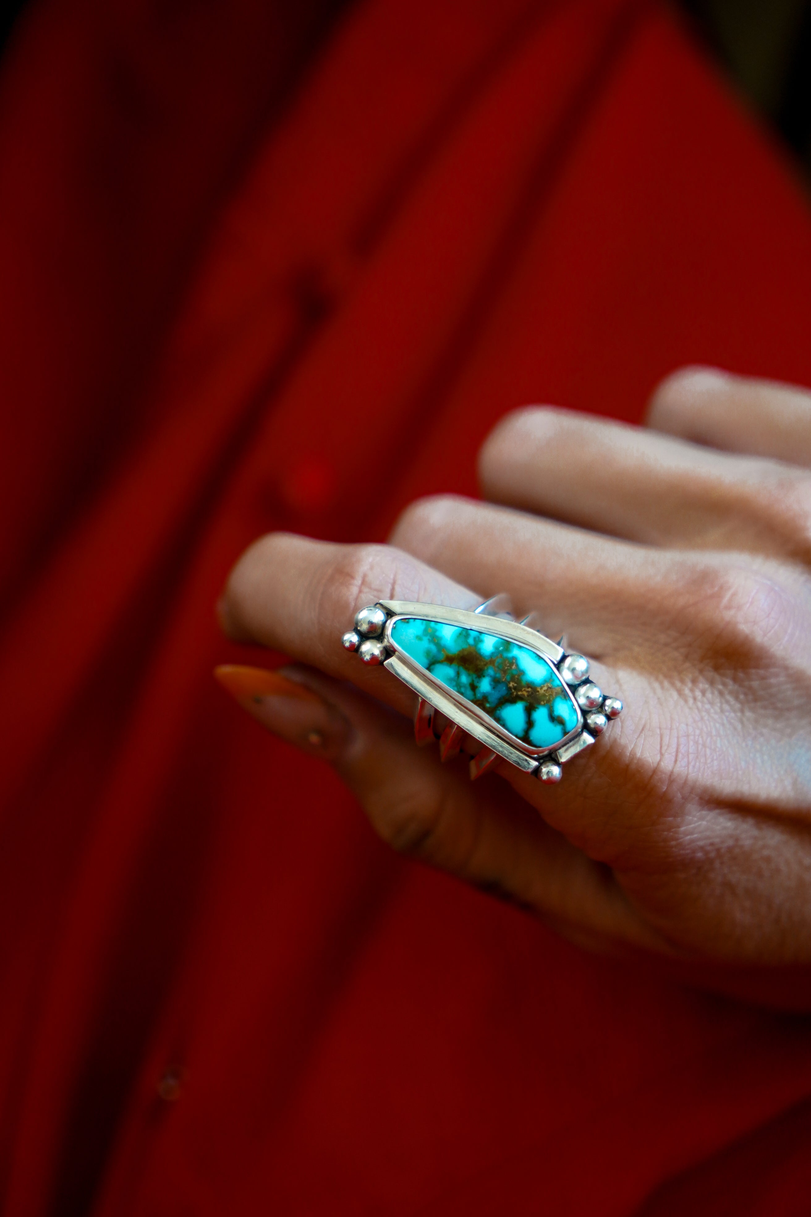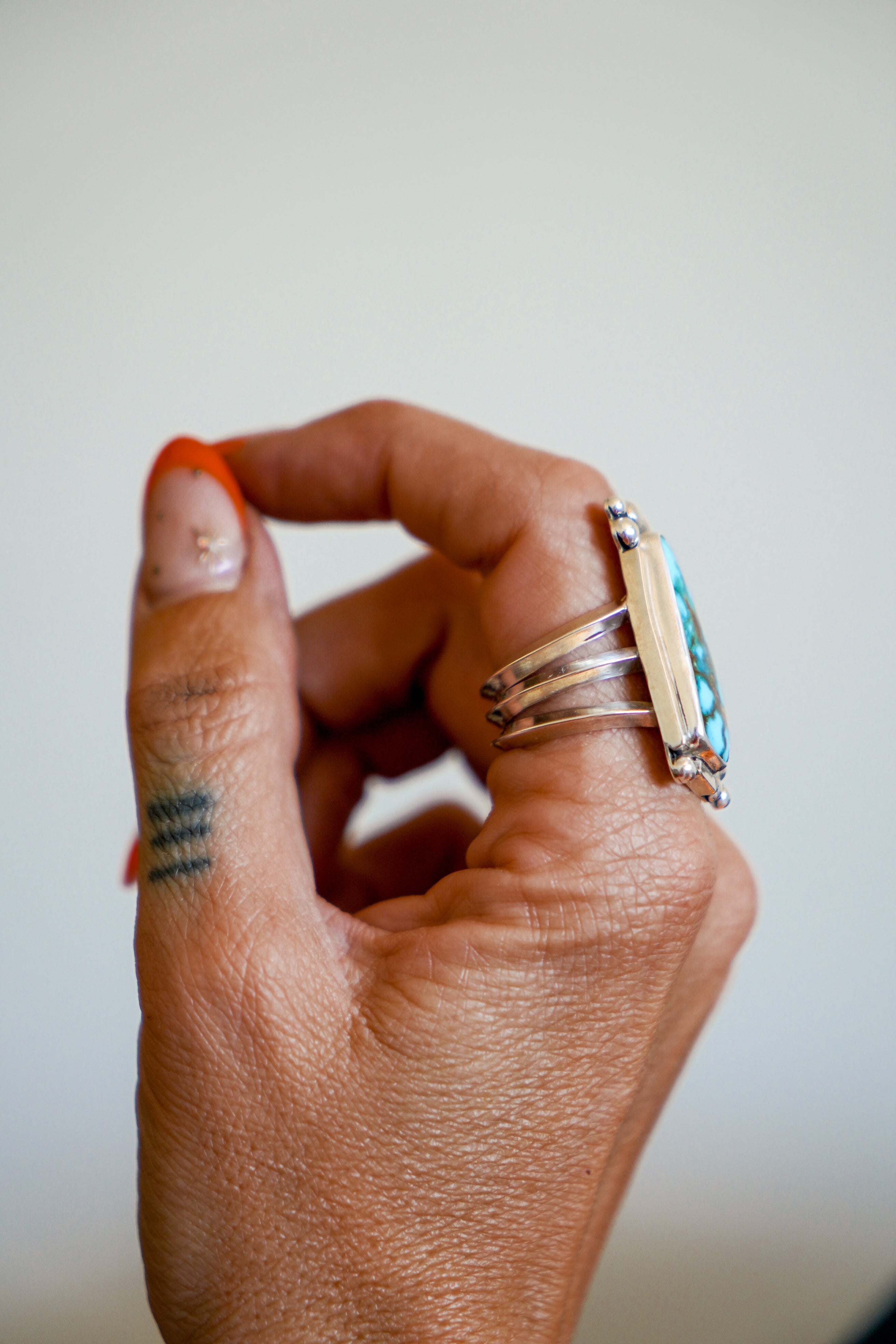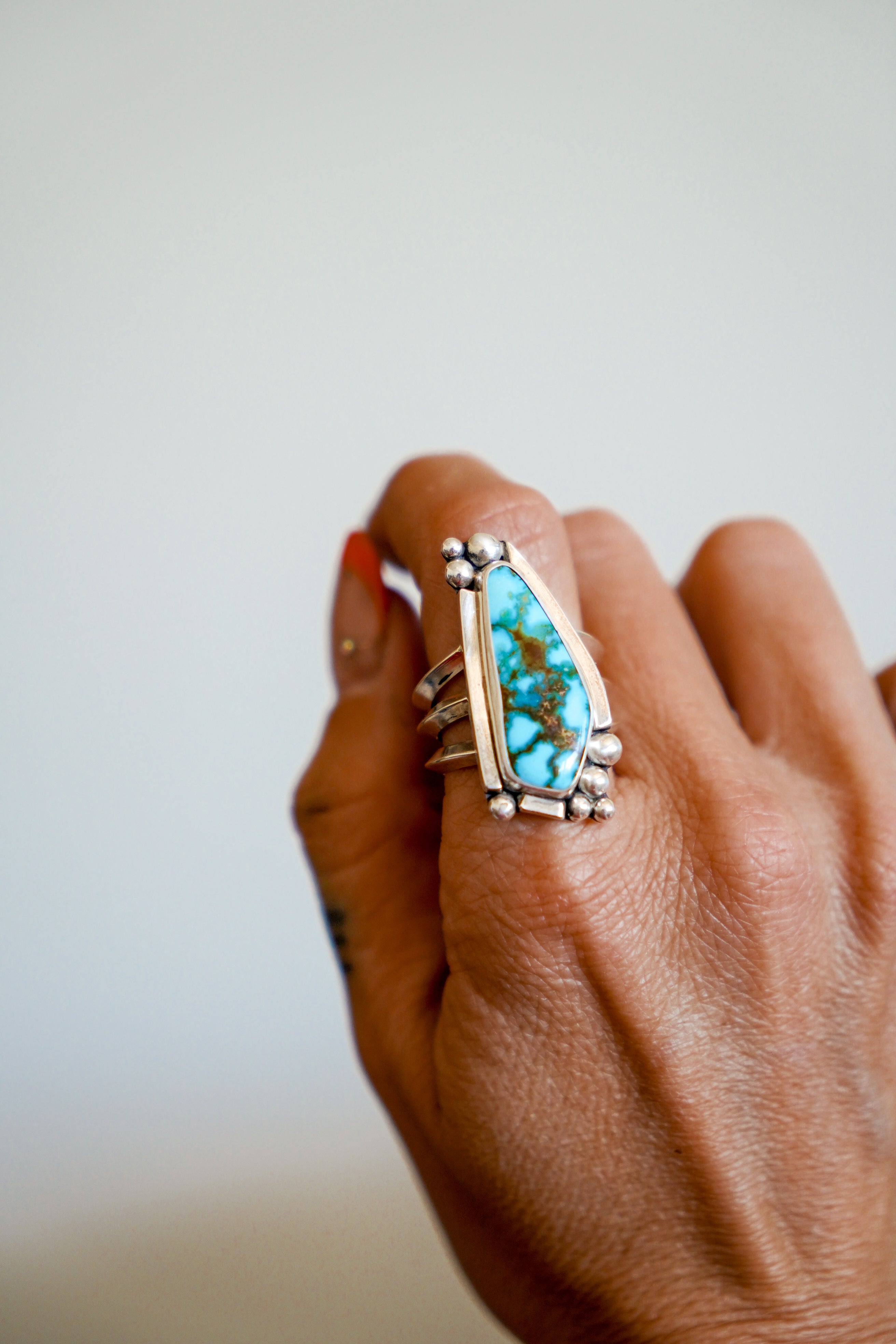 Statement Ring in Kingman Turquoise (Size 9.5)