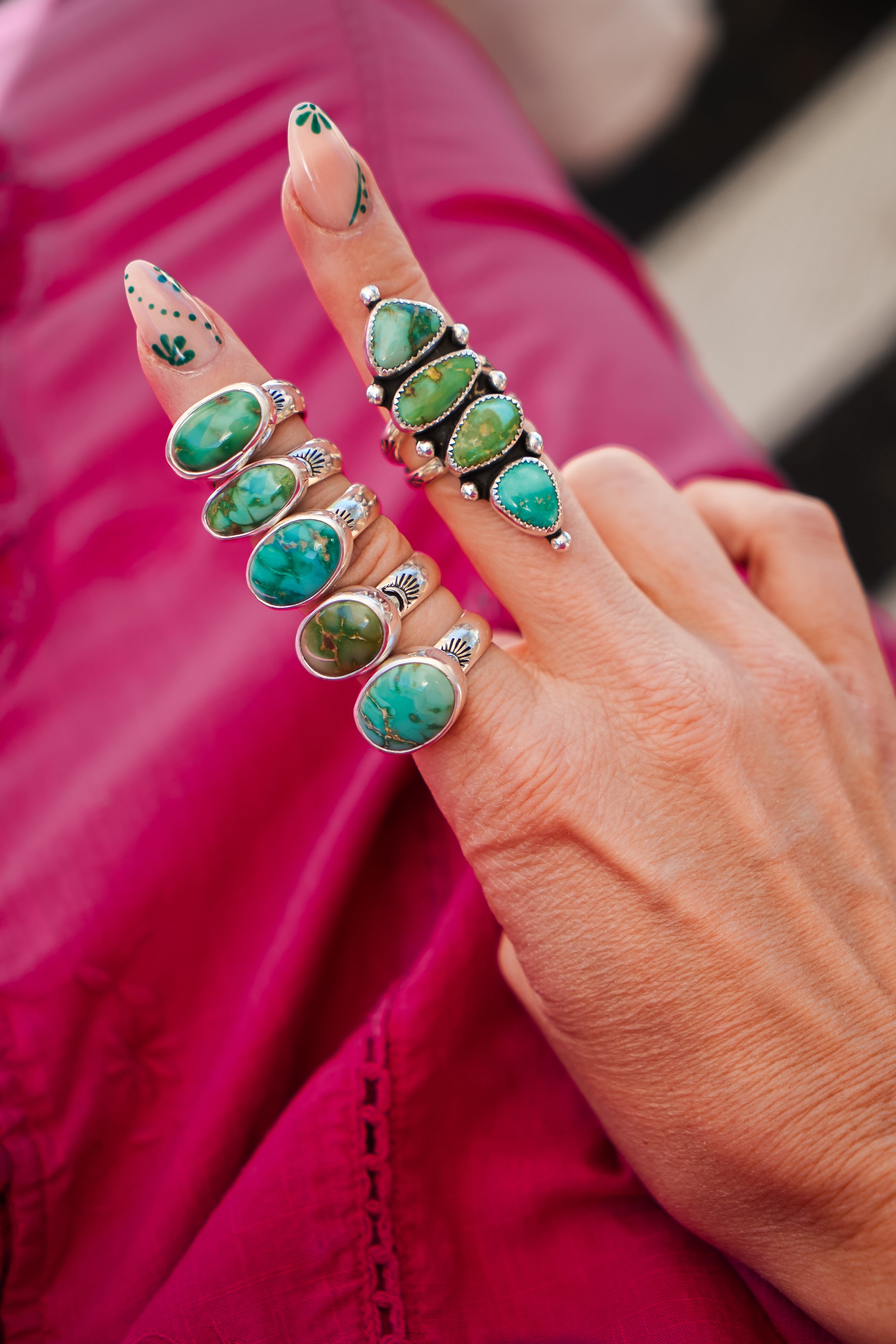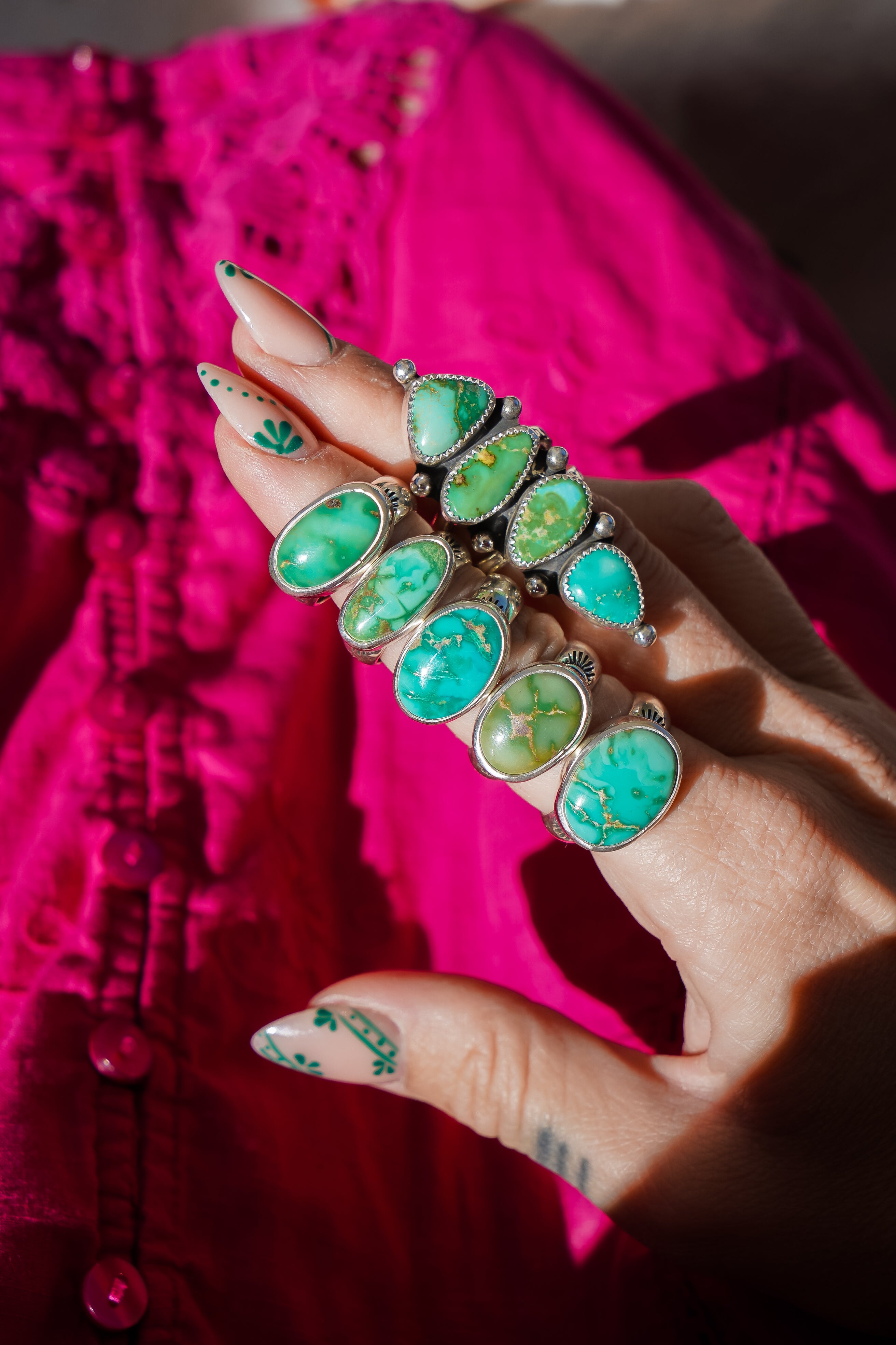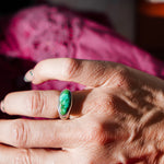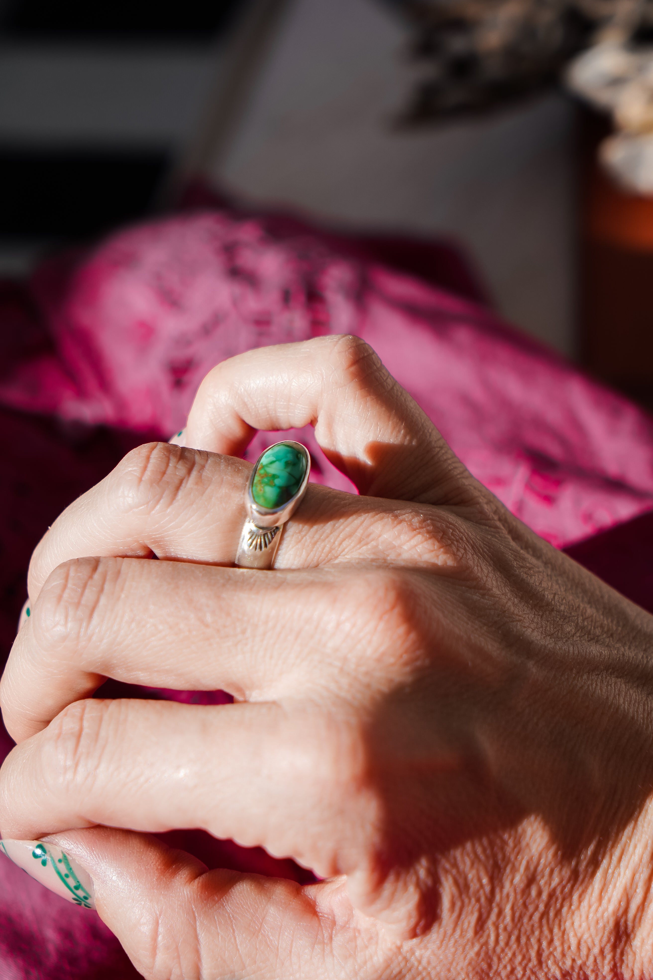 We like to let a stone this vibrant do all the talking! We paired it with a high-polished plain bezel and hand-stamped band. This makes a great ring for everyday wear. It carries a lot of POP!