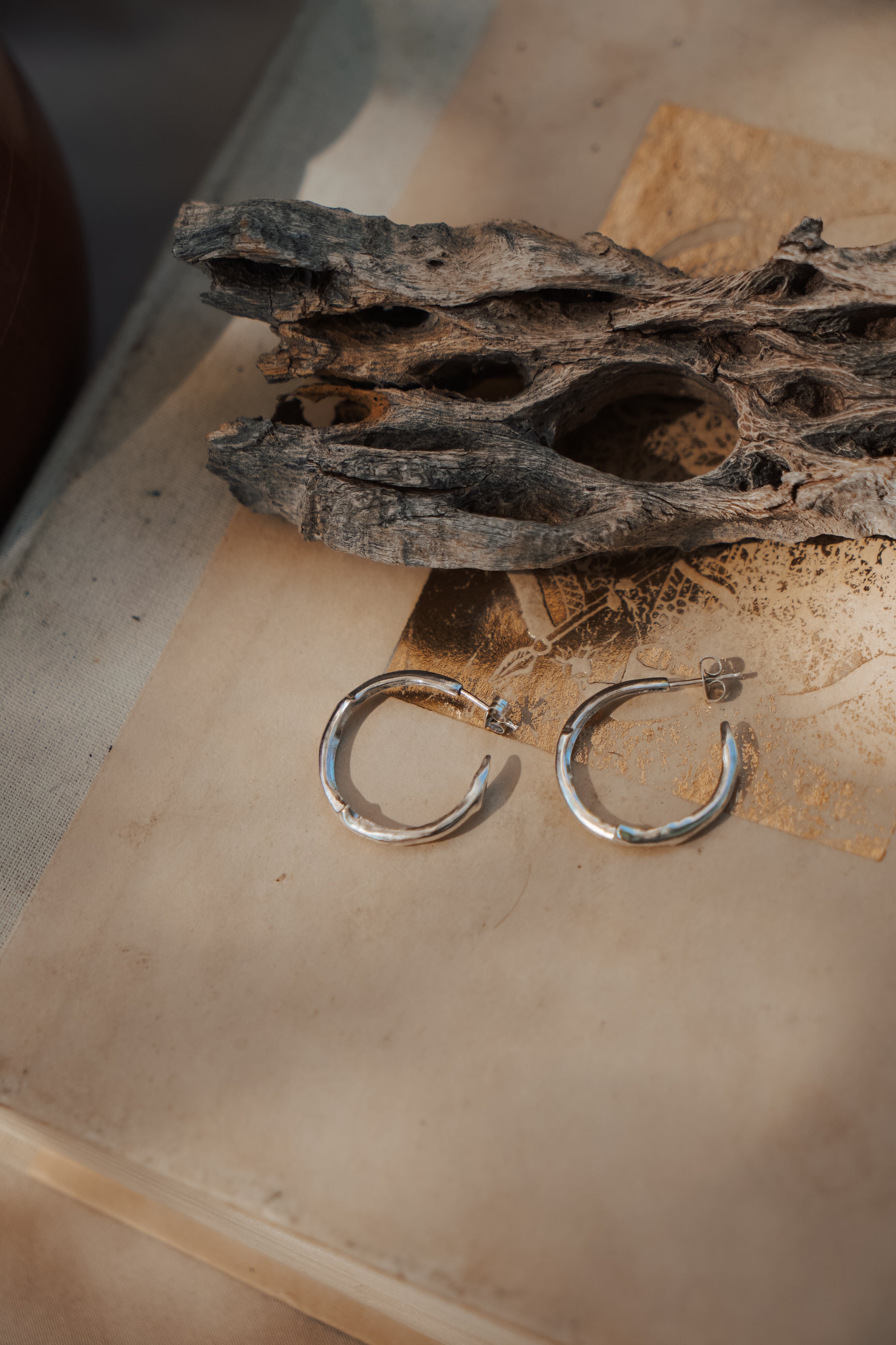 These new hoops have the organic shape and flow of a new sprouting twig. We're so excited to introduce this design into the collection. They're super light and comfortable. A great way to wear a bit of nature on your ear!
